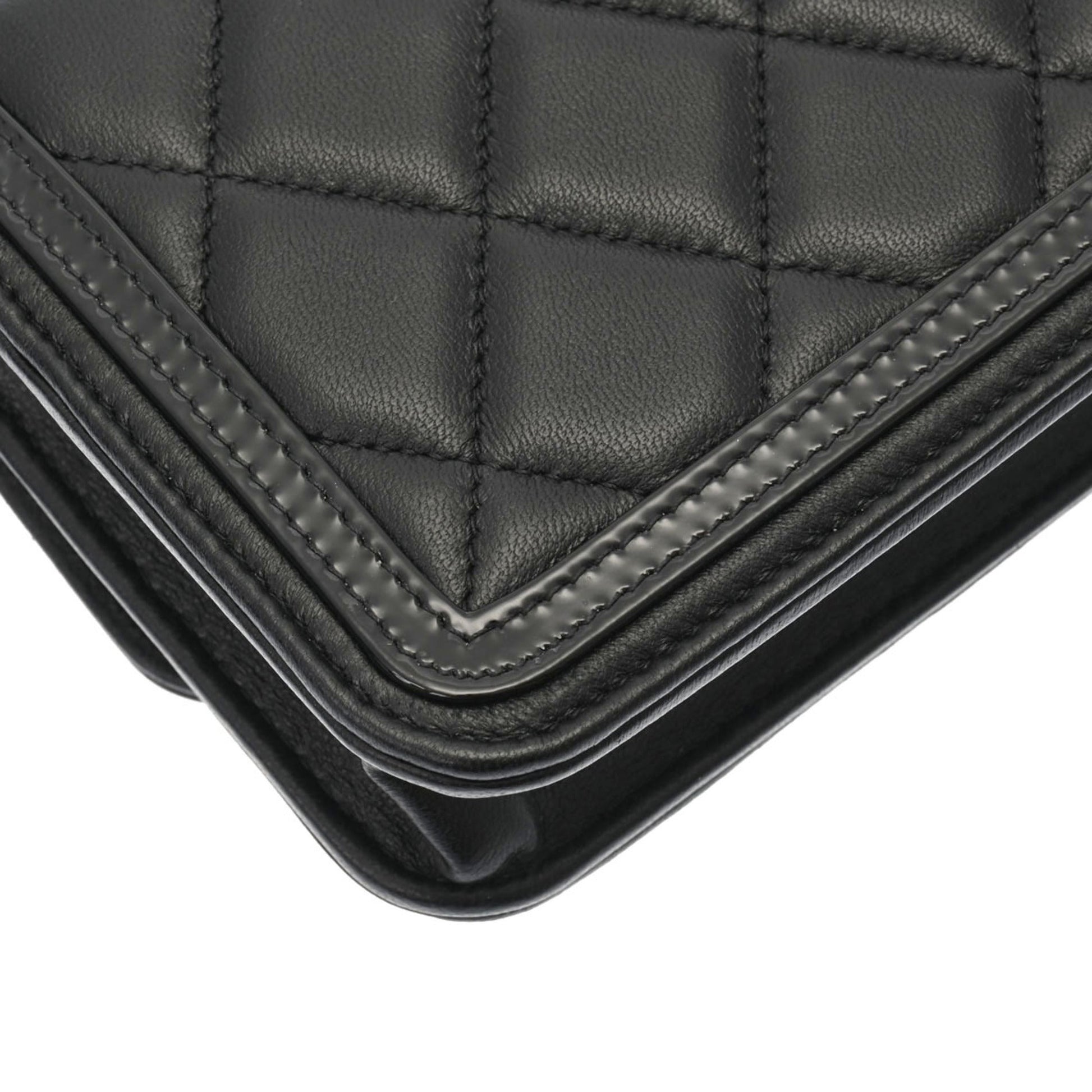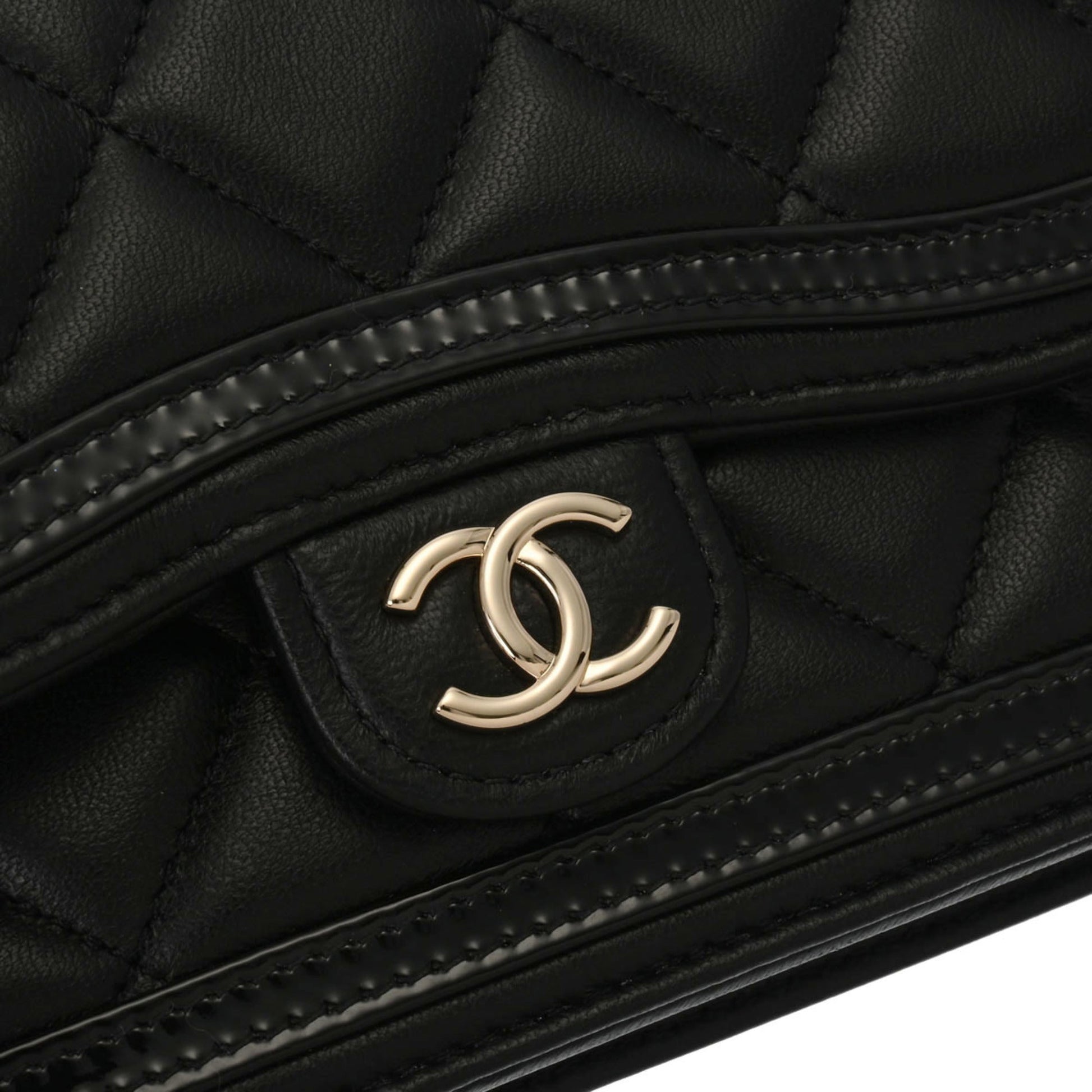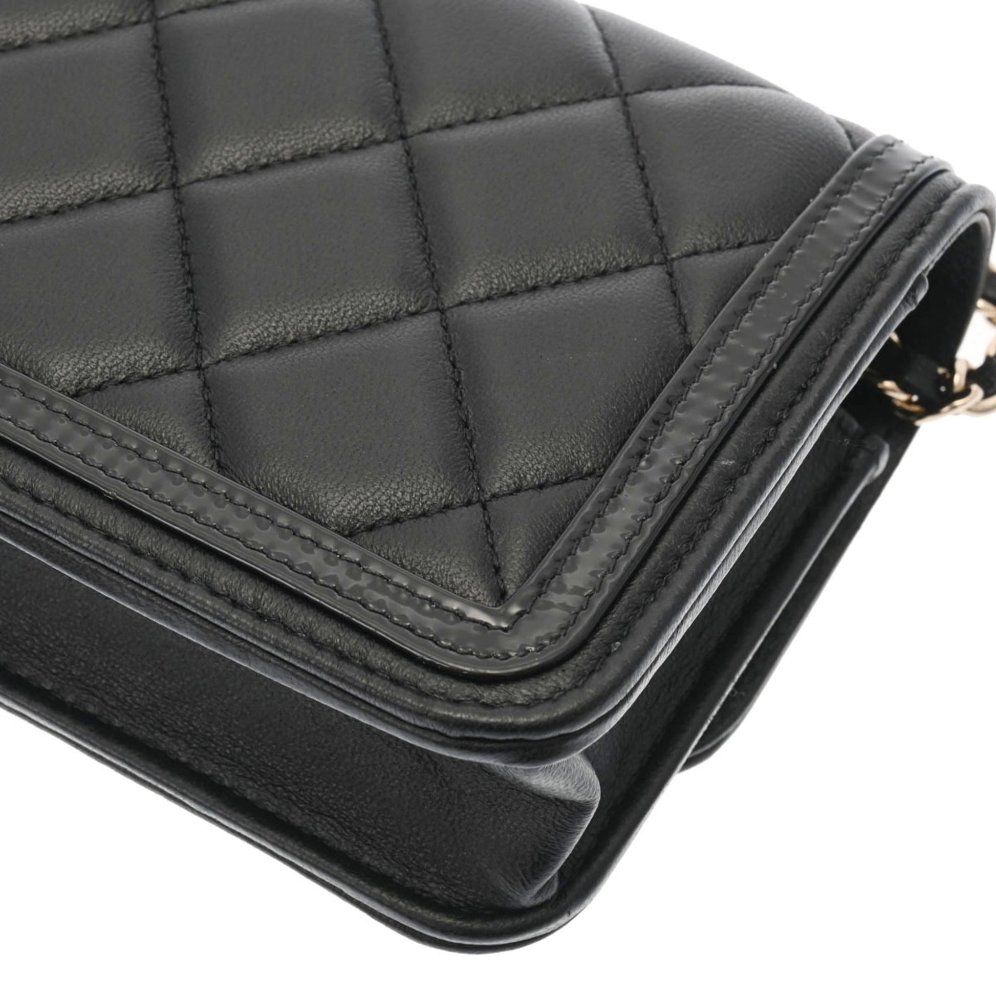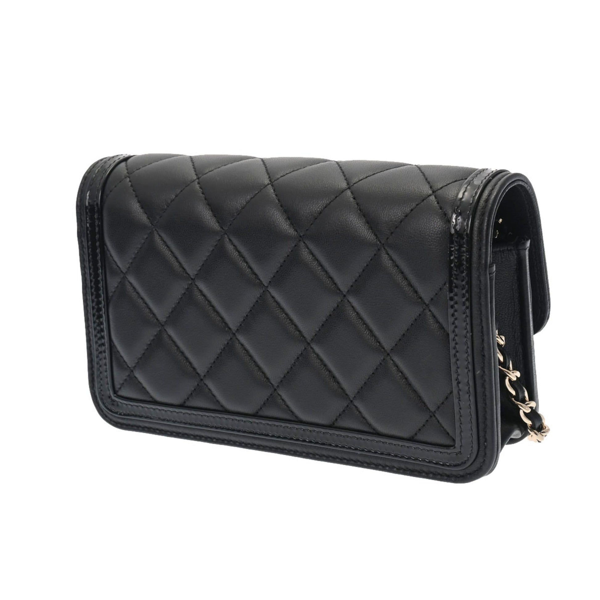 Chanel Matelasse Phone Case Black AP3559 Ladies Lambskin Enamel Shoulder Bag