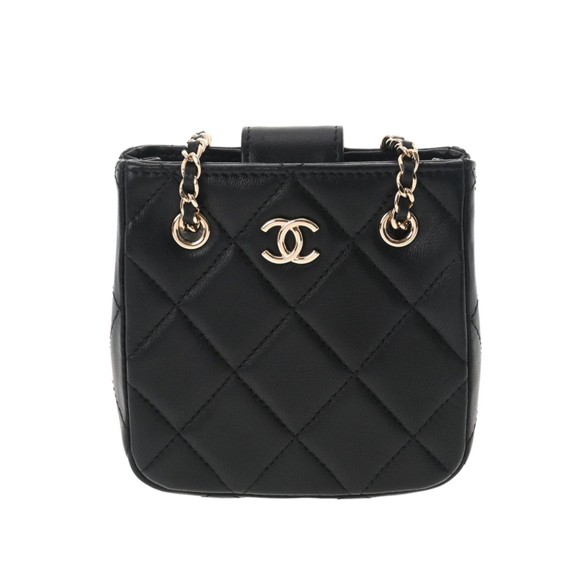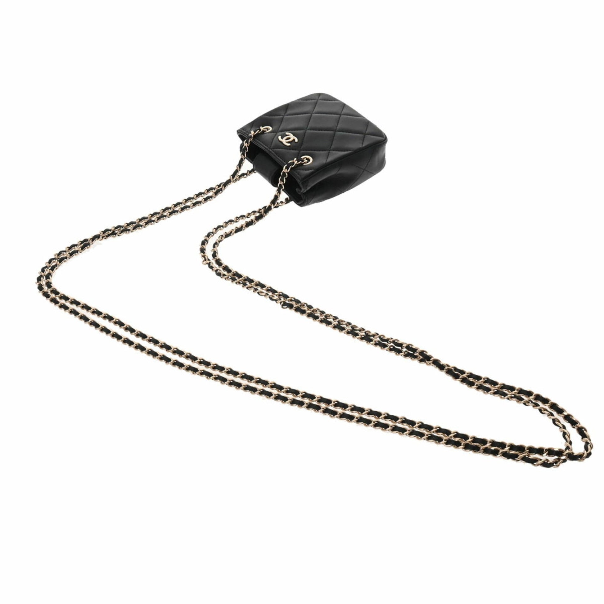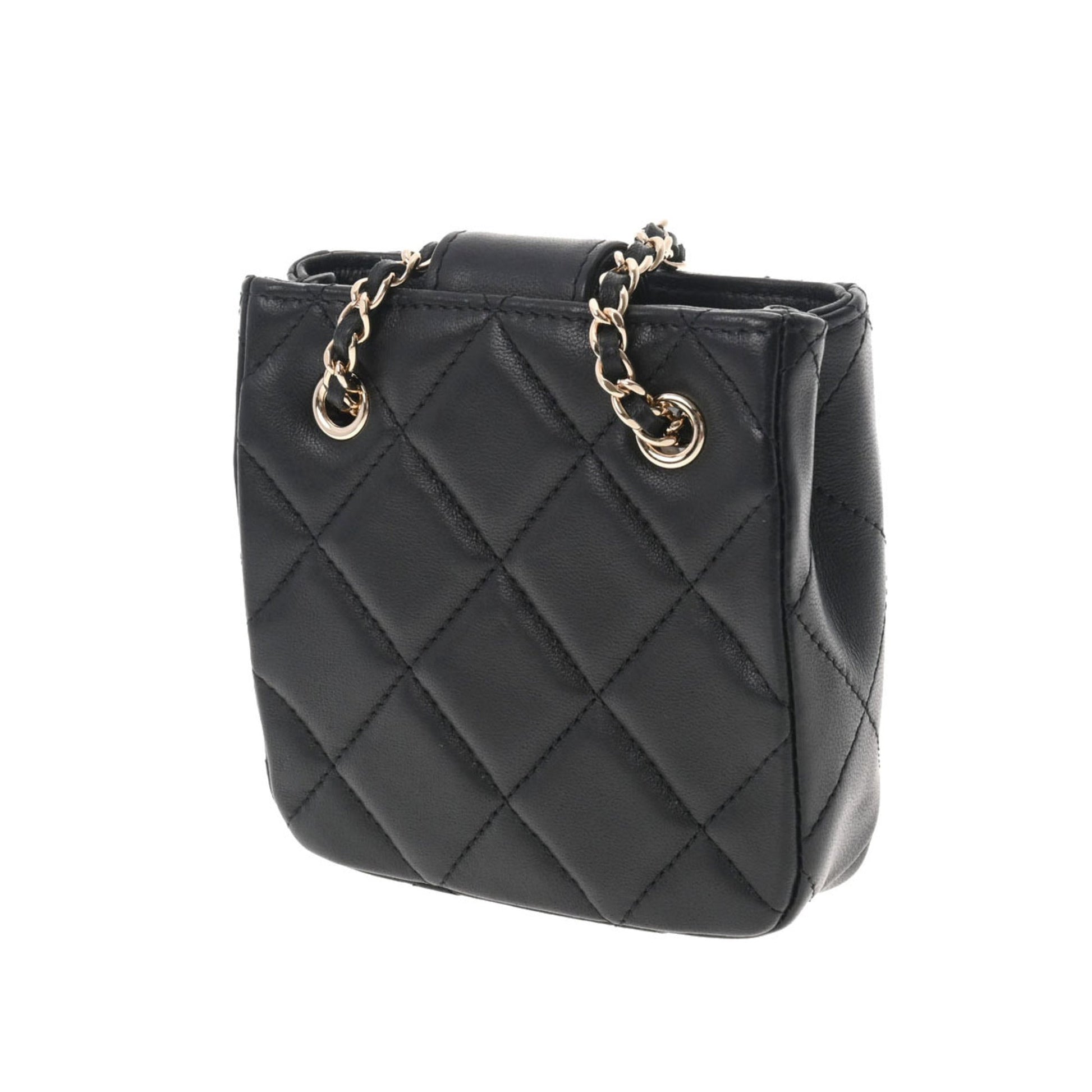 Chanel Matelasse Pochette Chain Shoulder Black Women's Lambskin Bag
