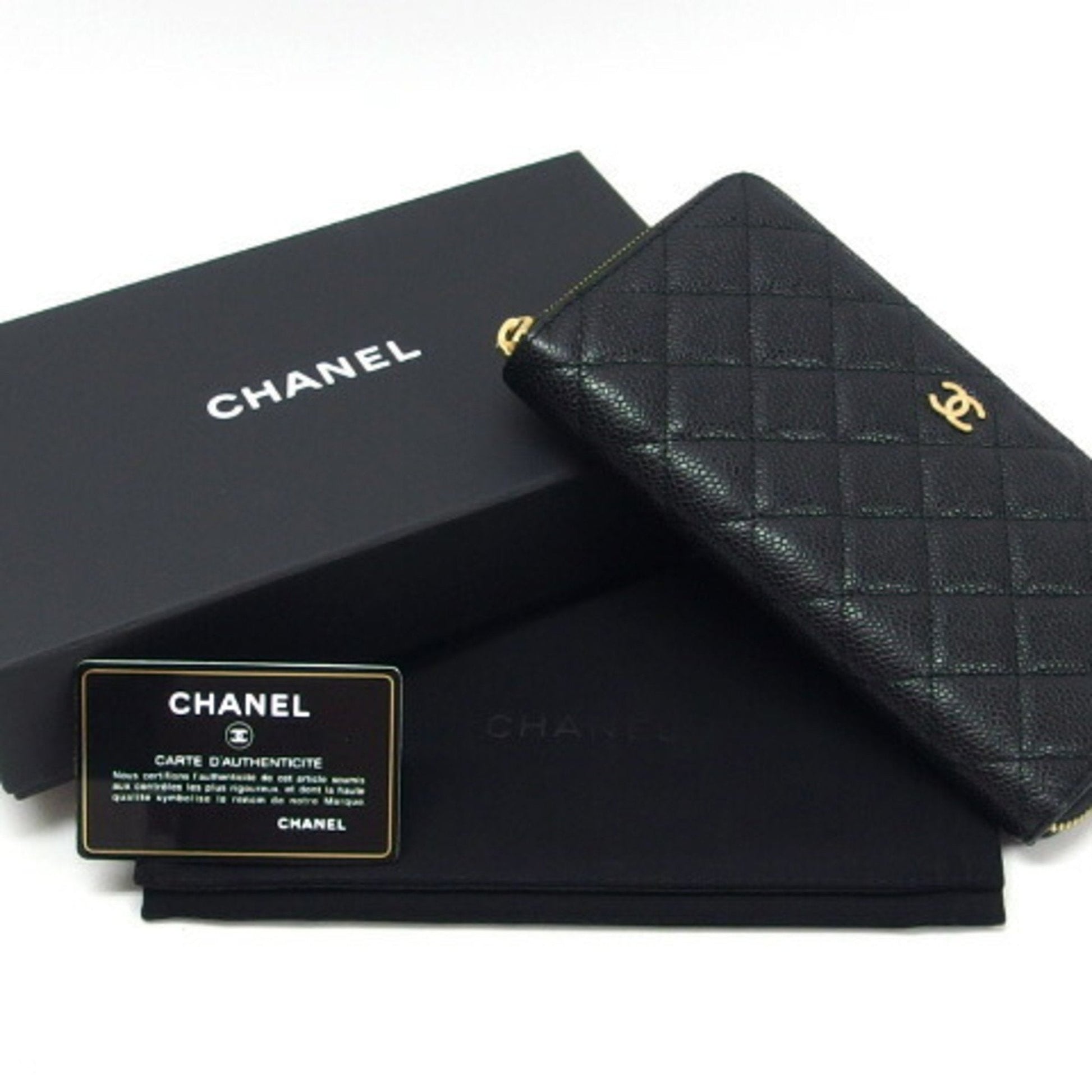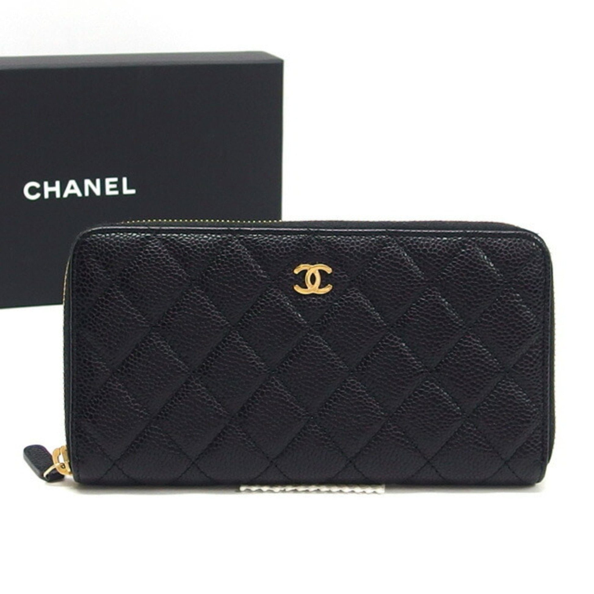 Chanel Matelasse round long wallet caviar skin