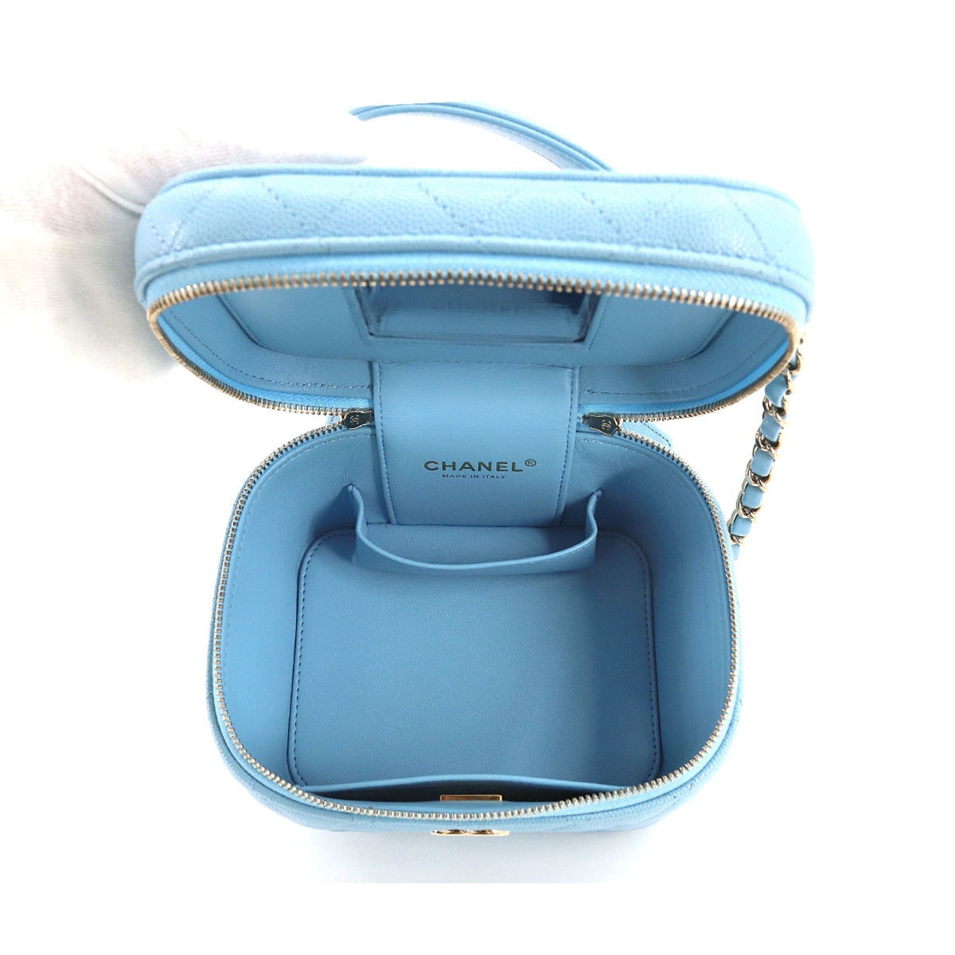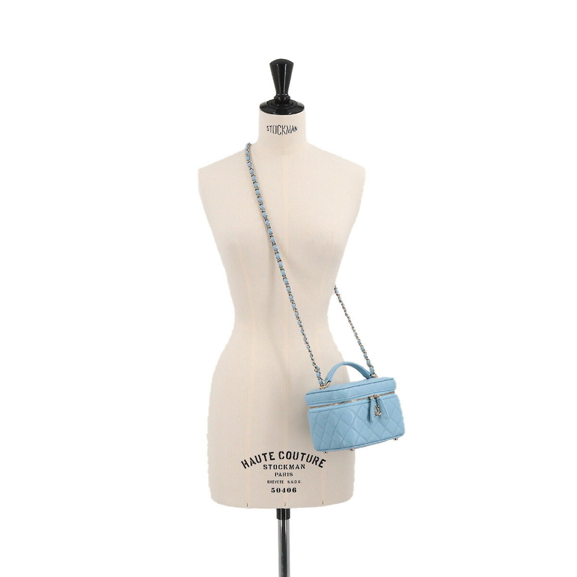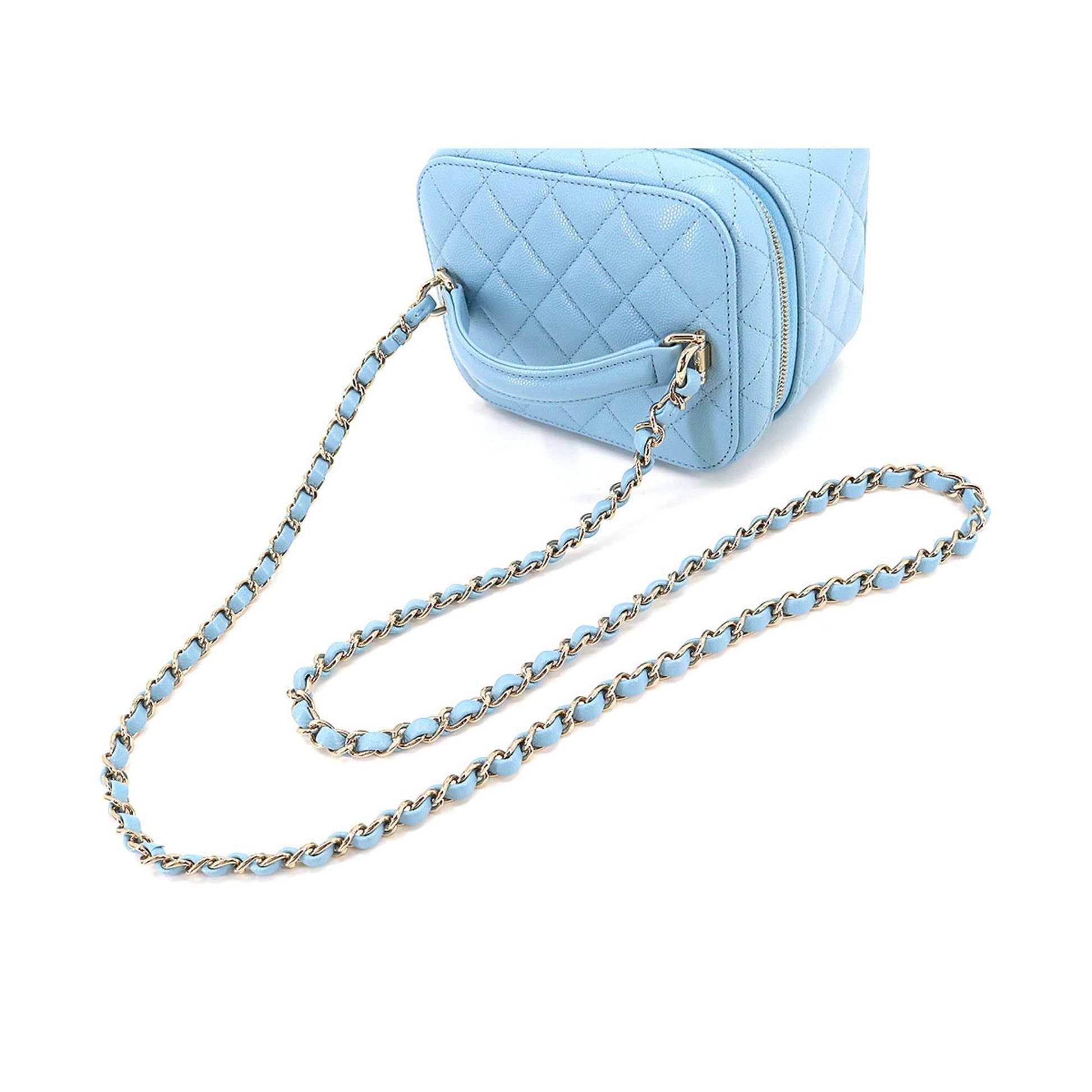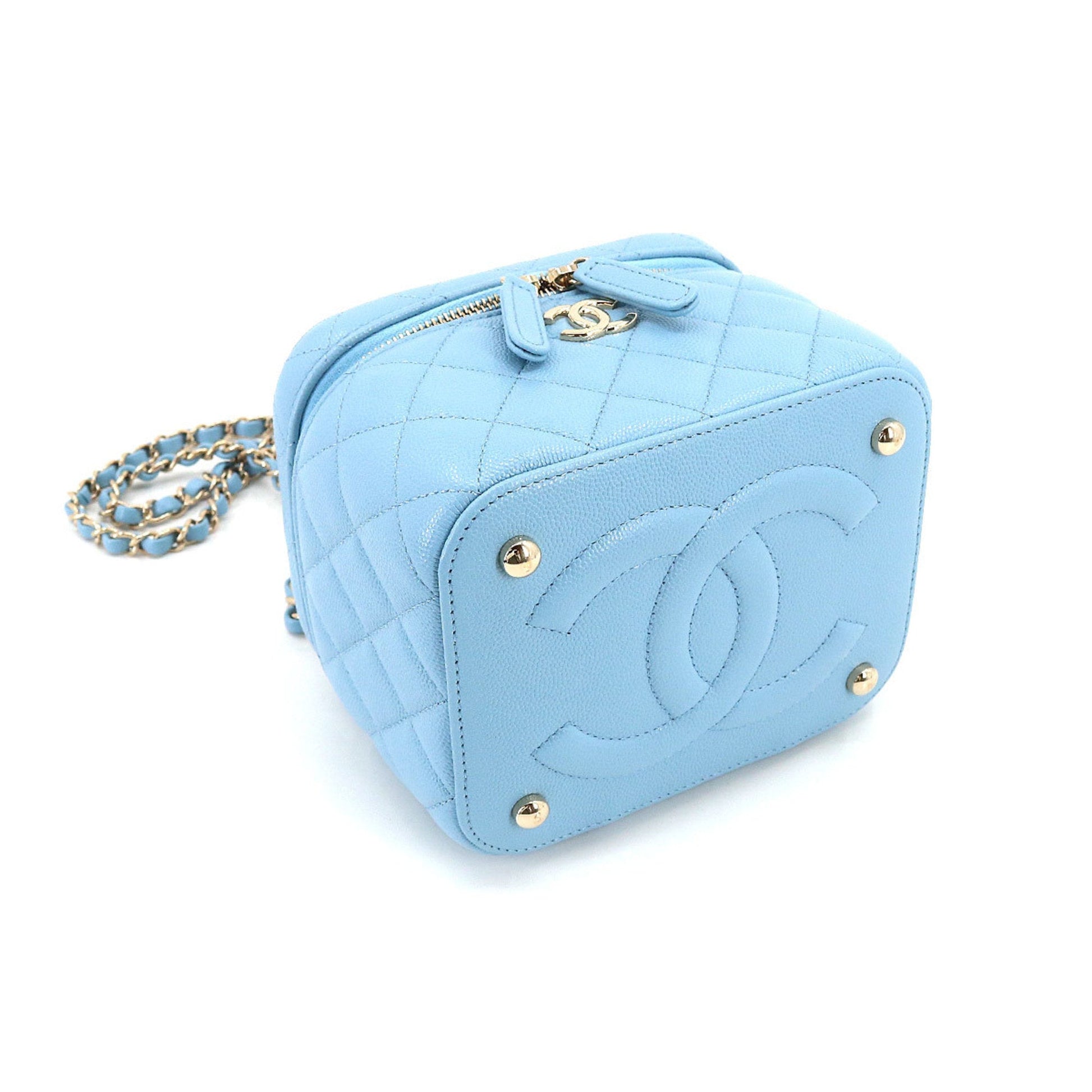 Chanel Matelasse Small Vanity Chain Shoulder Bag Caviar Skin Leather Light Blue AS3171