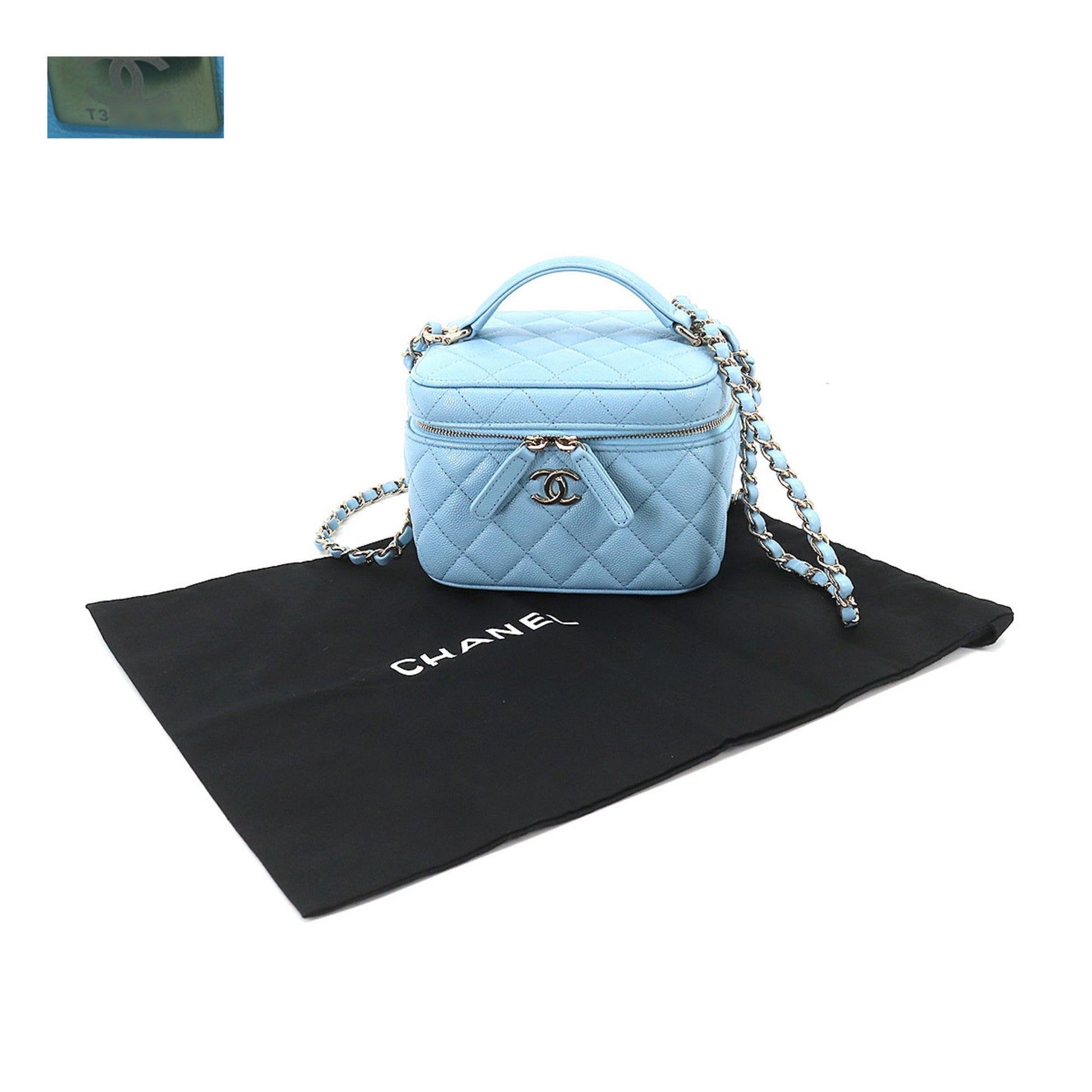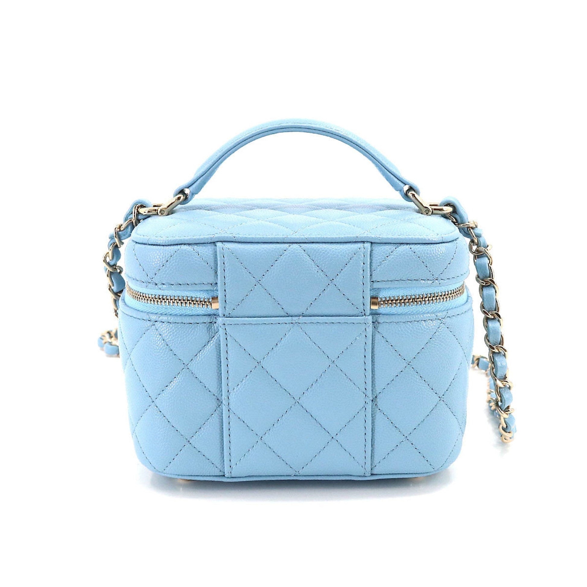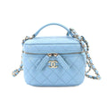 Chanel Matelasse Small Vanity Chain Shoulder Bag Caviar Skin Leather Light Blue AS3171