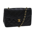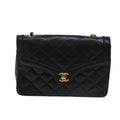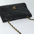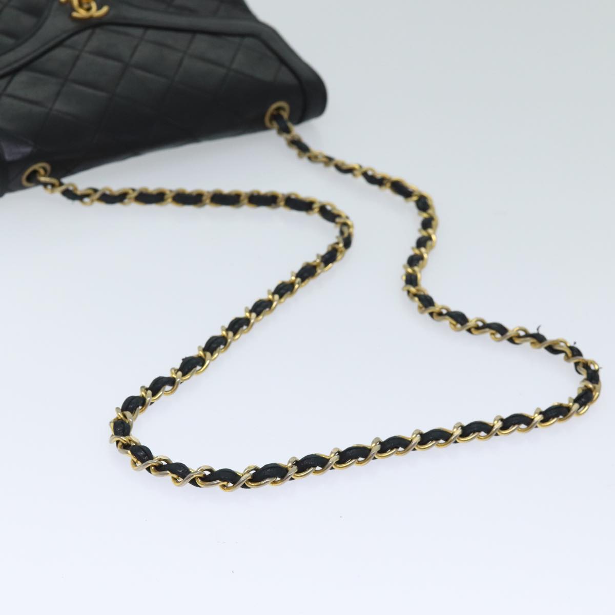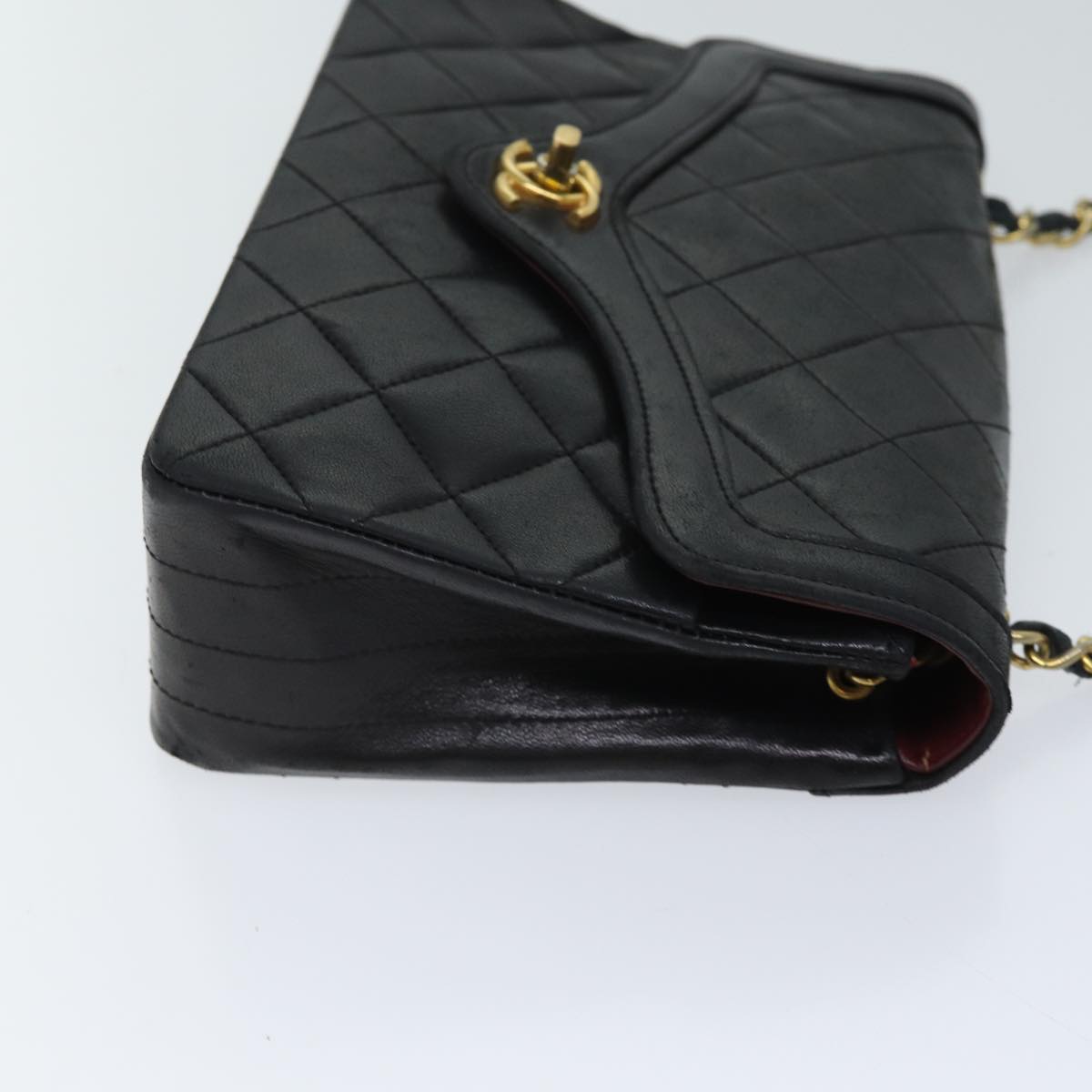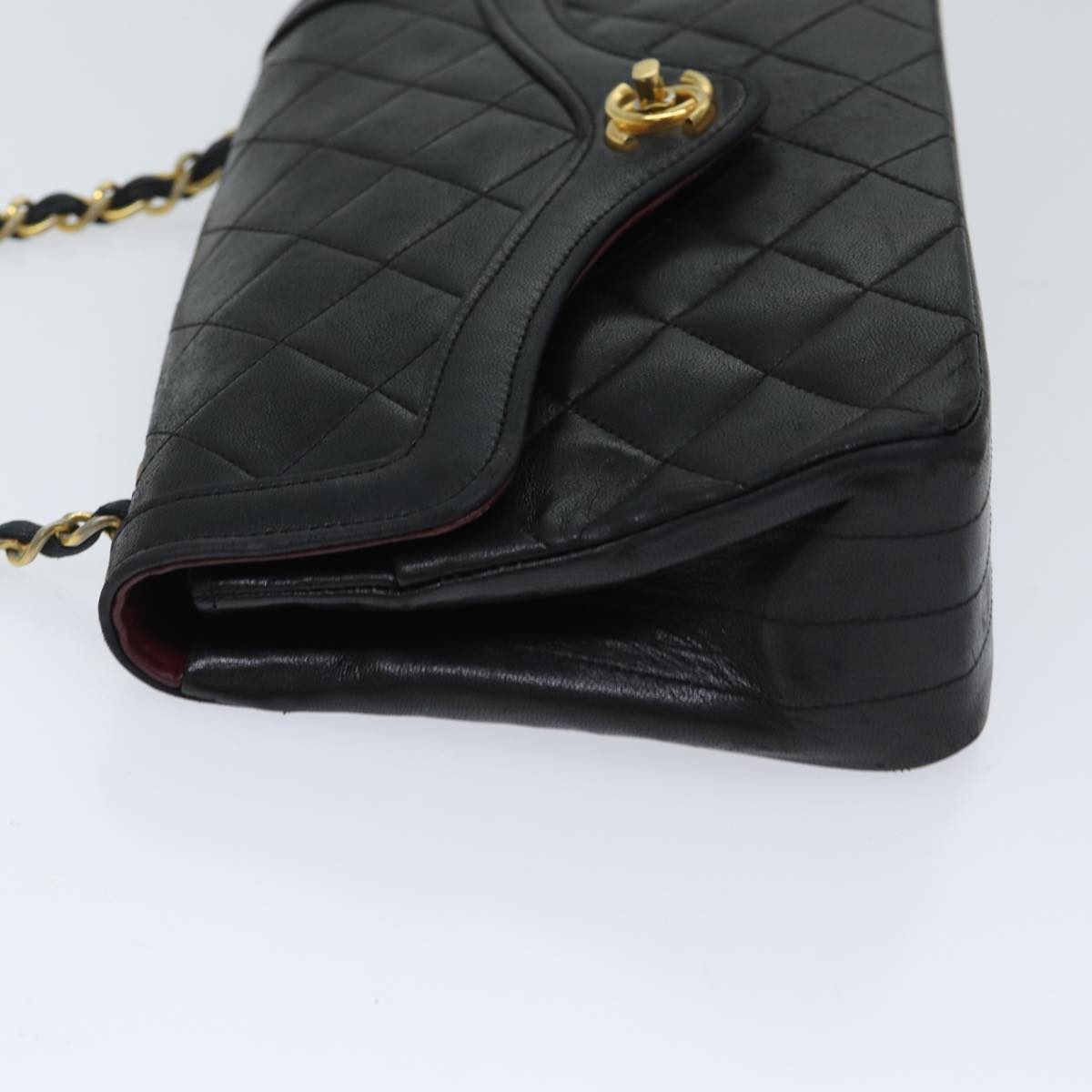 CHANEL Matelasse Turn Lock Chain Shoulder Bag Lamb Skin Black CC Auth yk11890A