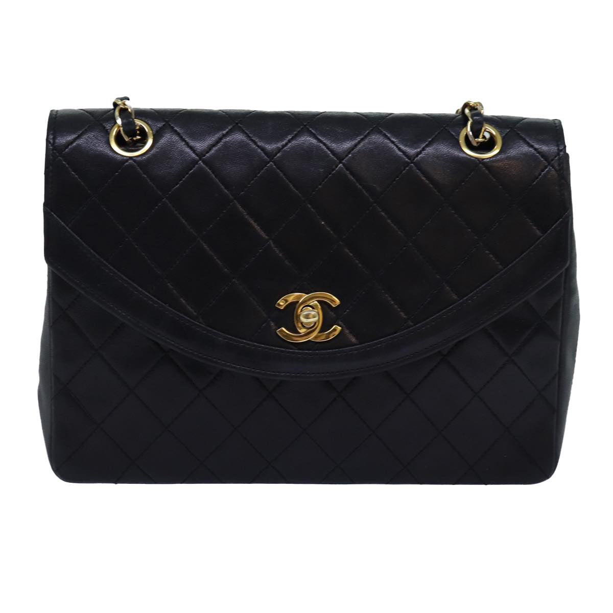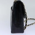 CHANEL Matelasse Turn Lock Chain Shoulder Bag Lamb Skin Black CC Auth yk12901A