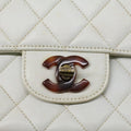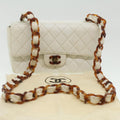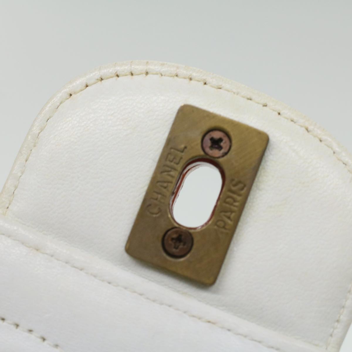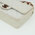 Chanel Matelasse Turn Lock Shoulder Bag Lamb Skin Brown White CC Auth 32160A