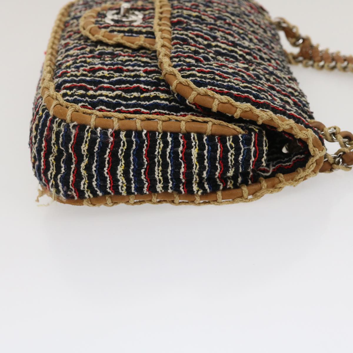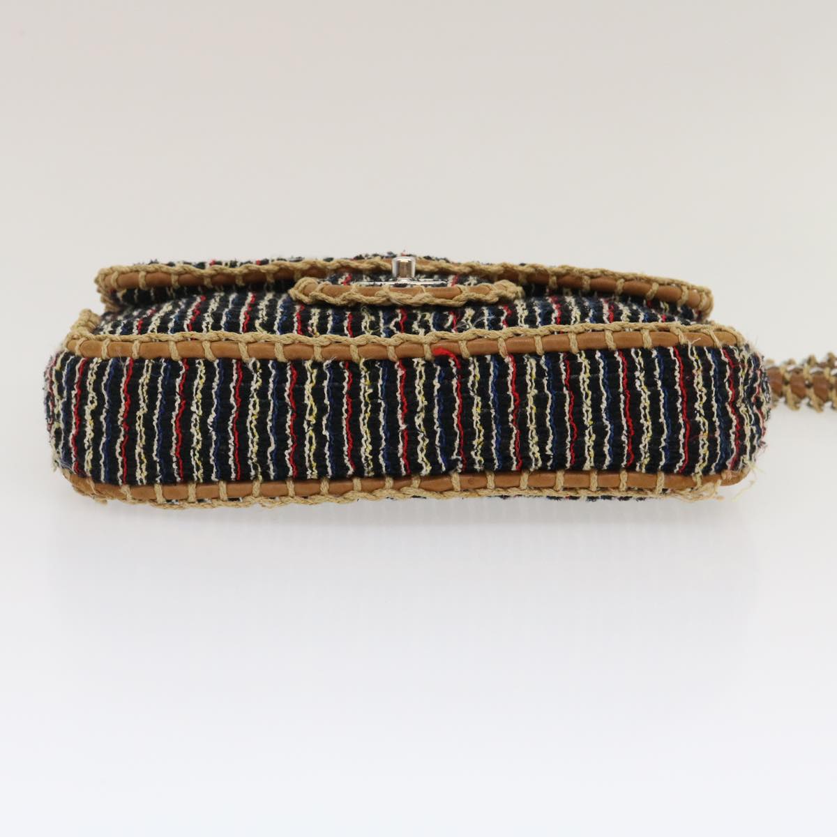 Chanel Matelasse Tweed Turn Lock Chain Shoulder Bag Navy Brown CC Auth nh616A