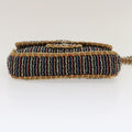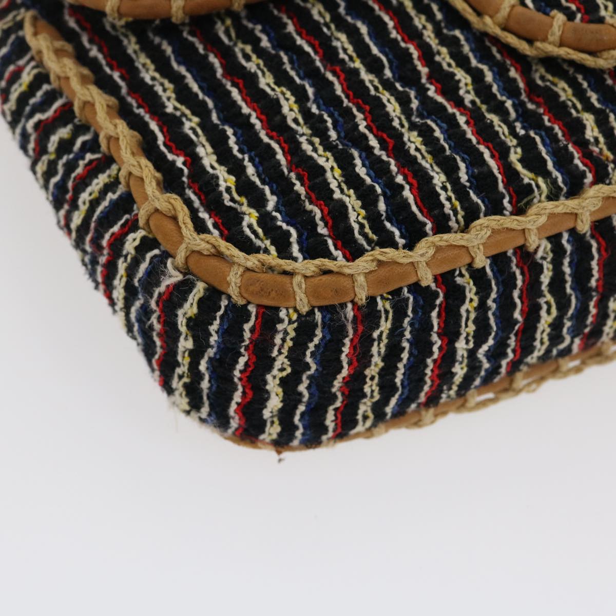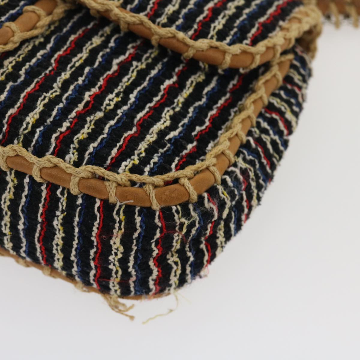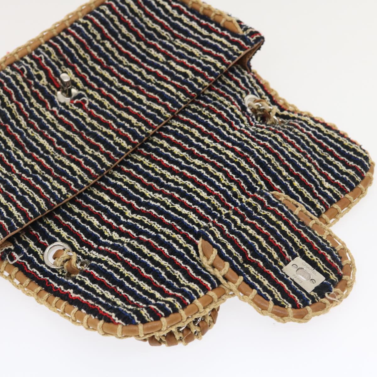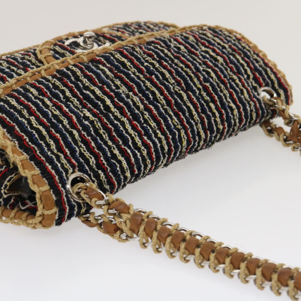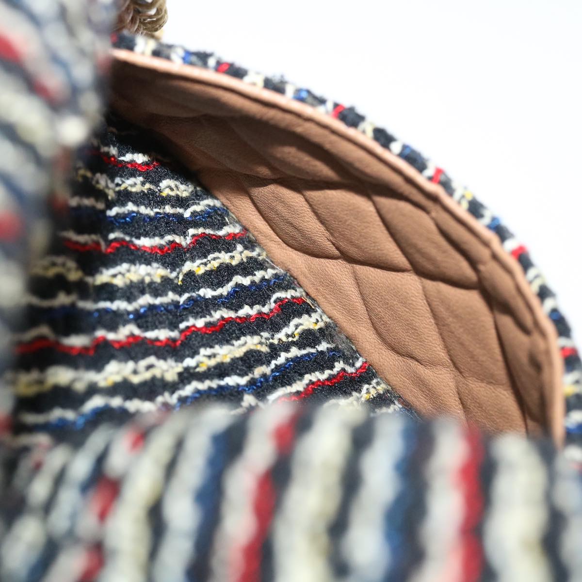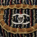 Chanel Matelasse Tweed Turn Lock Chain Shoulder Bag Navy Brown CC nh616A