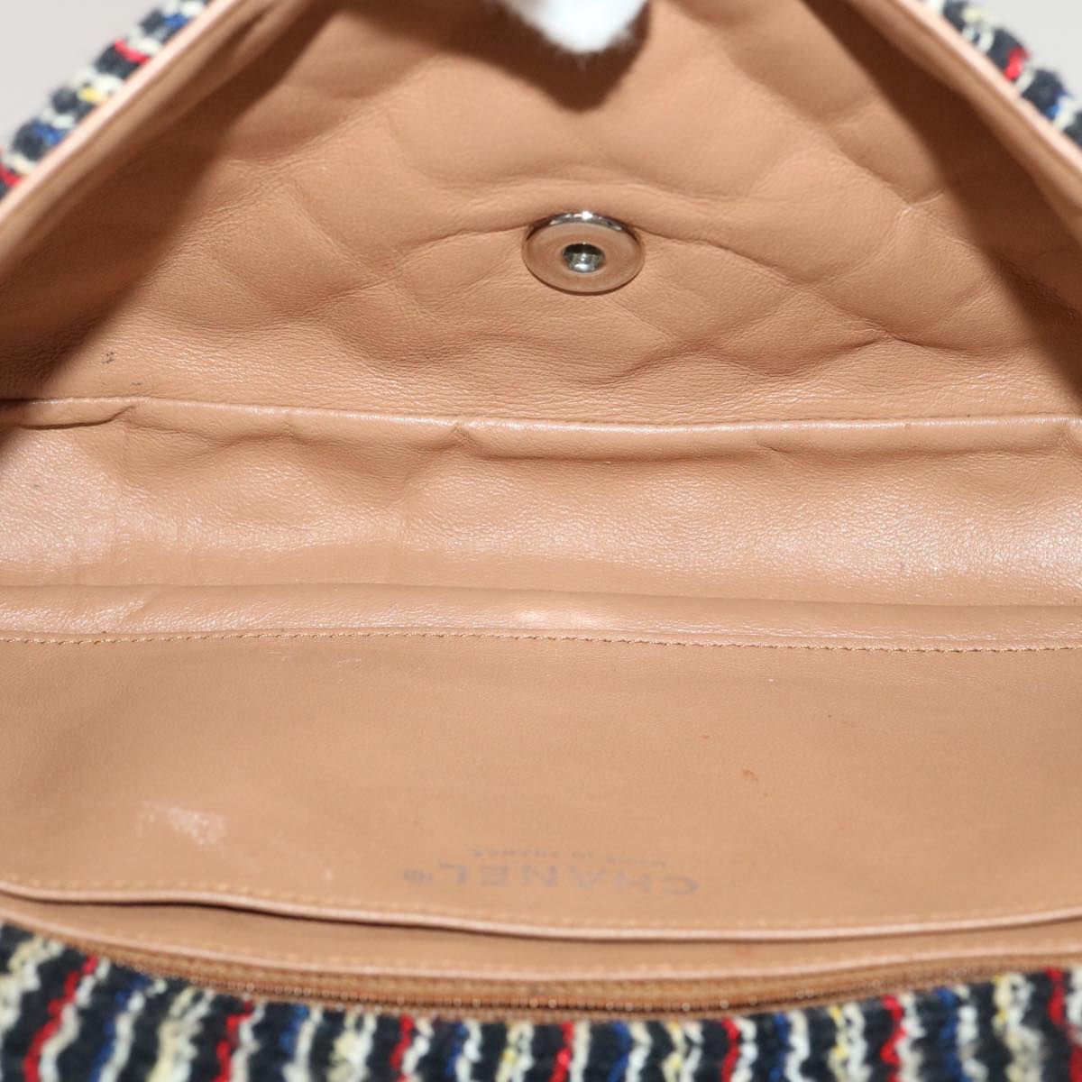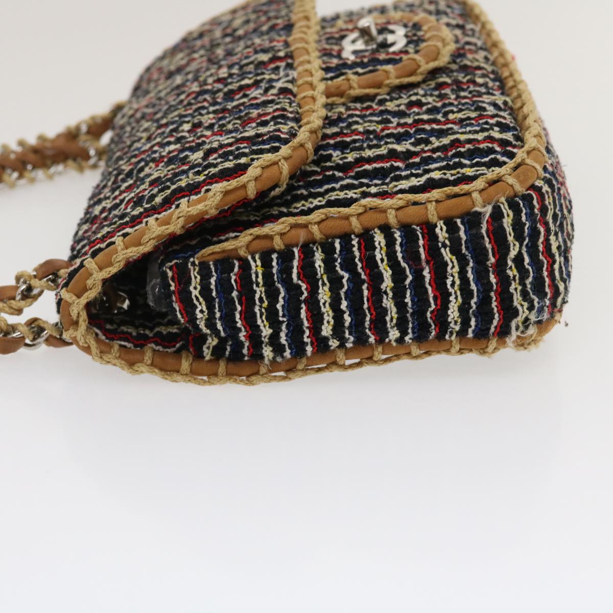 Chanel Matelasse Tweed Turn Lock Chain Shoulder Bag Navy Brown CC Auth nh616A