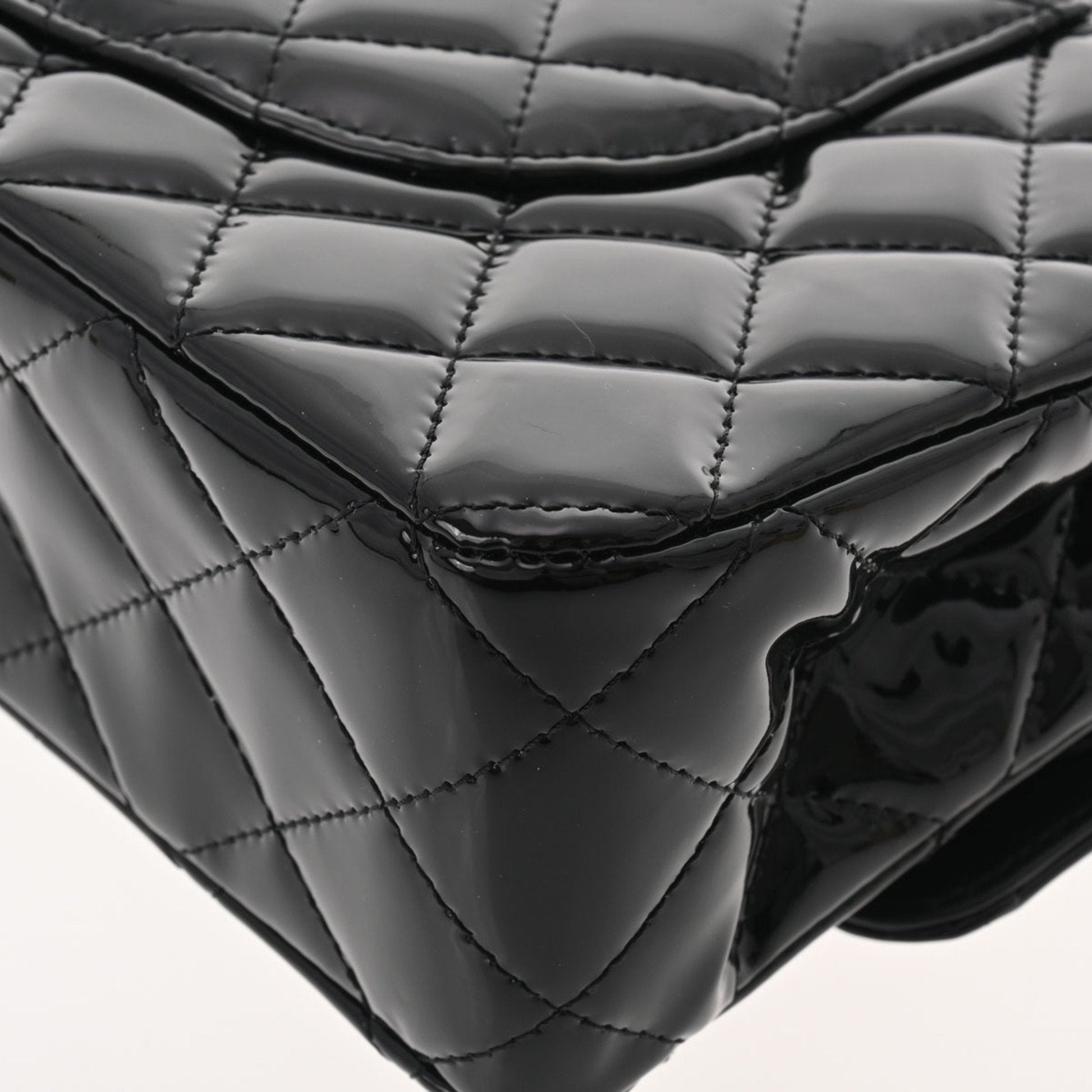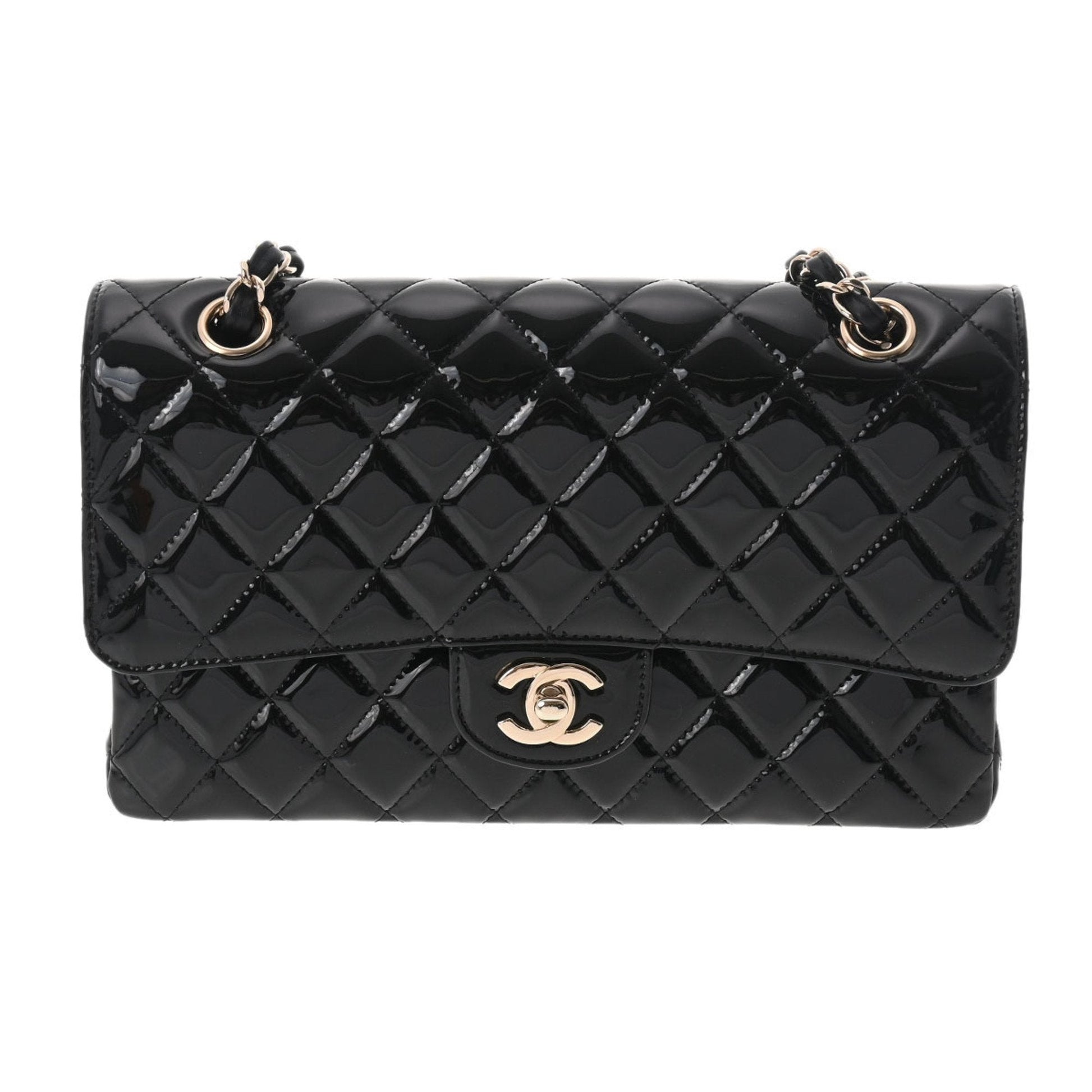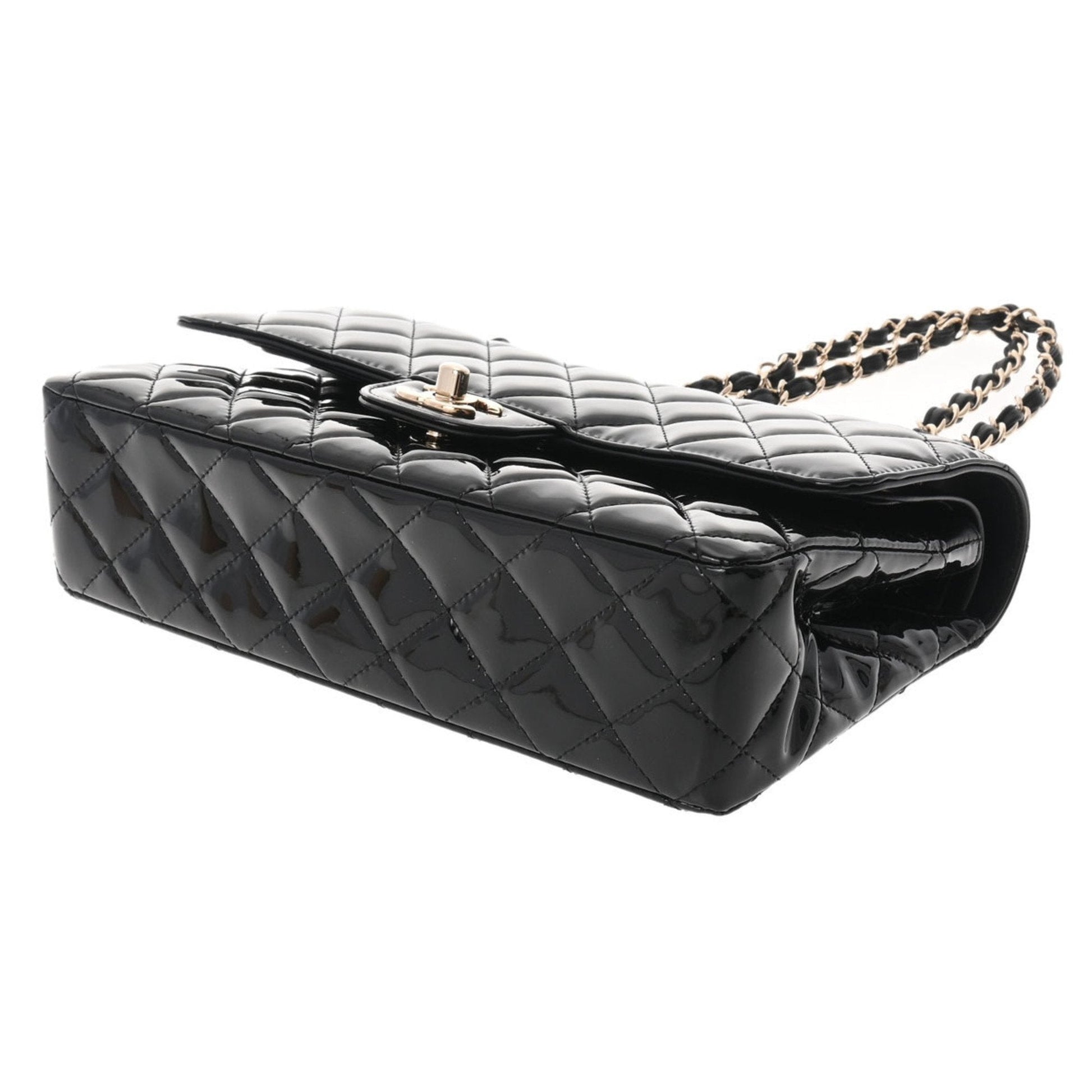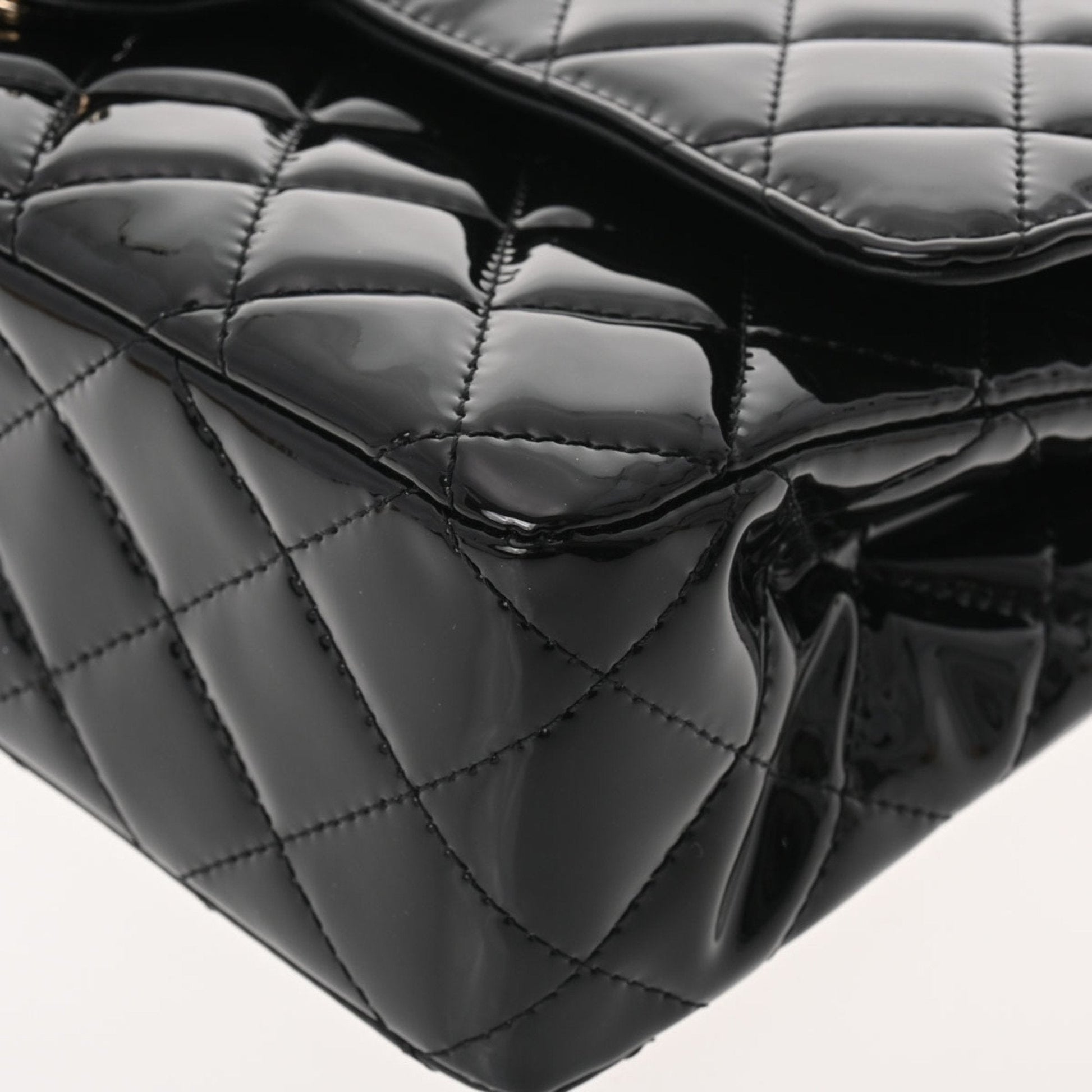 Chanel matelasse W flap chain shoulder 25 black champagne ladies patent leather Bag