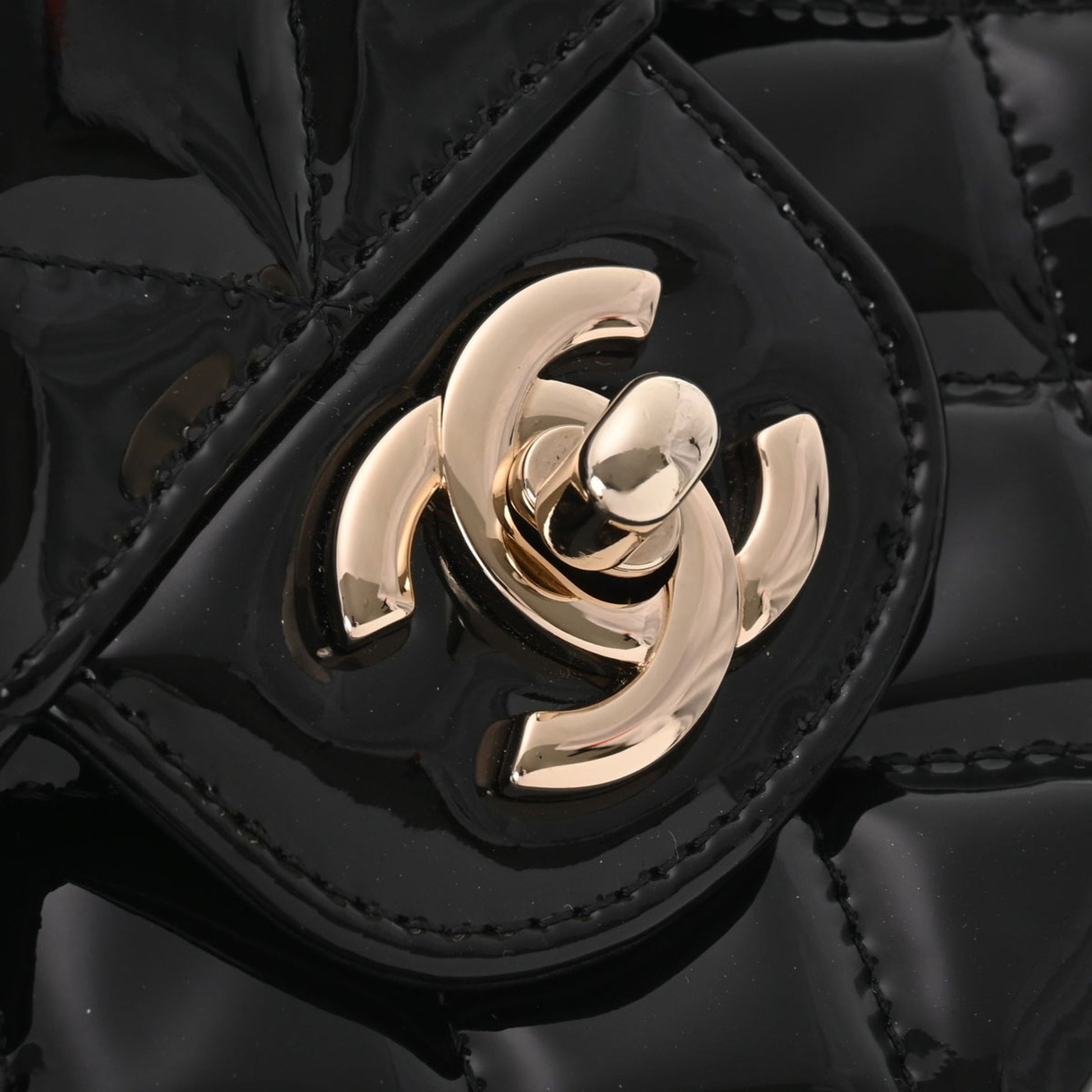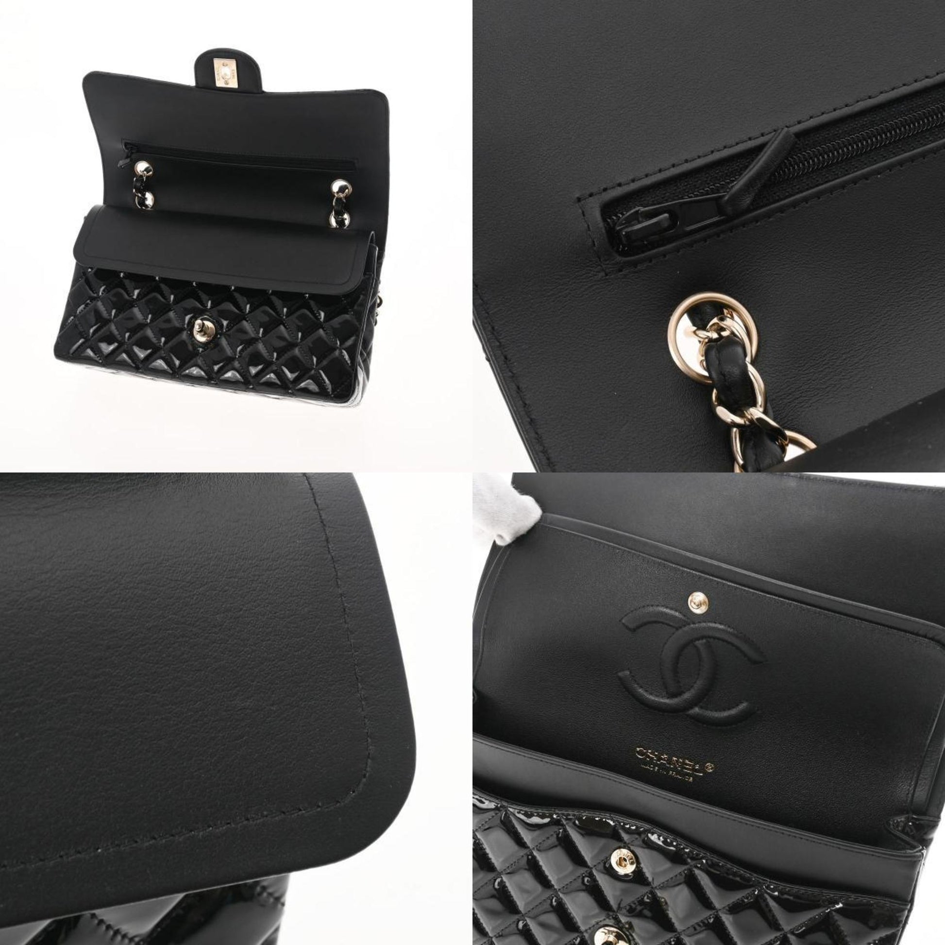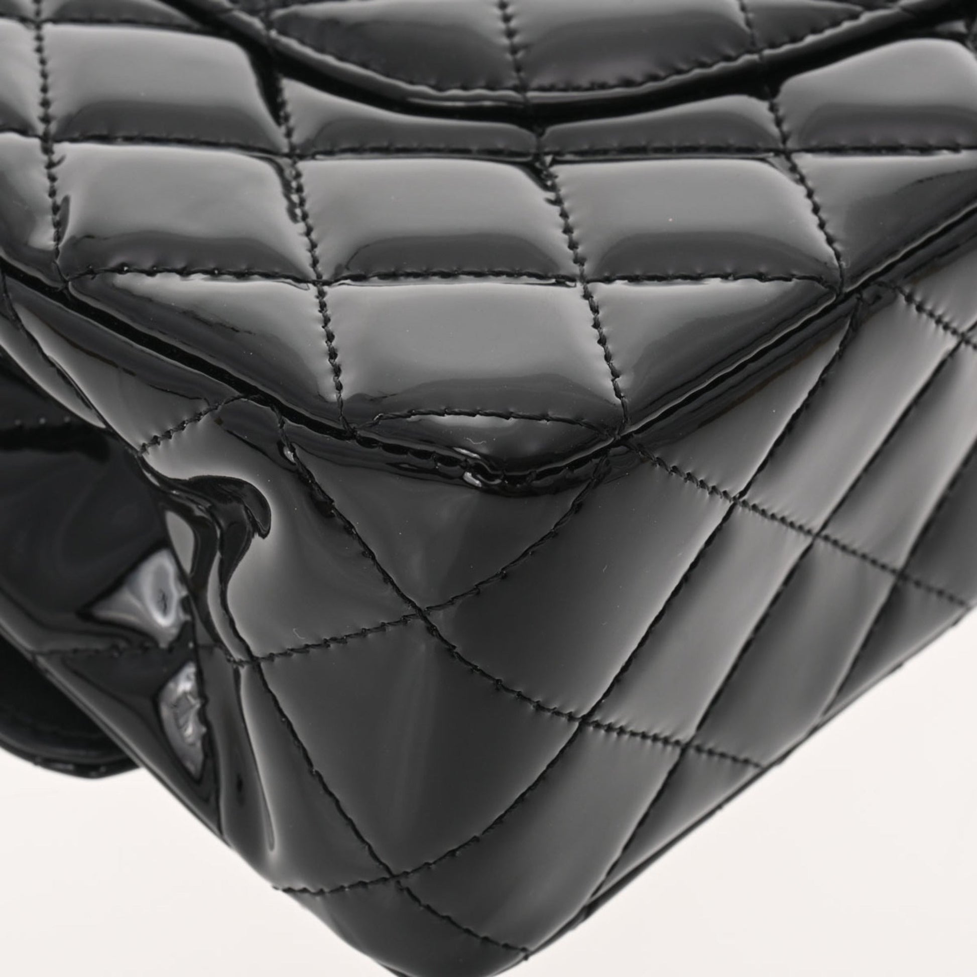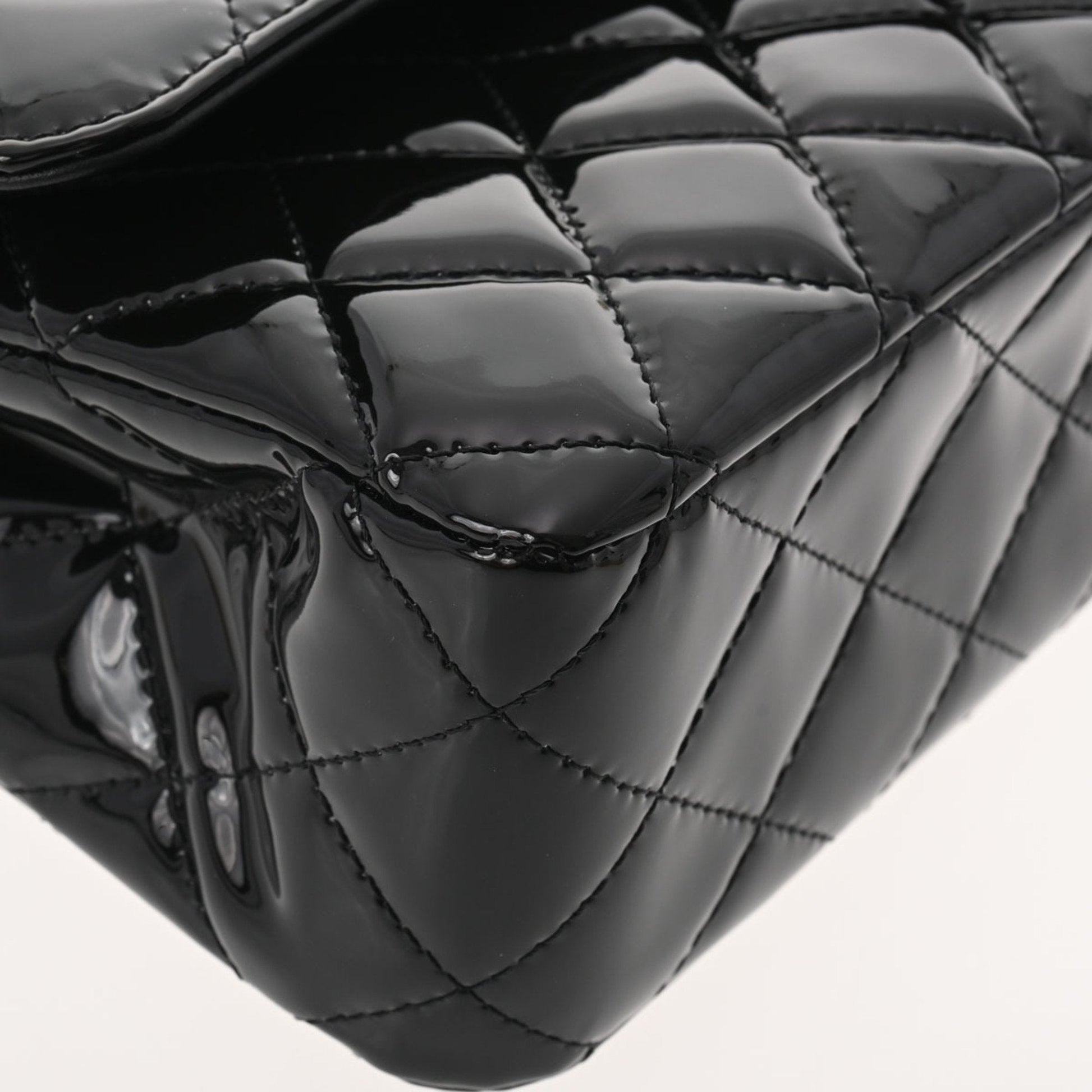 Chanel matelasse W flap chain shoulder 25 black champagne ladies patent leather Bag
