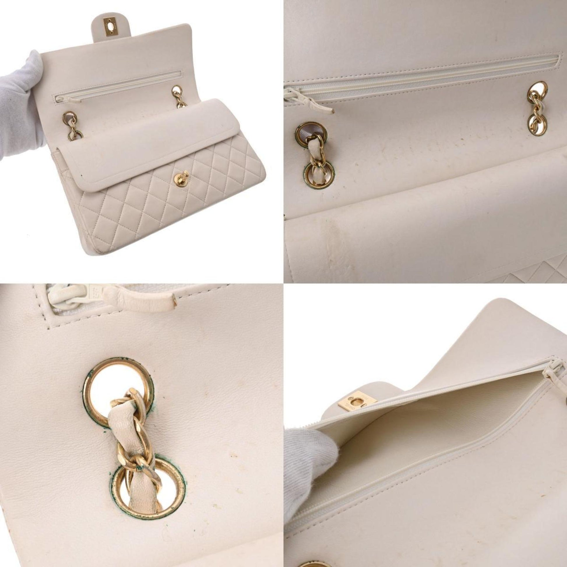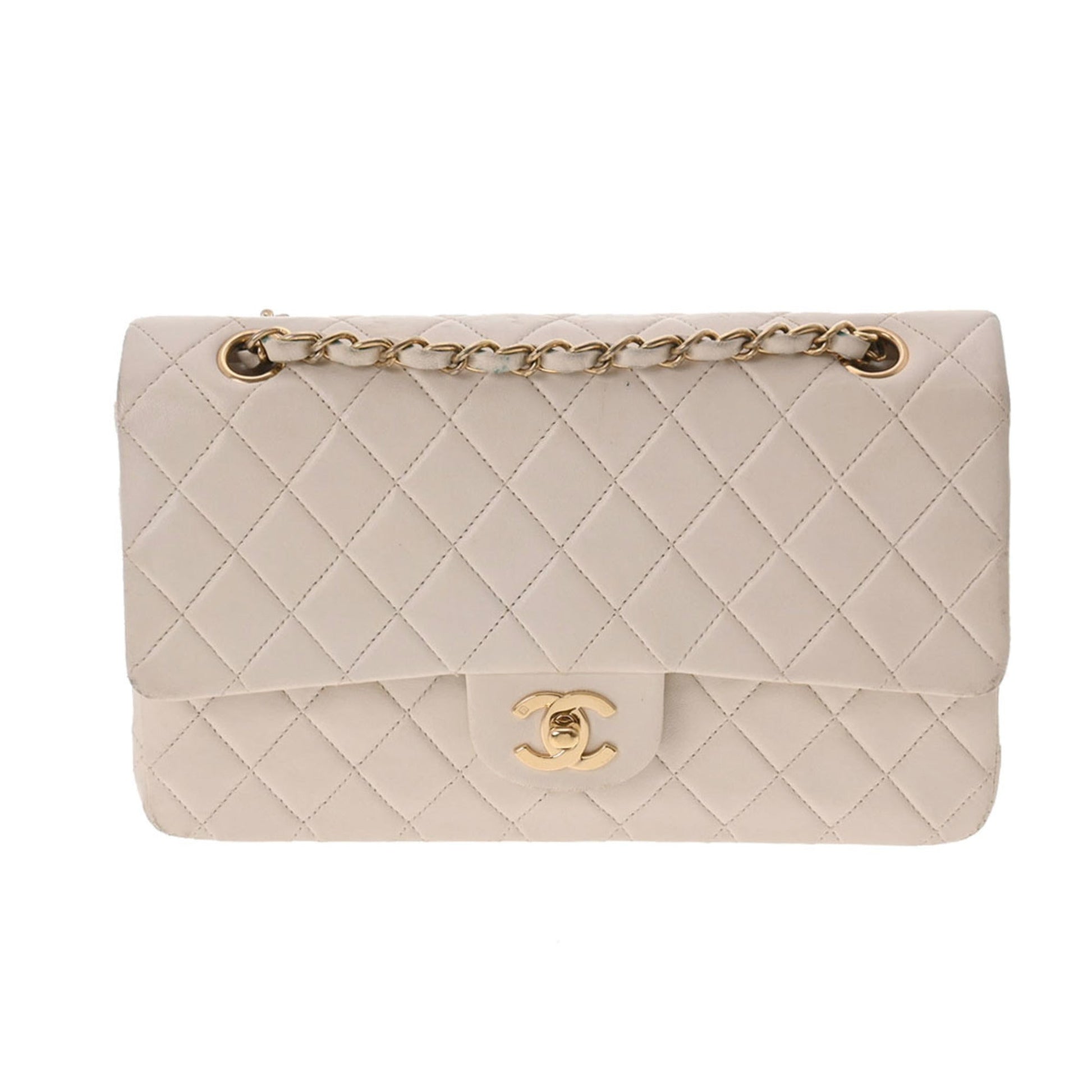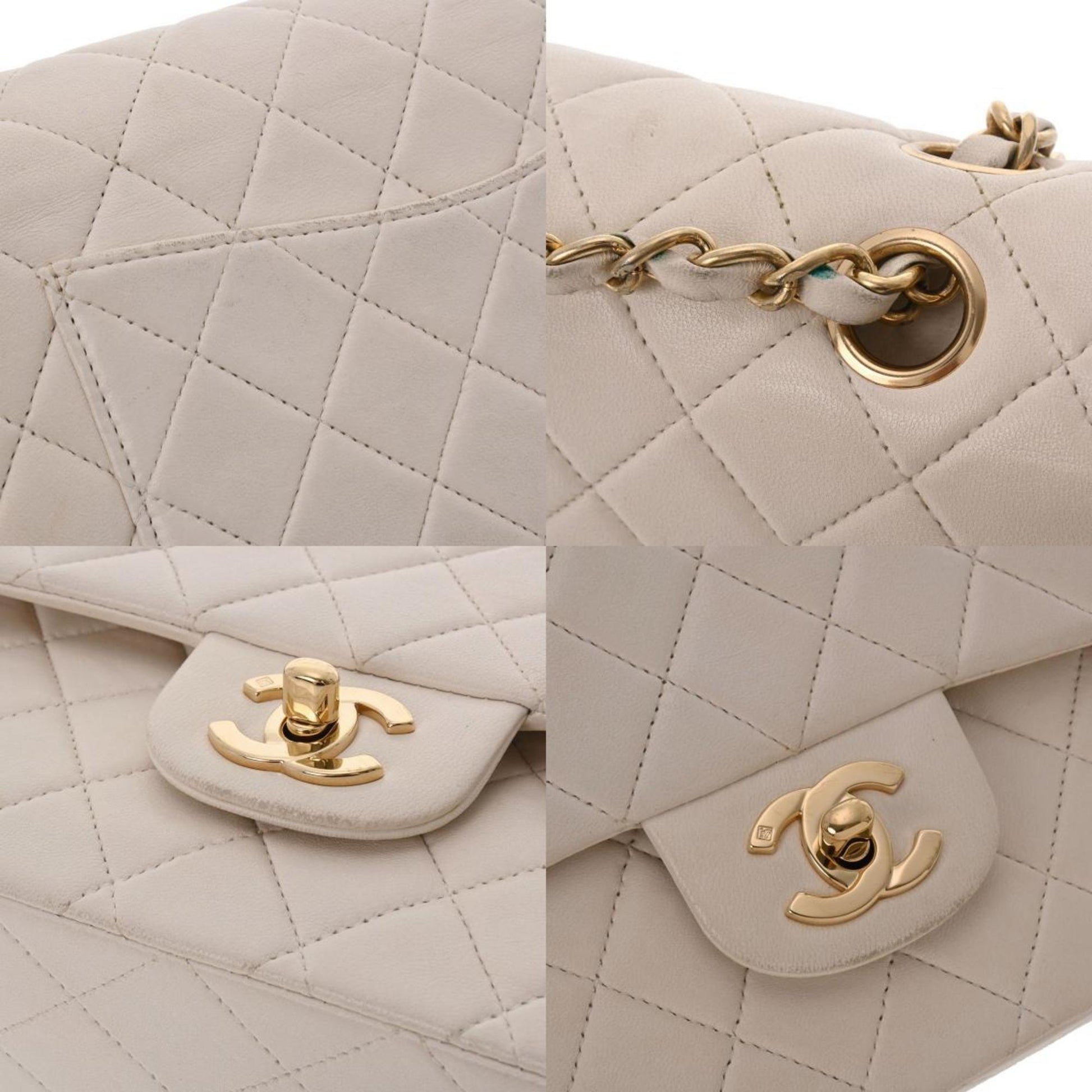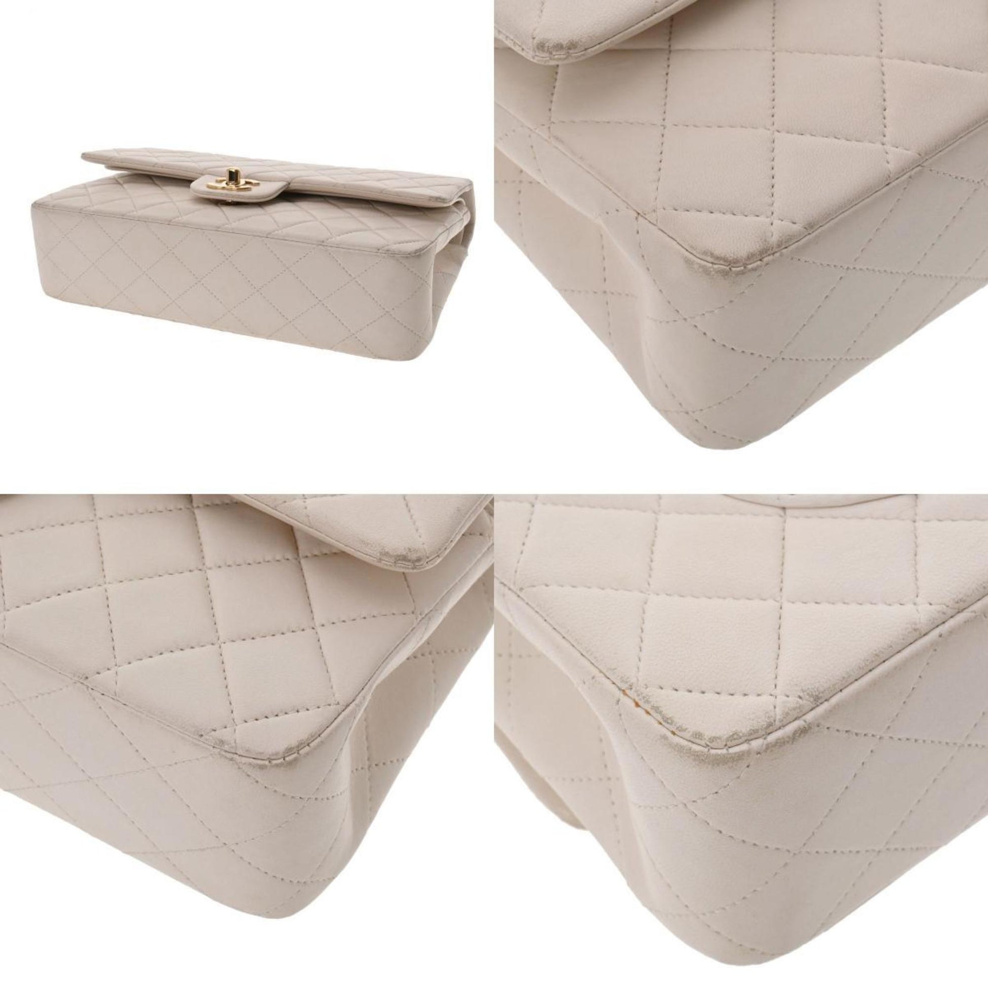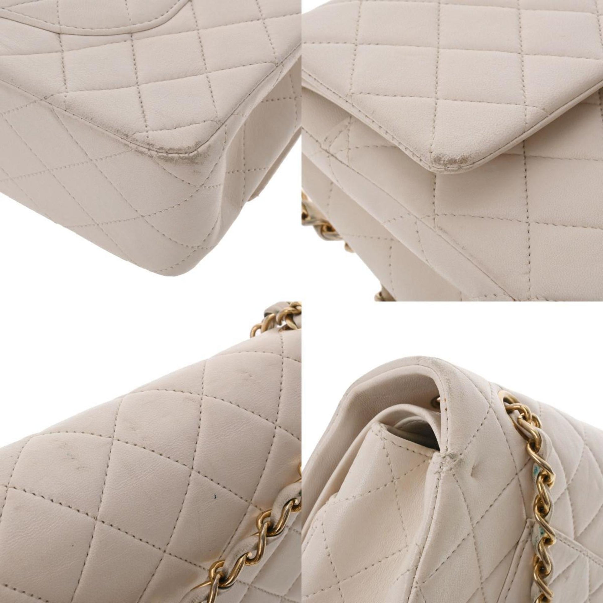 Chanel Matelasse W Flap Chain Shoulder 25 White Women's Lambskin Bag