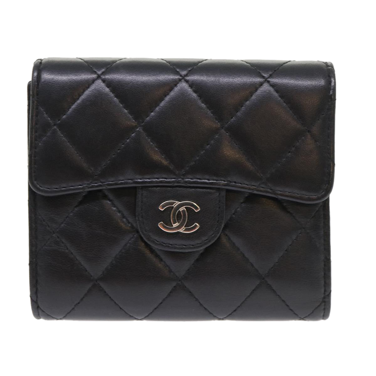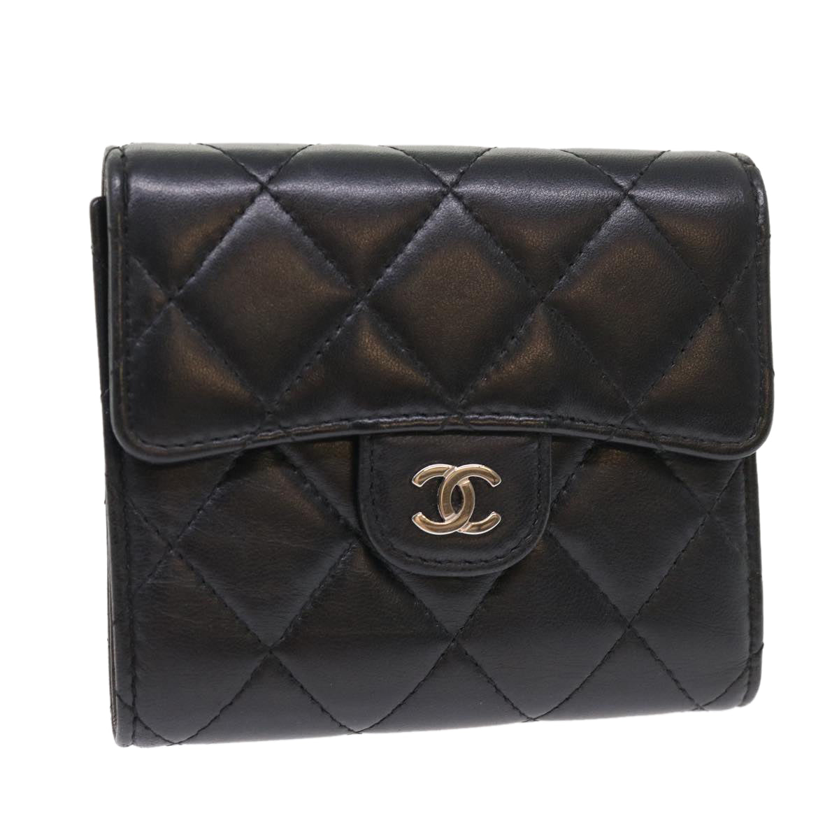 Chanel Matelasse Wallet Lamb Skin Black CC Auth 47561