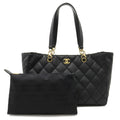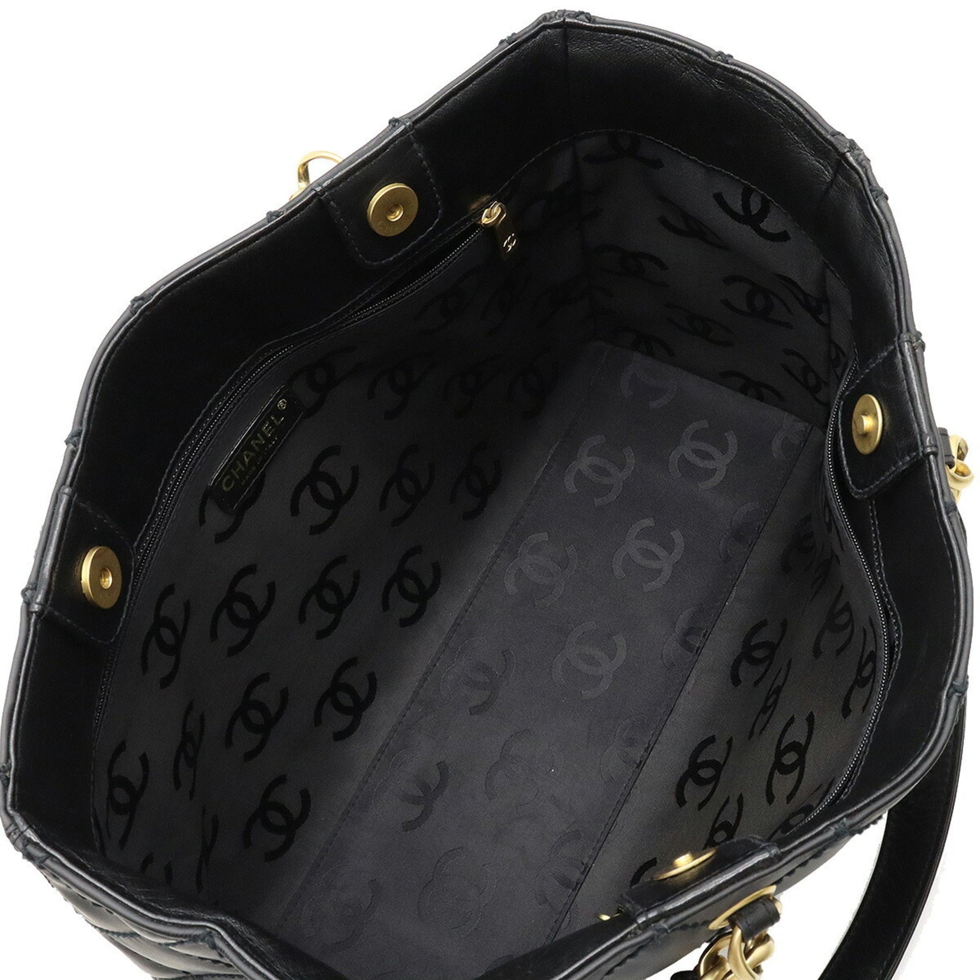 Chanel Matelasse Wild Stitch Tote Bag Chain Shoulder Matte Leather Black