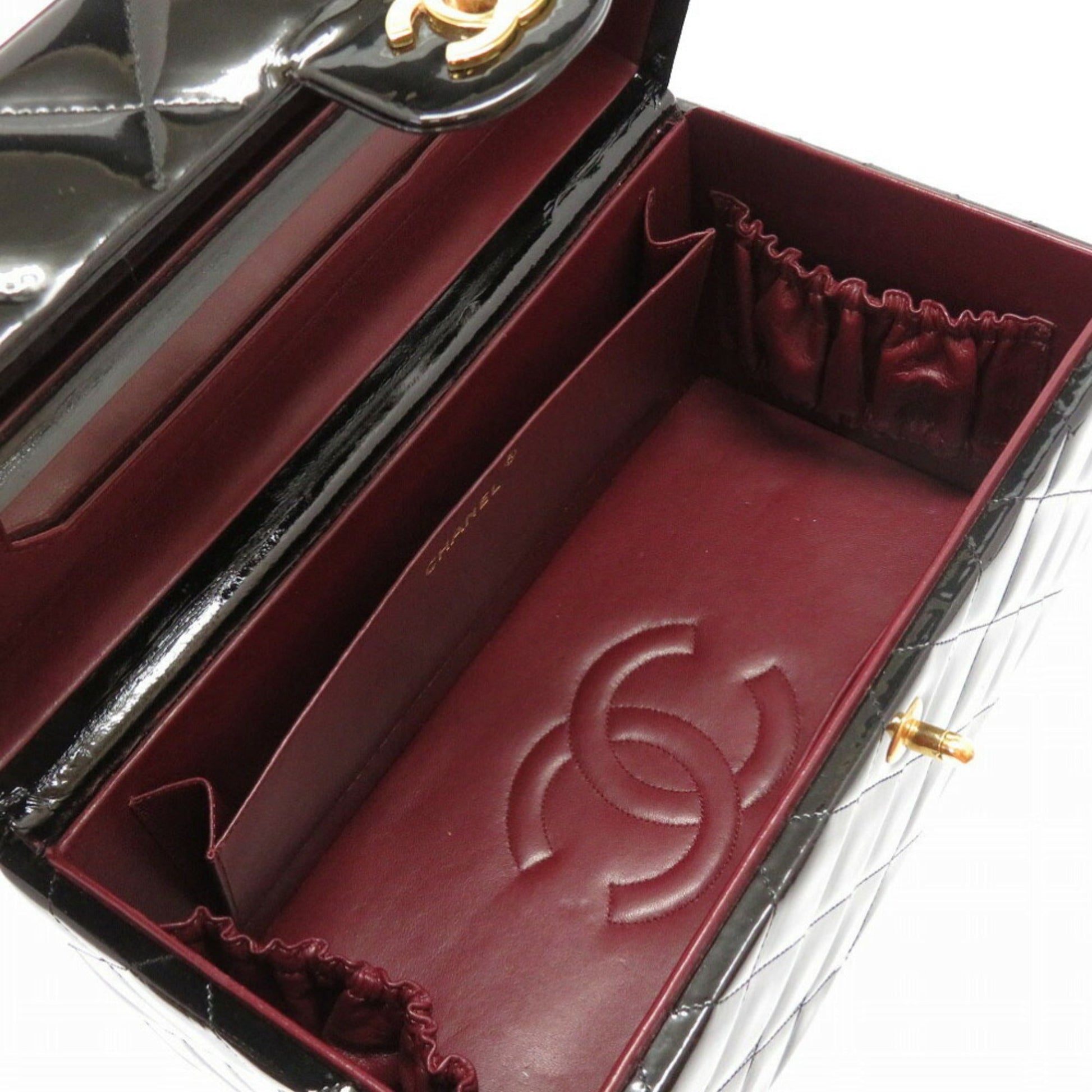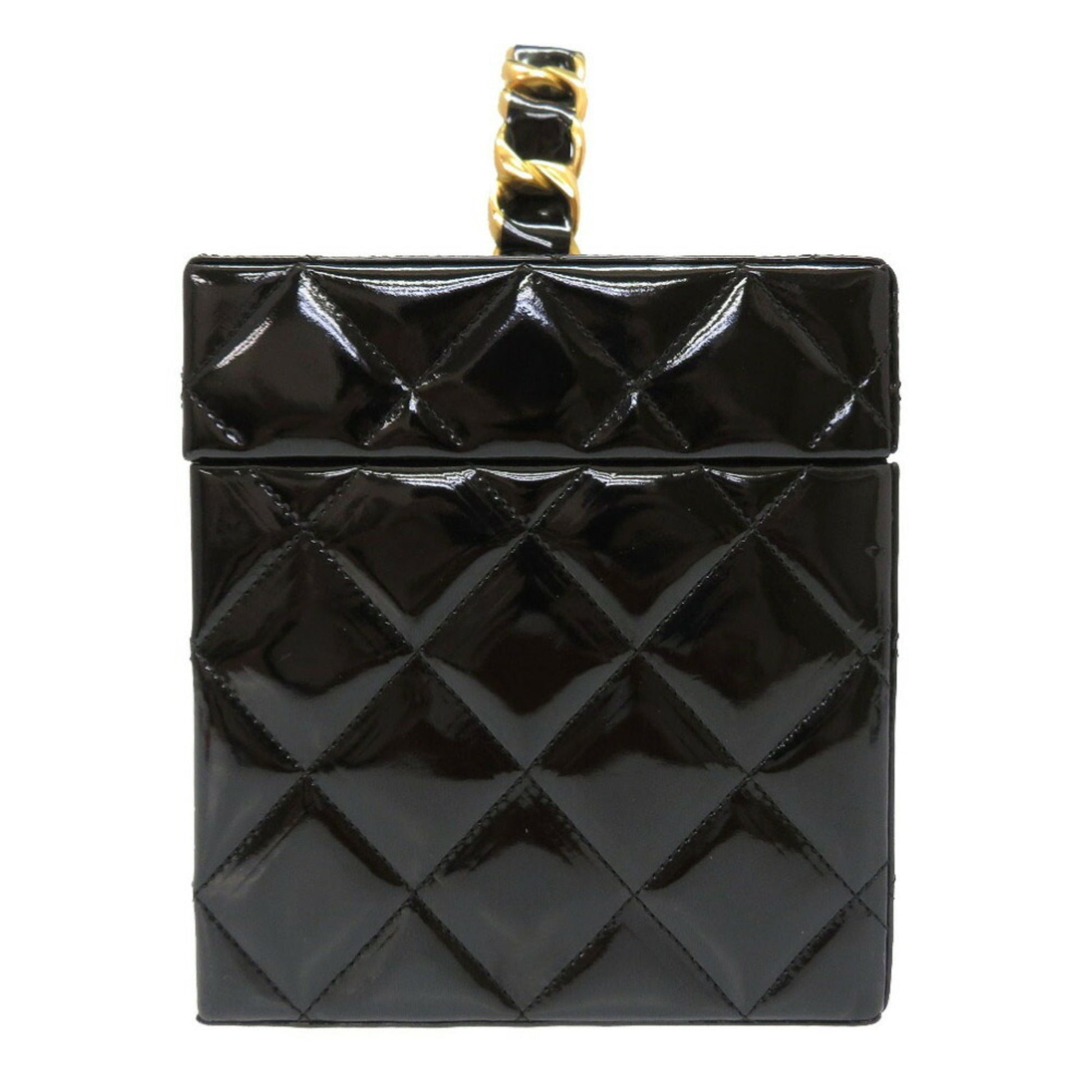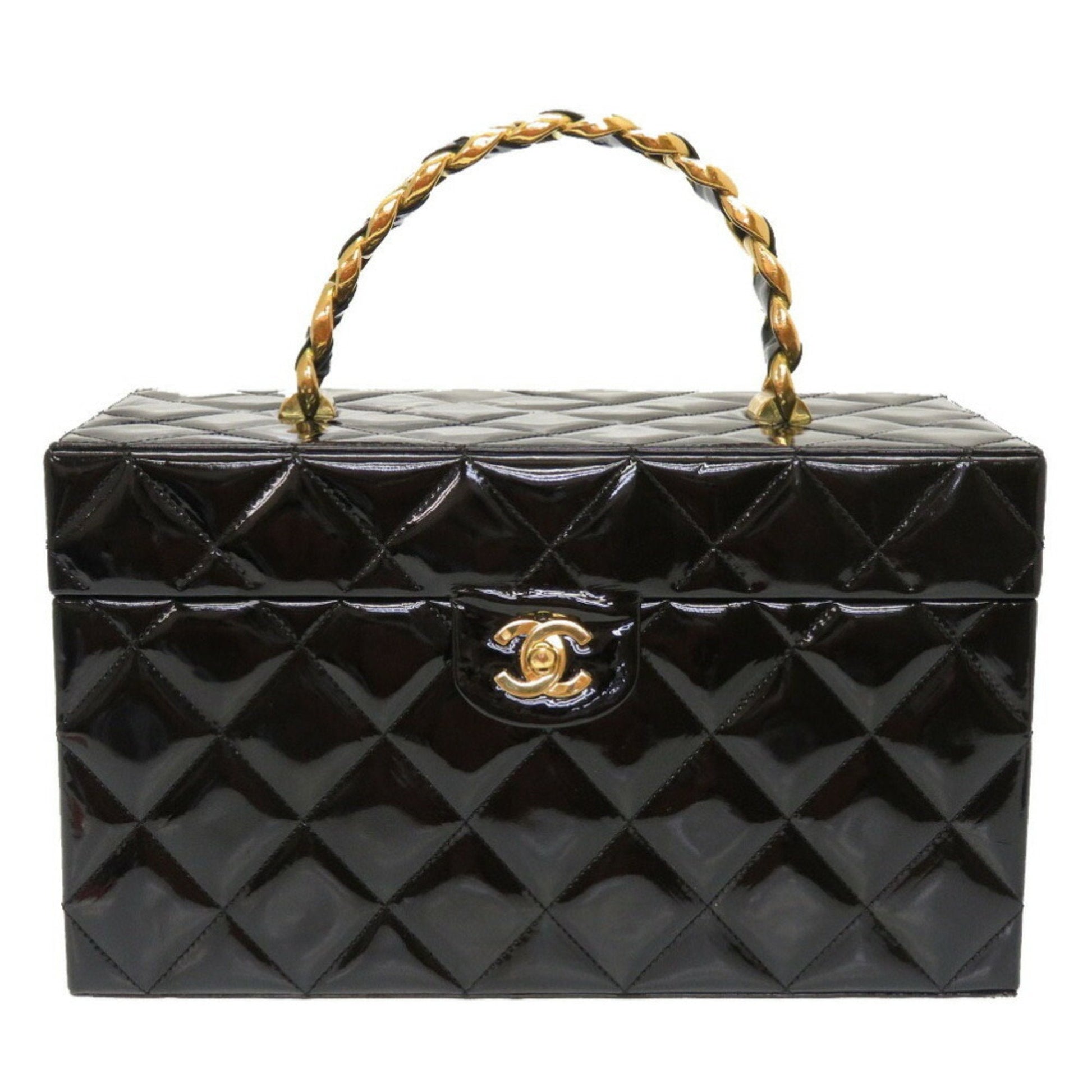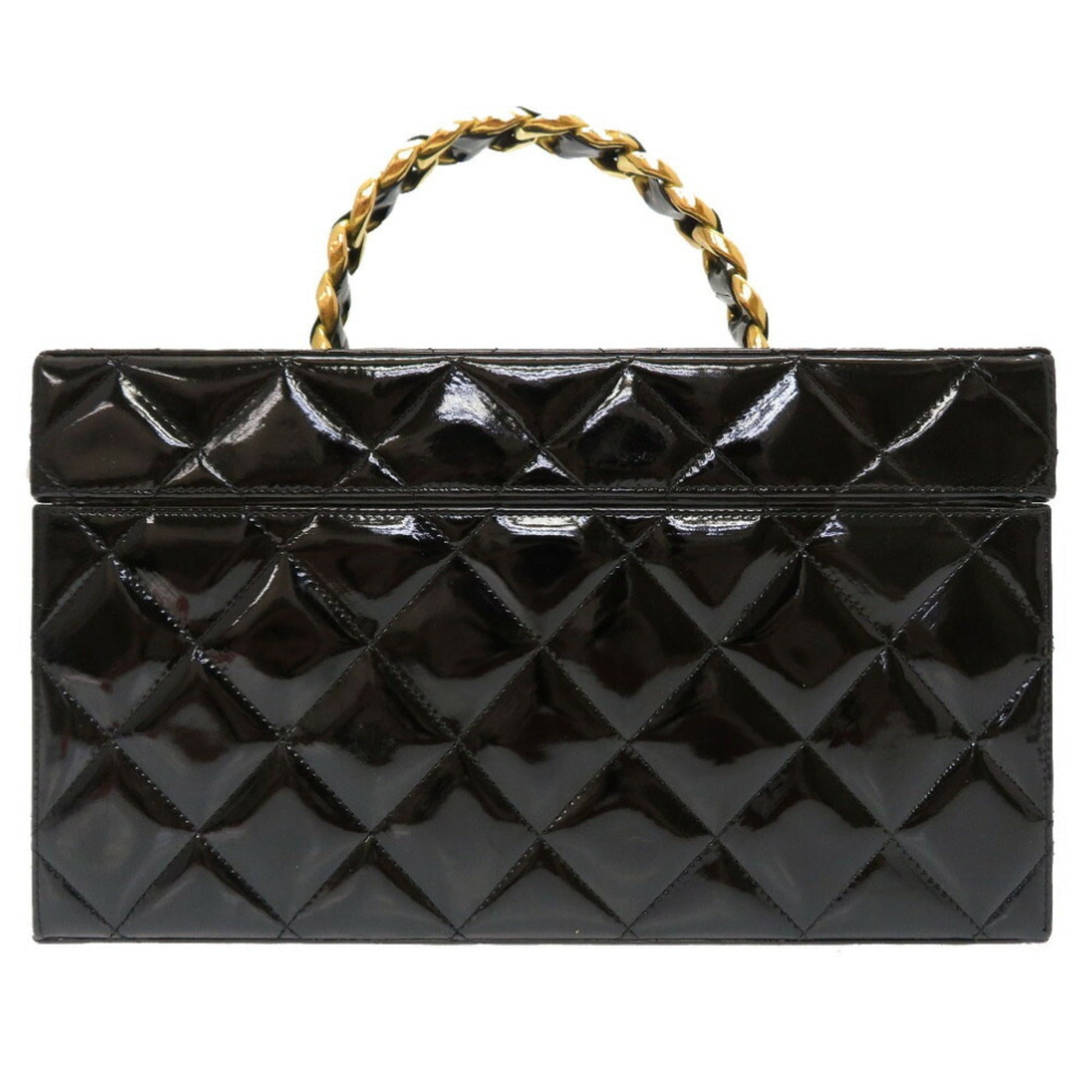 Chanel Matrasse Enamel Black 2nd Gold Metal Fittings Vintage Coco Mark Turn Lock Vanity Bag 0032 Chanel