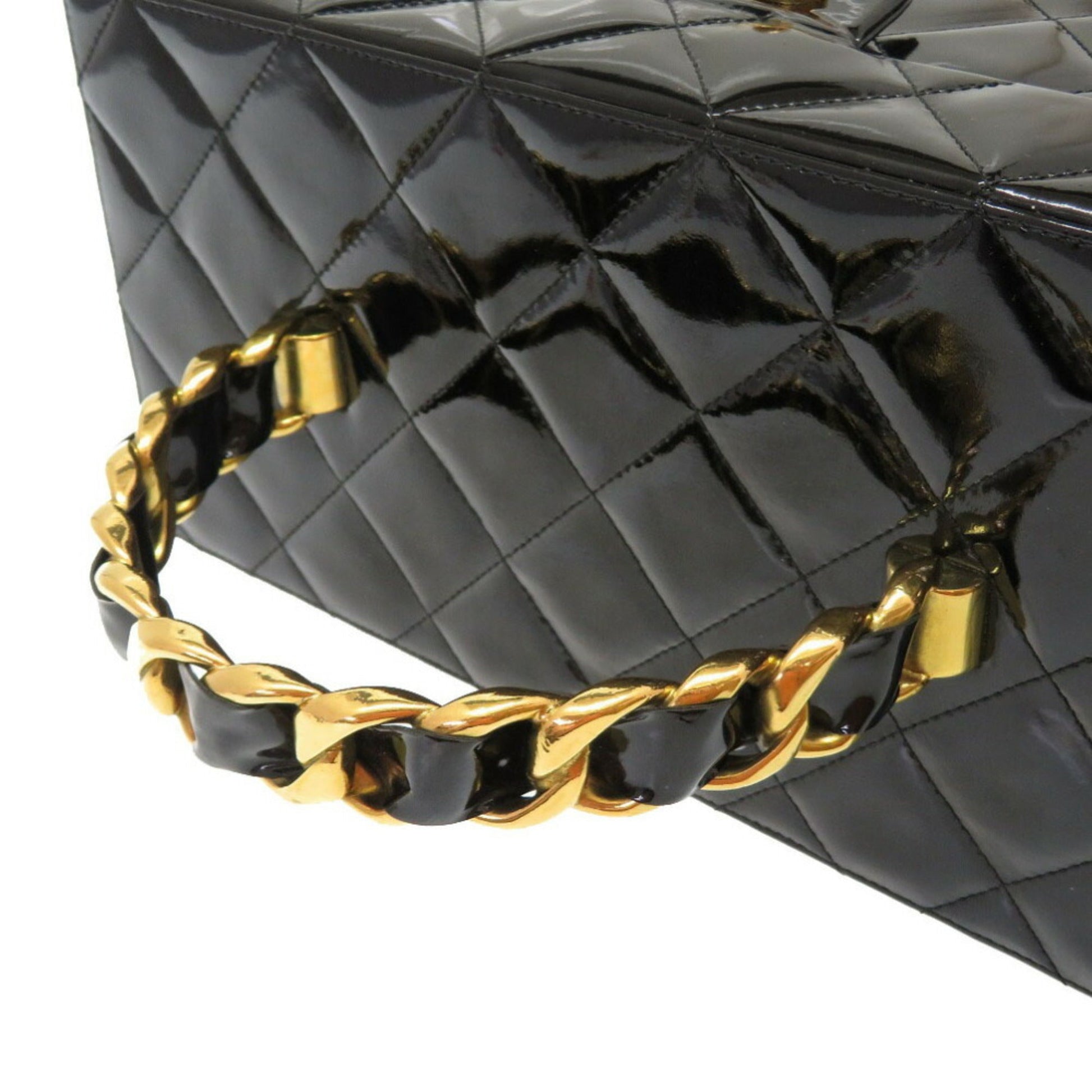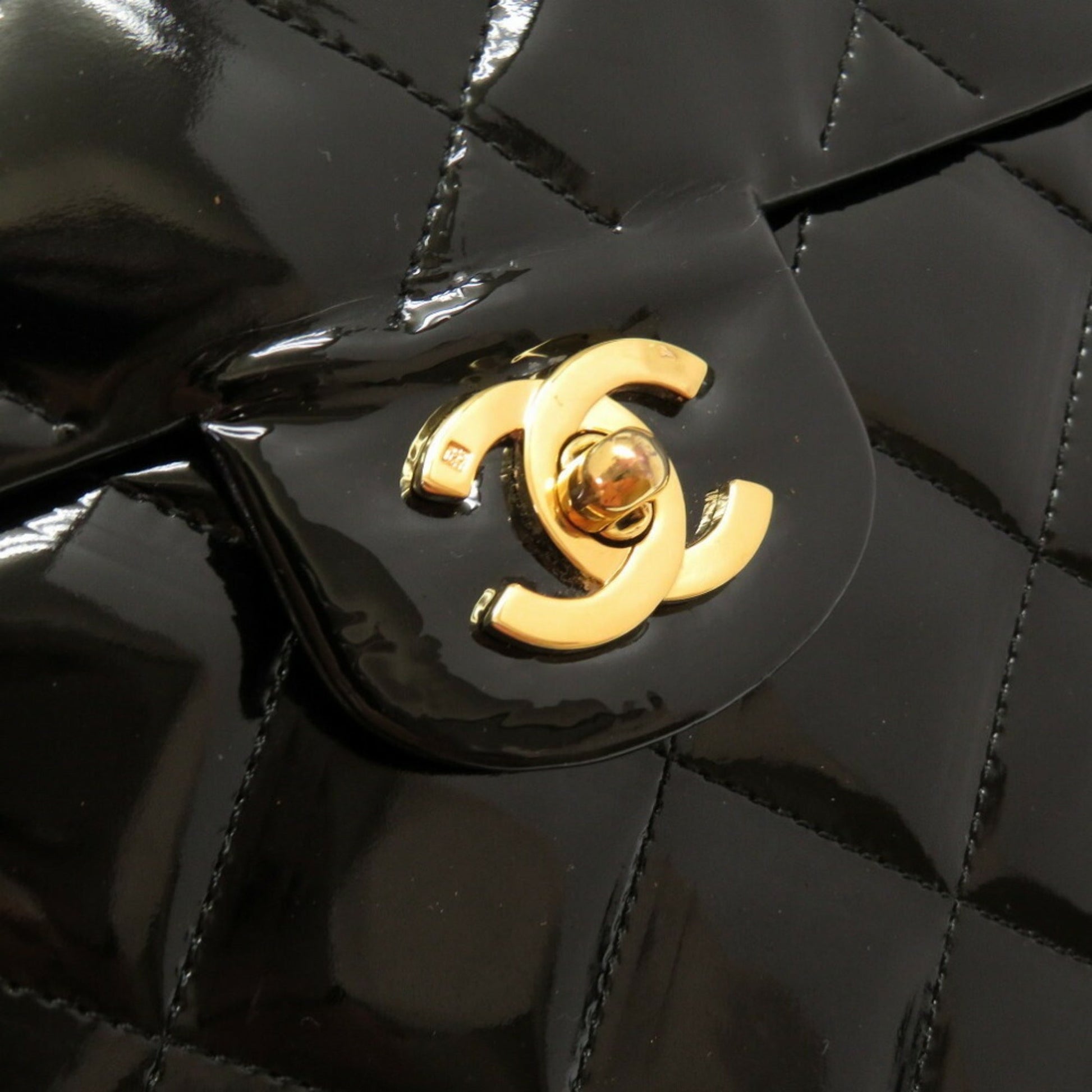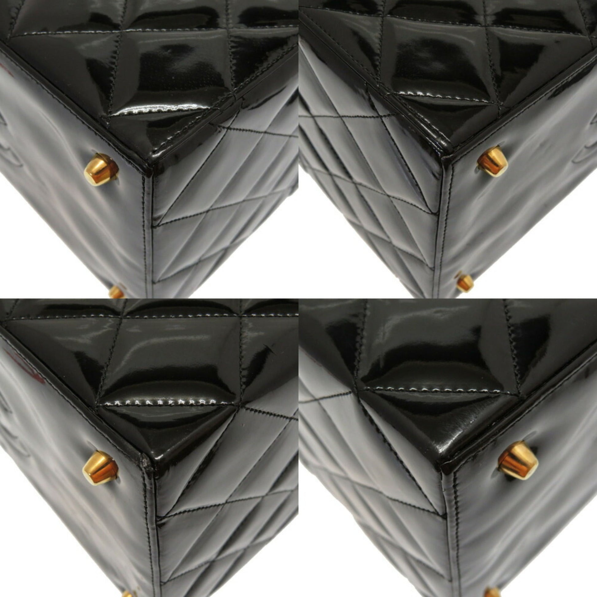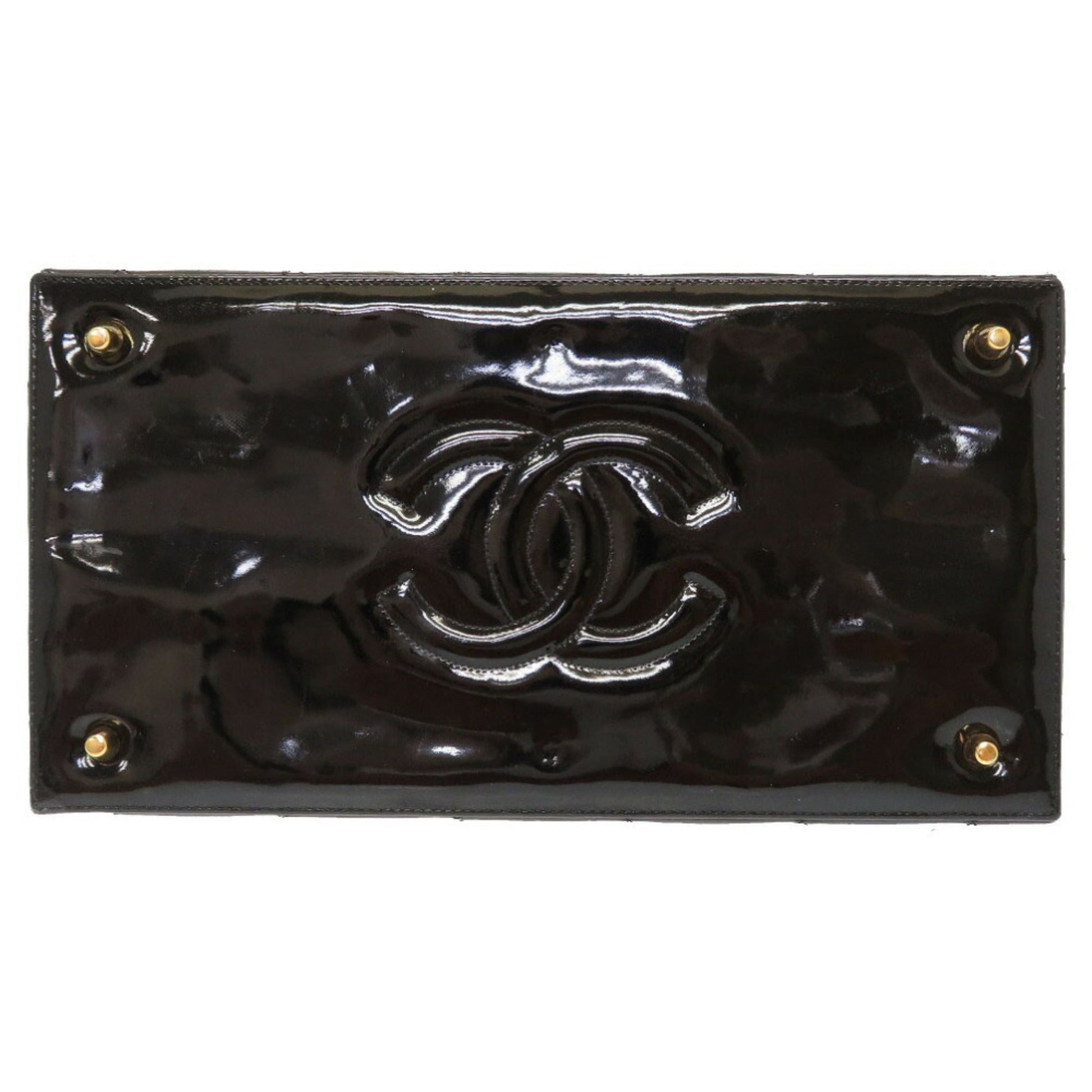 Chanel Matrasse Enamel Black 2nd Gold Metal Fittings Vintage Coco Mark Turn Lock Vanity Bag 0032 Chanel