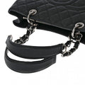 Elevate your style with the iconic Chanel Matrasse GST Grand Shopping Tote in classic black. Crafted from luxurious caviar leather, this timeless piece exudes sophistication and elegance. The spacious interior is perfect for carrying all your essentials, making it ideal for both work and play. With its signature quilted design and gold-tone hardware, this Chanel tote is a must-have accessory for any fashion enthusiast. Make a statement with the epitome of luxury and versatility - the Chanel Matrasse GST Grand Shopping Tote in black.