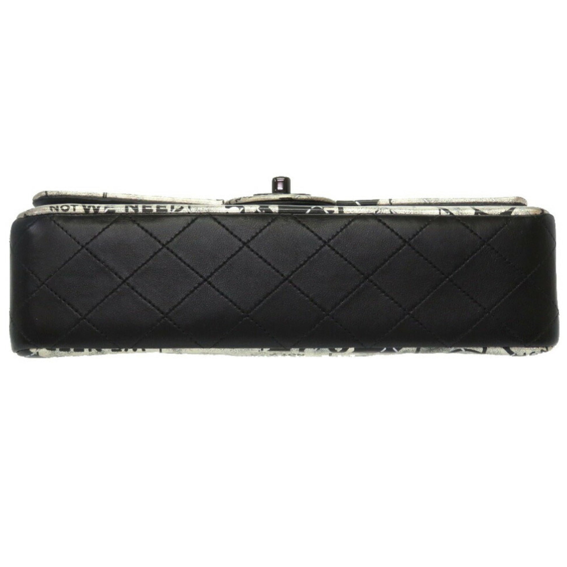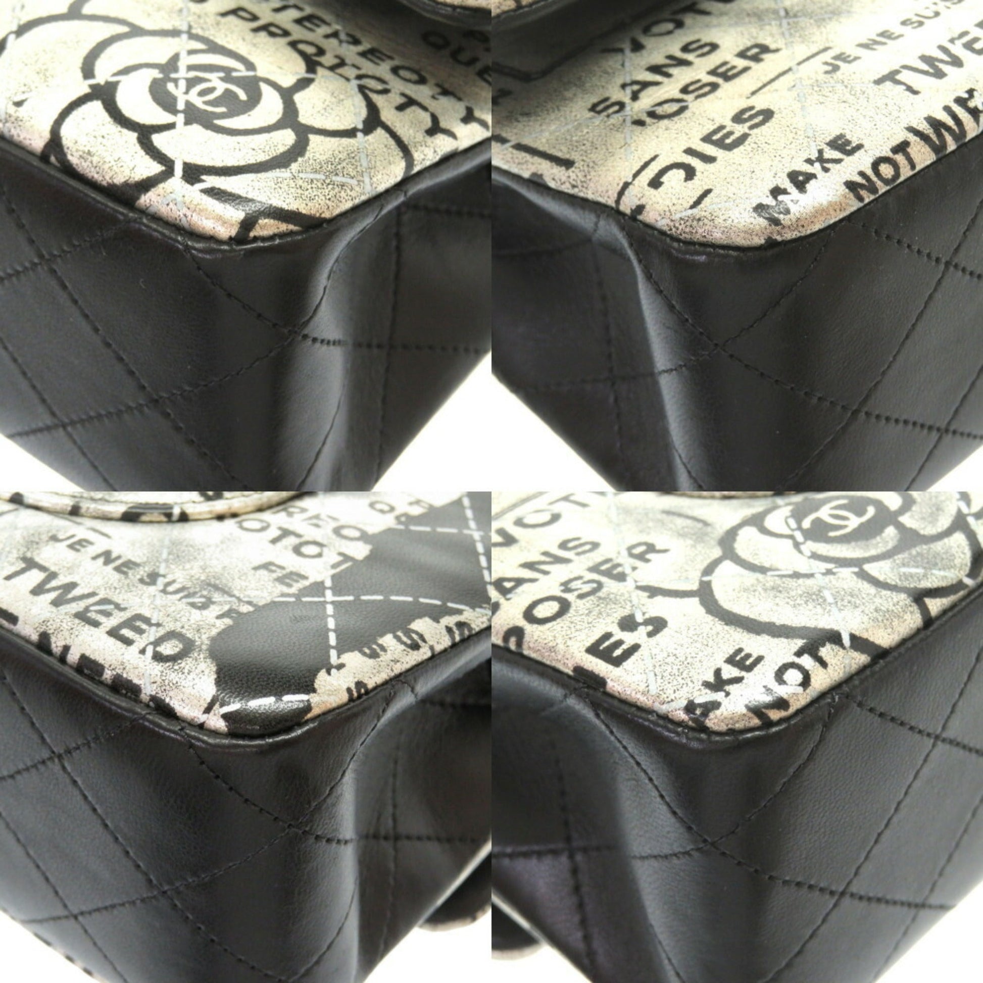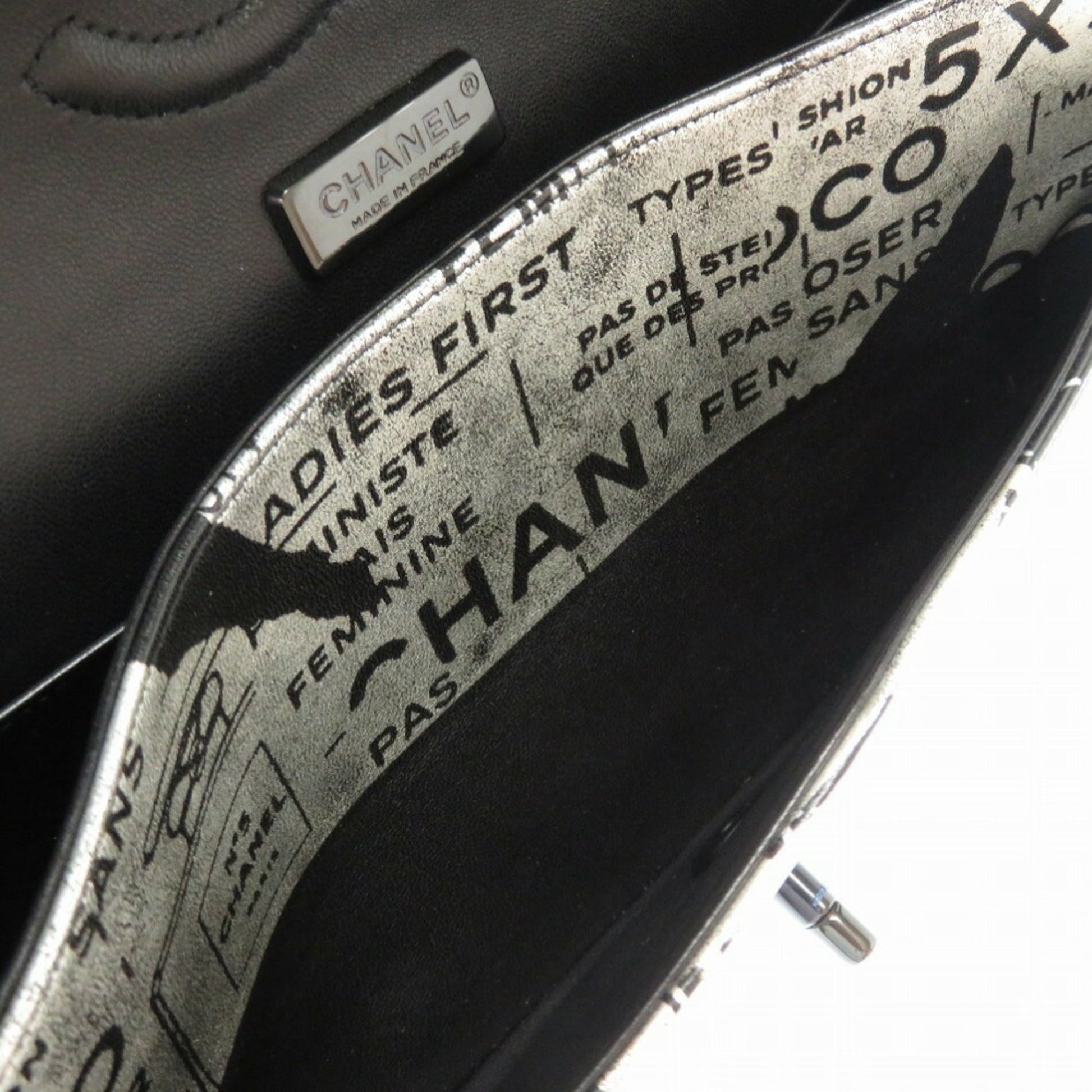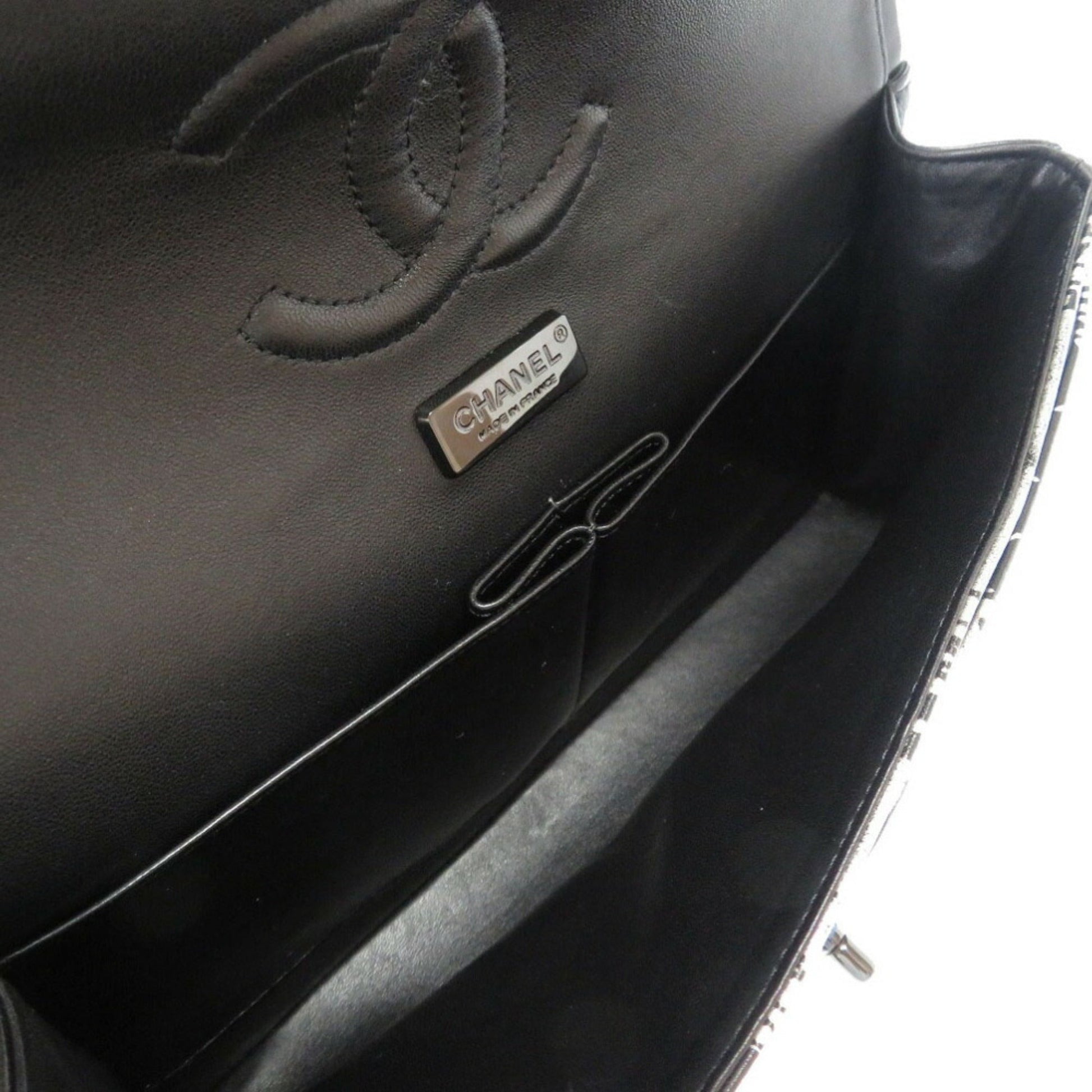 Chanel Matrasse Print Double Flap 2 Leather Silver Black Chain Shoulder Bag Coco Mark CC Lid