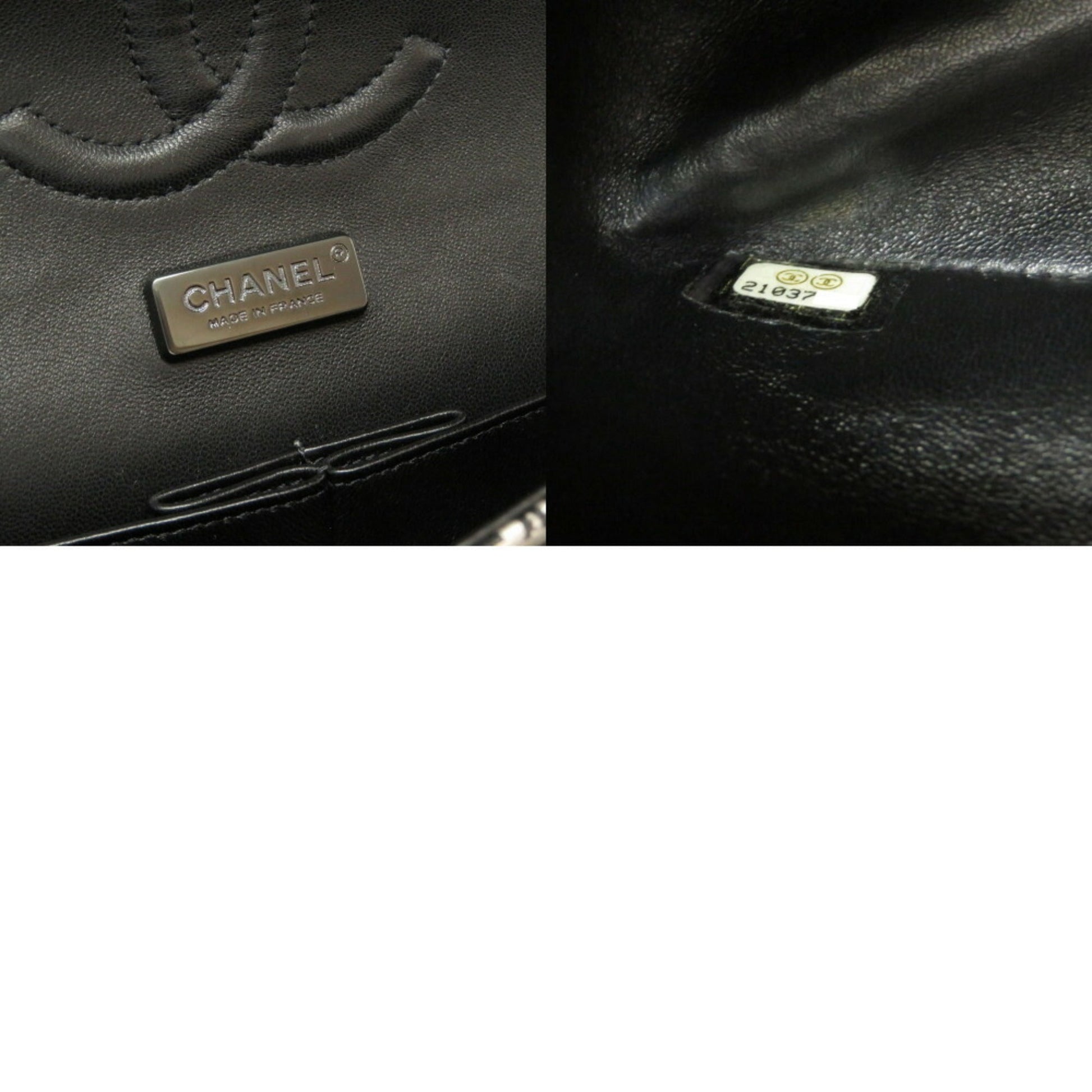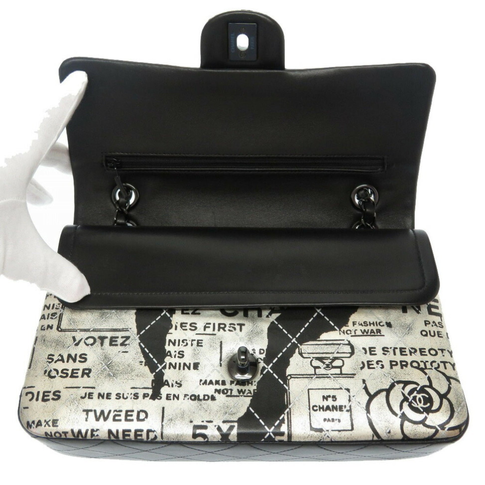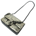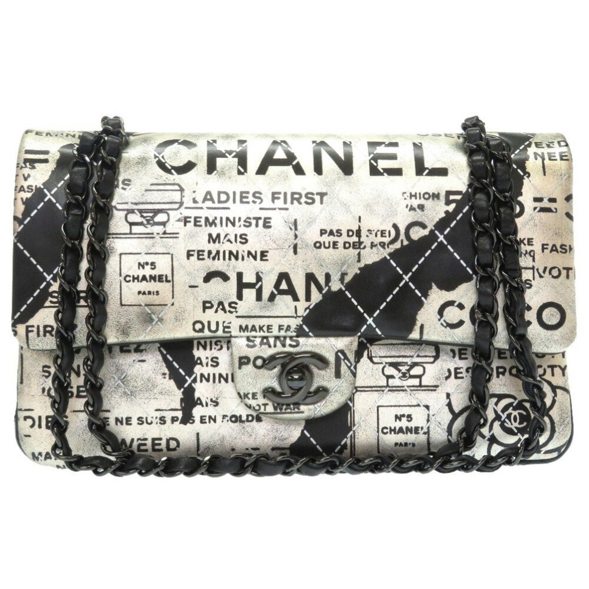 Chanel Matrasse Print Double Flap 2 Leather Silver Black Chain Shoulder Bag Coco Mark CC Lid