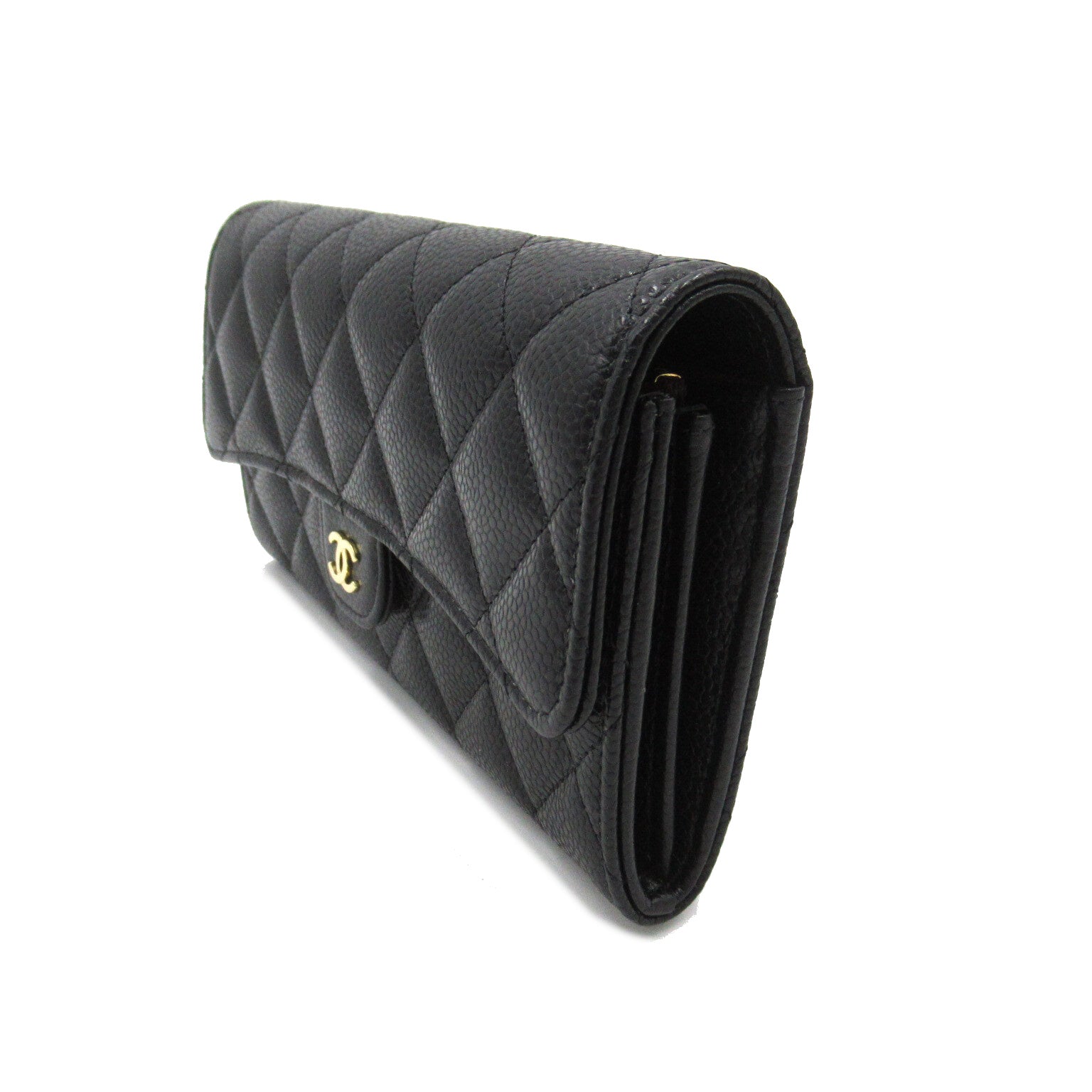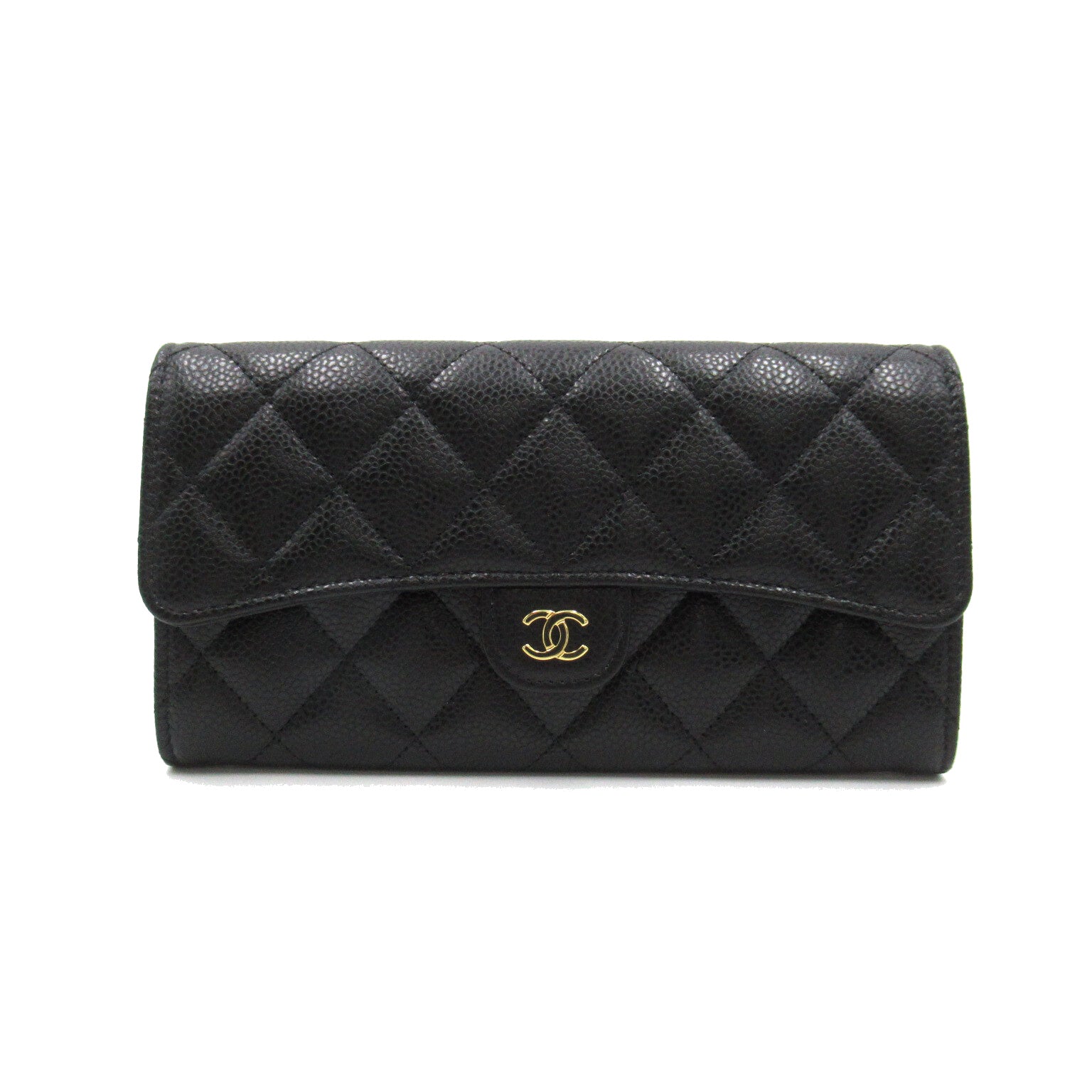 Chanel Zip Long Wallet Double Fold Wallet Caviar S Black Box