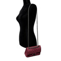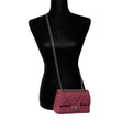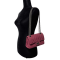 * This shoulder bag is crafted of diamond quilted matte caviar leather in a raspberry.
