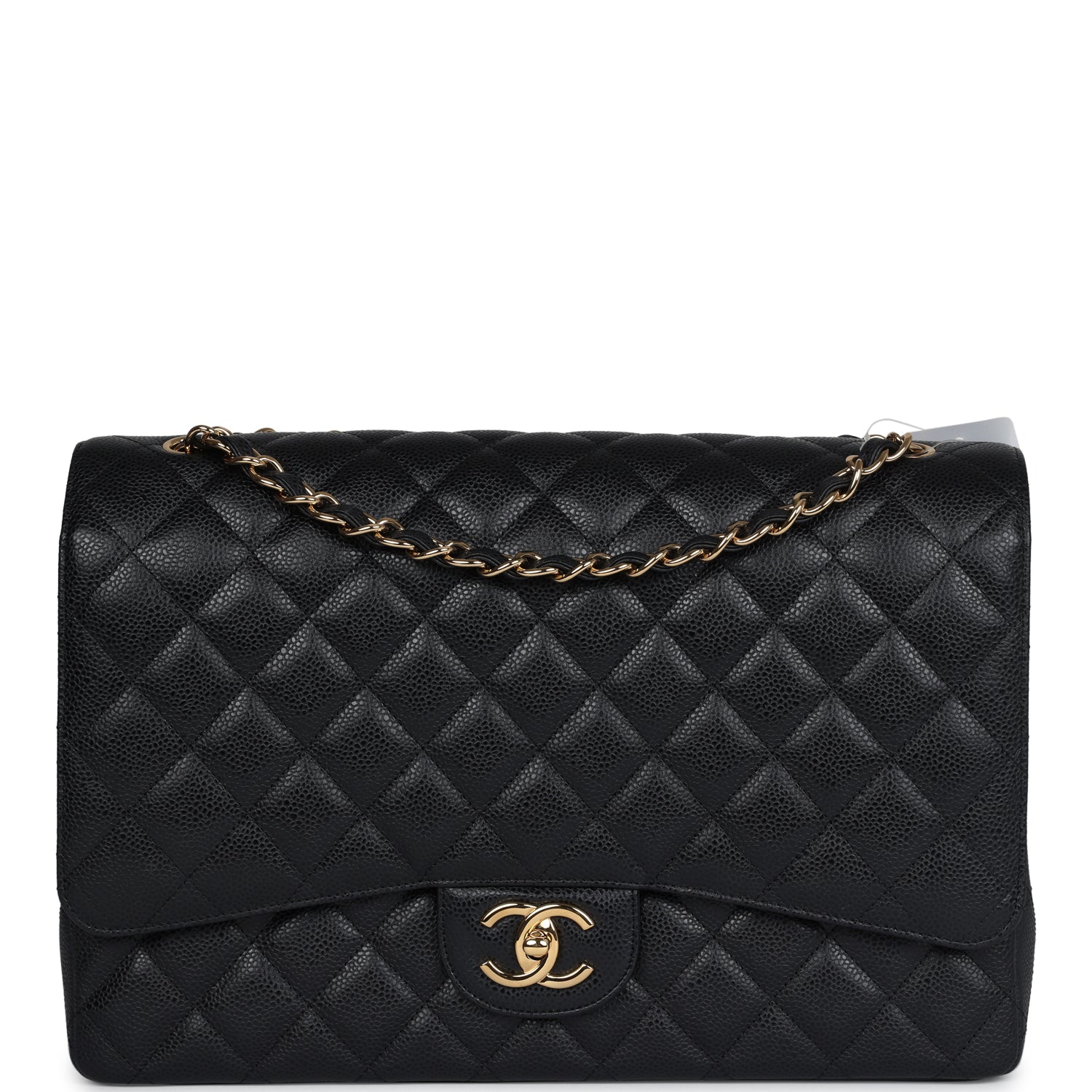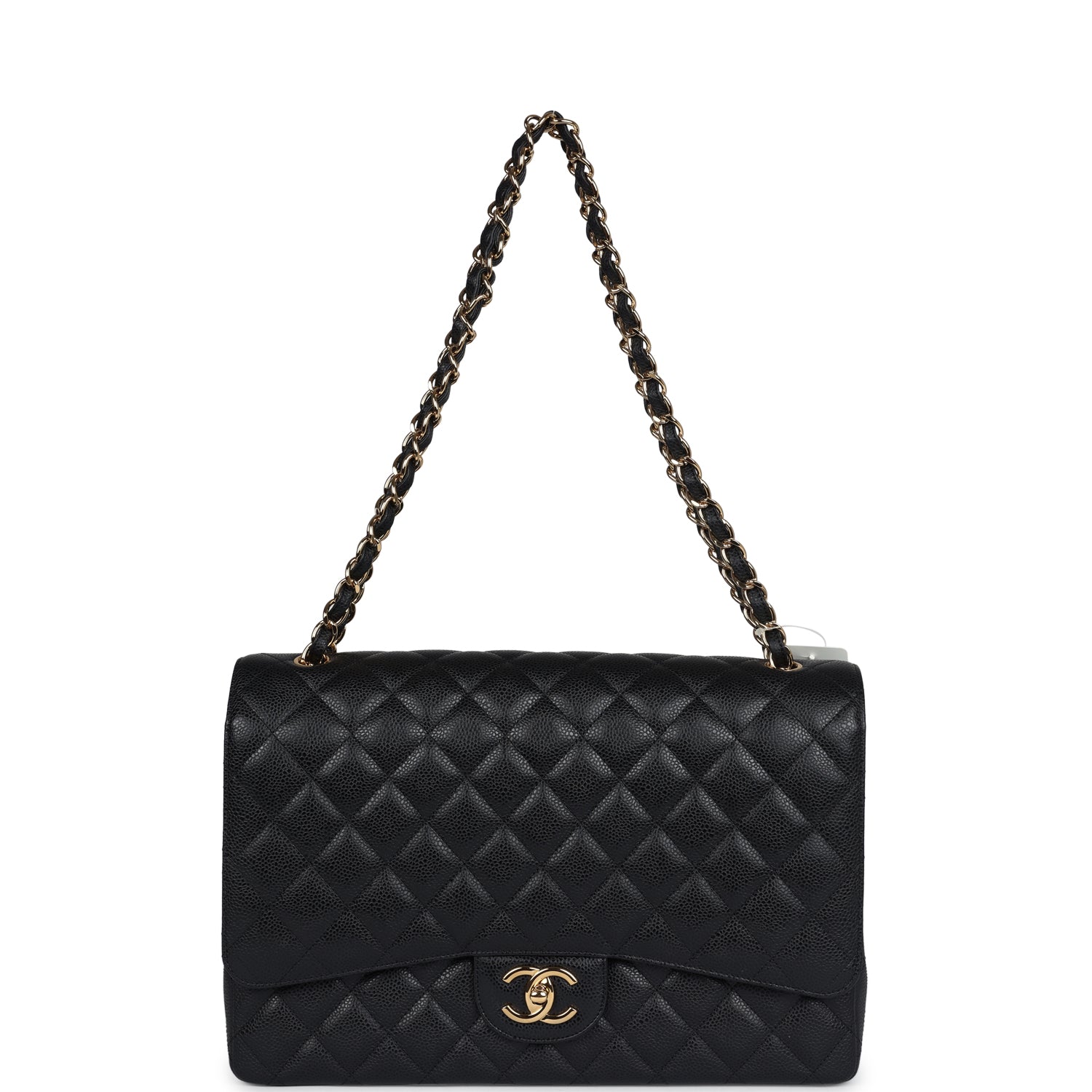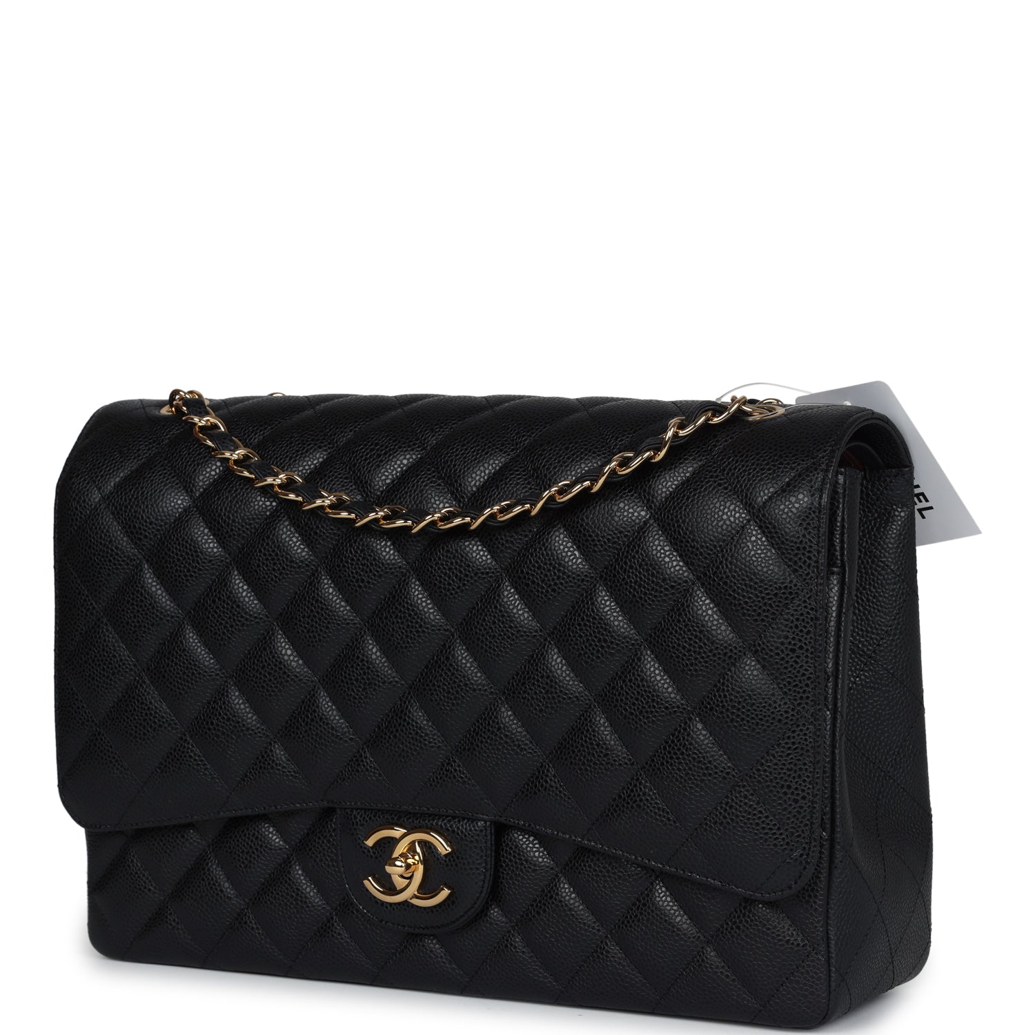 Chanel Maxi Classic Double Flap Bag Black Caviar Gold Hardware