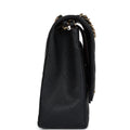 This Maxi Classic Flap bag is in black quilted caviar leather with gold hardware and features a front flap with signature CC turnlock closure, half moon back pocket, and adjustable interwoven gold tone chain link and black leather shoulder strap
