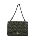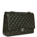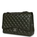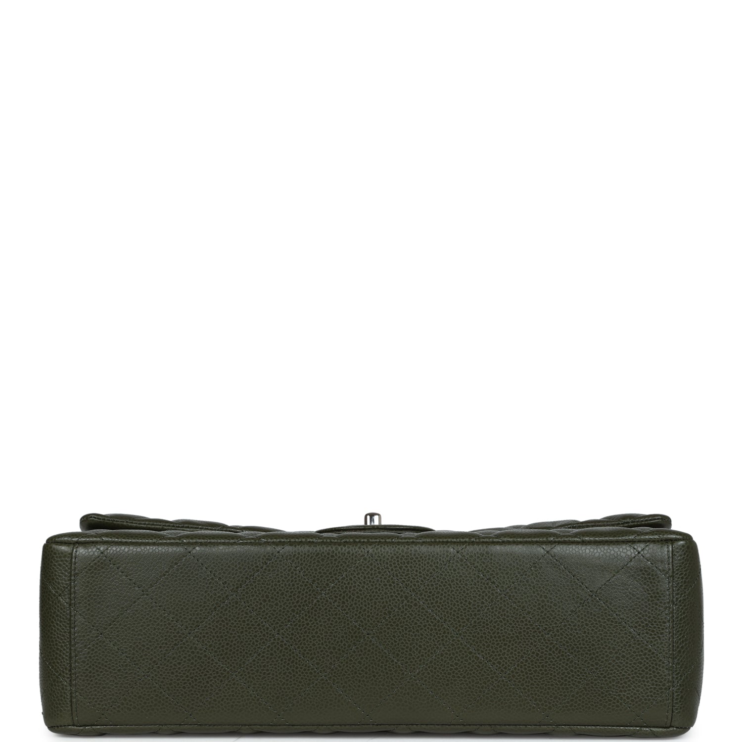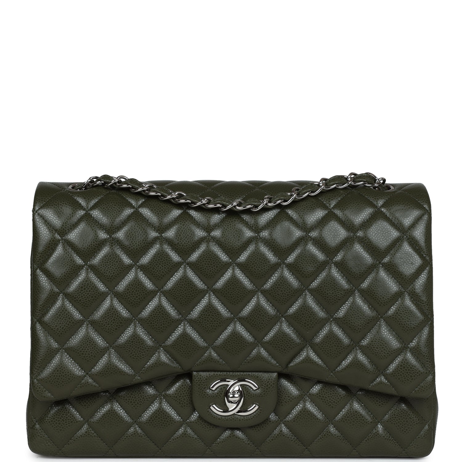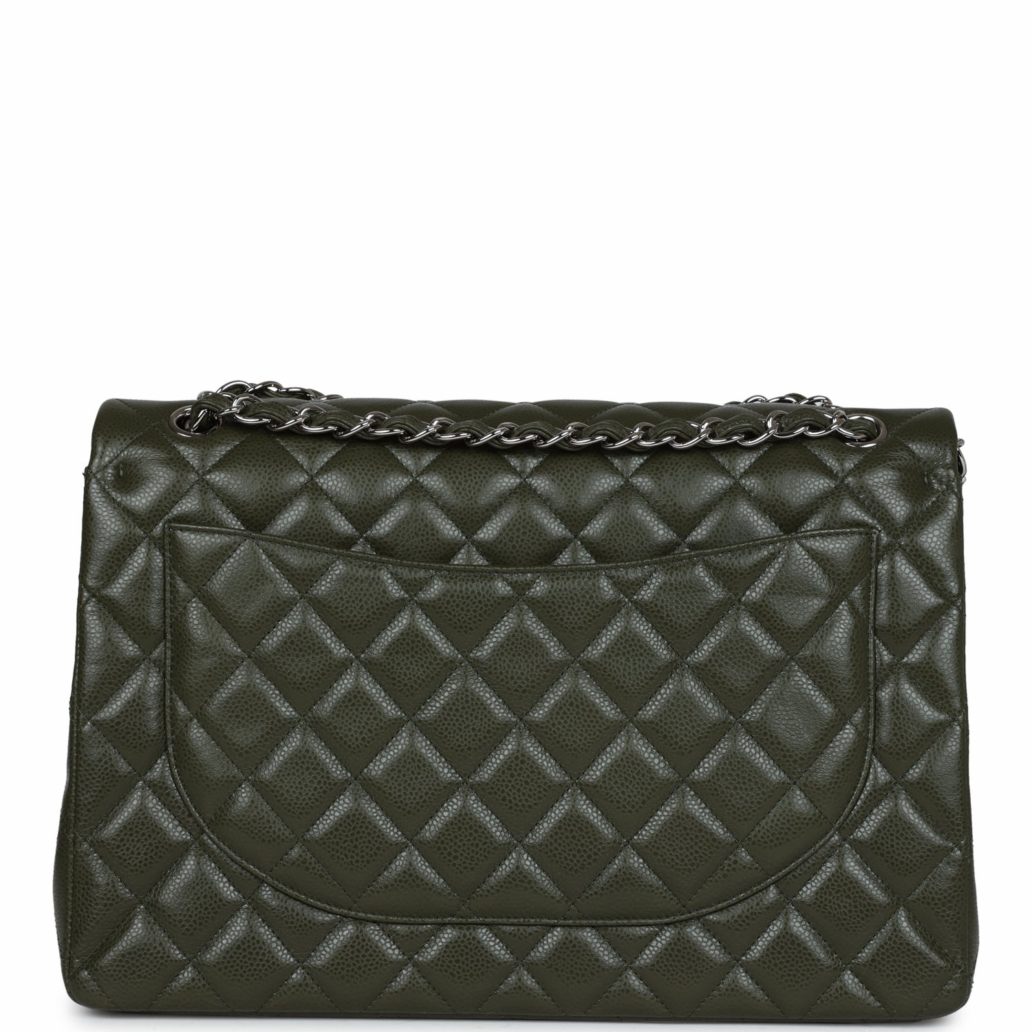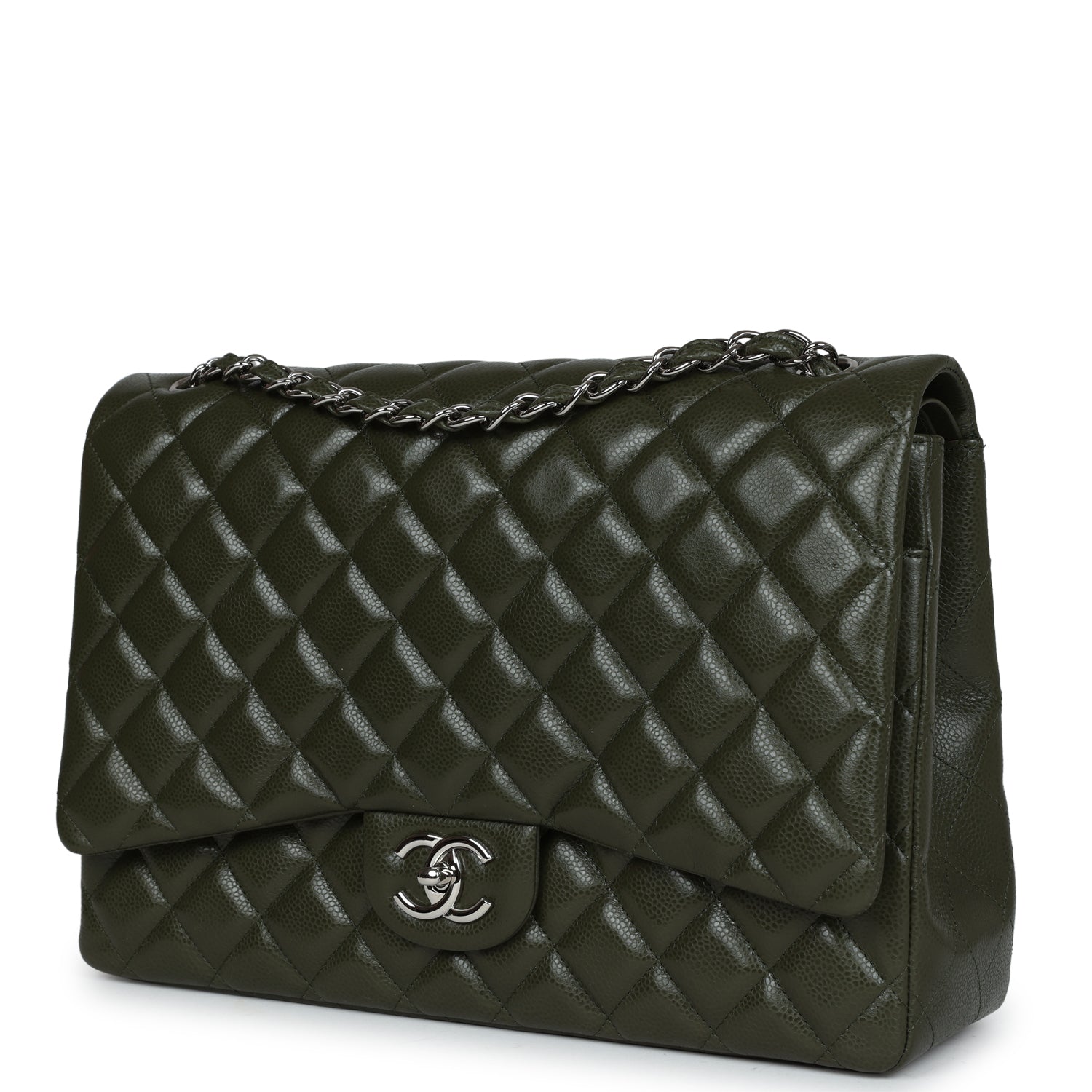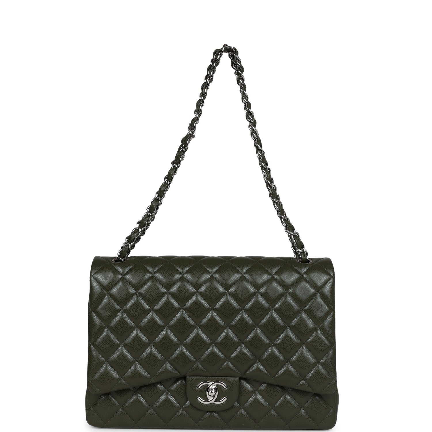 Chanel Maxi Classic Double Flap Bag Olive Green Caviar Silver Hardware