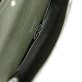 This Maxi Classic Double Flap Bag is in olive green caviar leather with silver hardware and features a front flap with signature CC turnlock closure, half moon back pocket, and adjustable interwoven silver tone chain link and olive green leather shoulder strap.