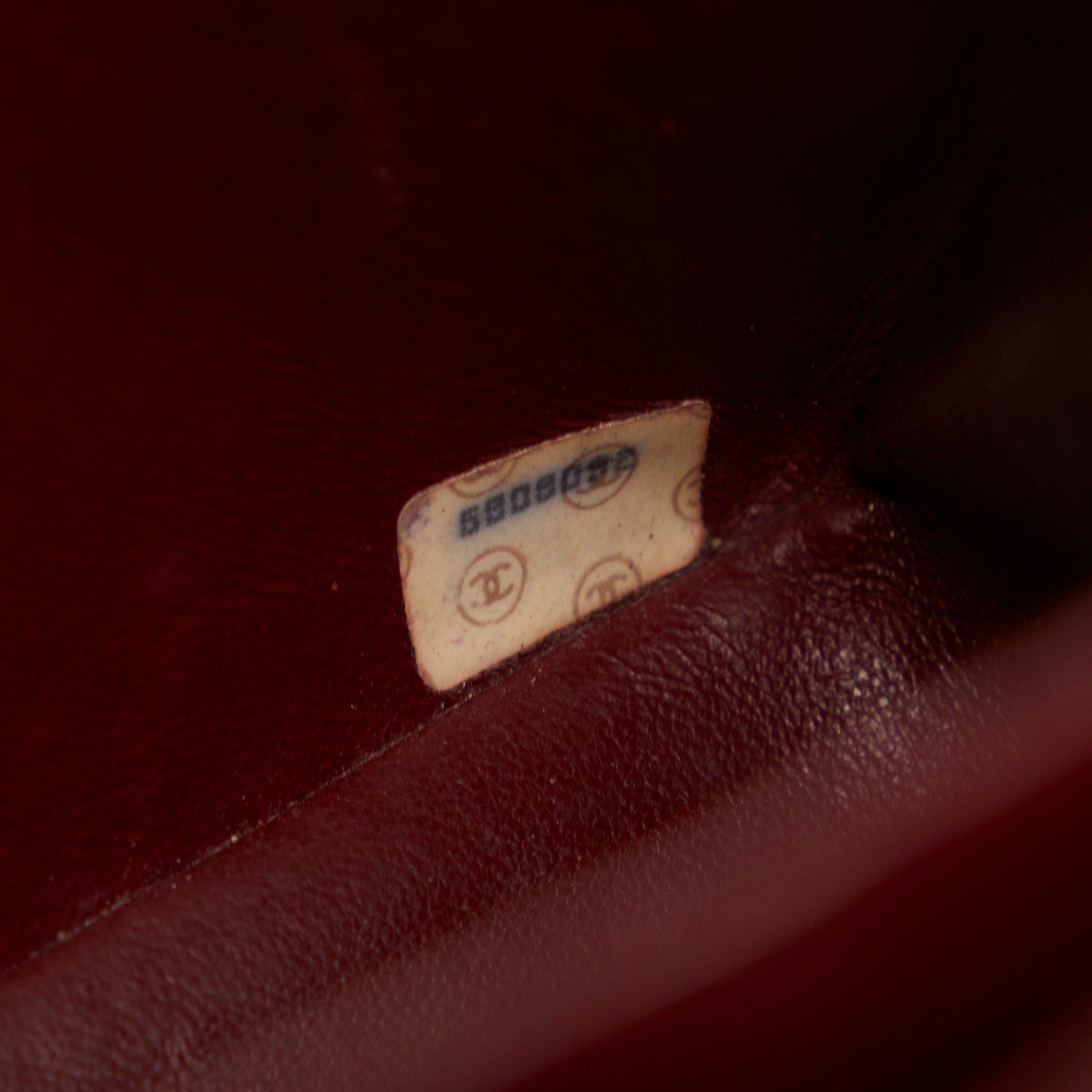 This flap Bag features a lambskin leather body, leather woven chain straps, a front flap with an oversize CC turn lock closure, a back exterior slip pocket, and interior zip and slip pockets.