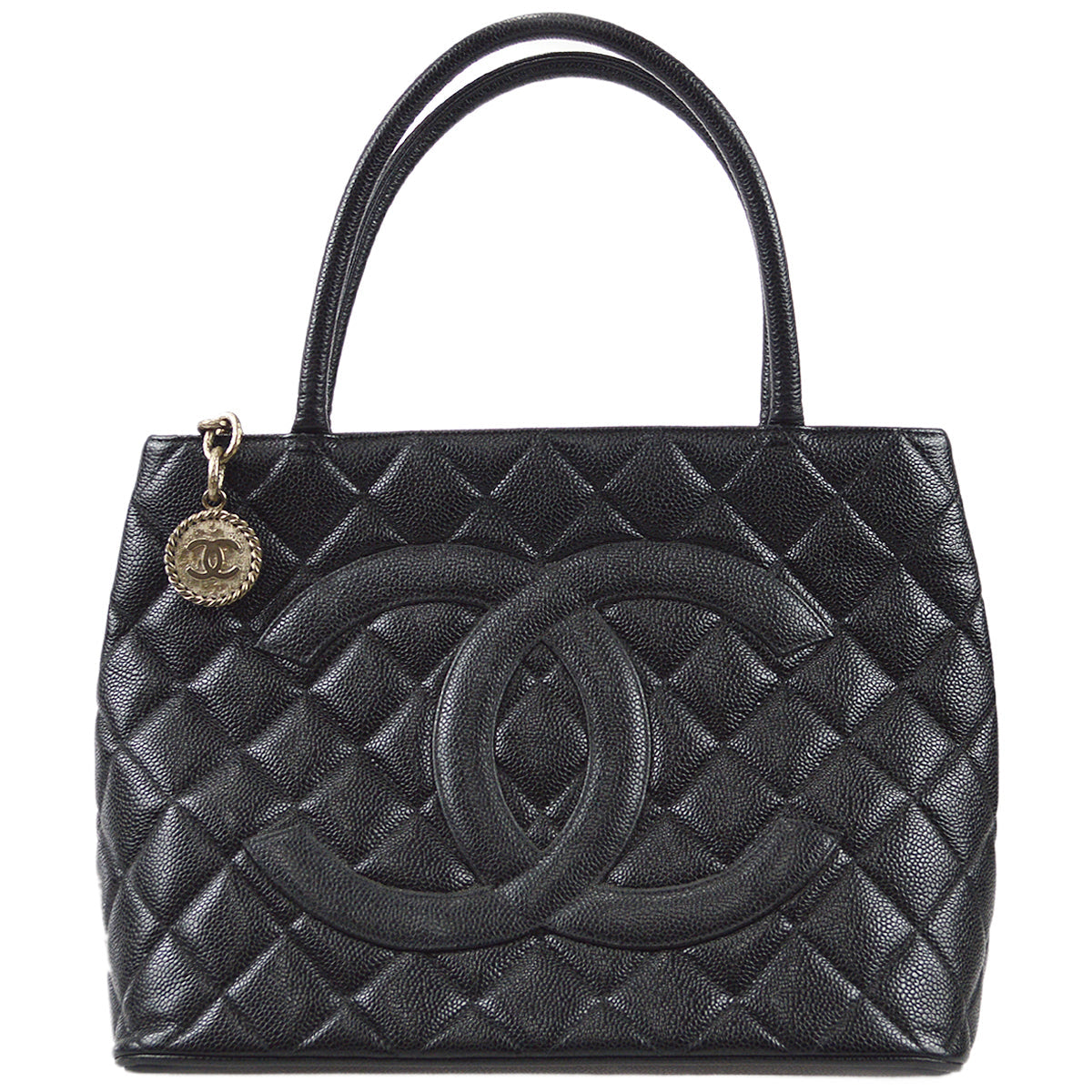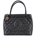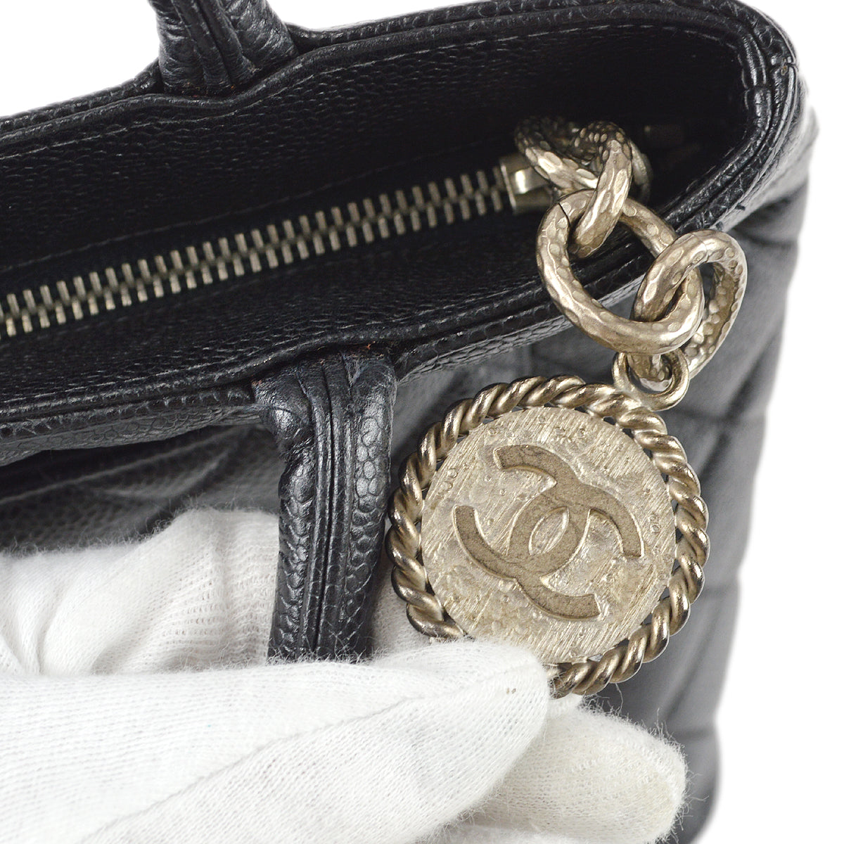 Chanel Medallion Quilted Tote HandBag Black Caviar 78536