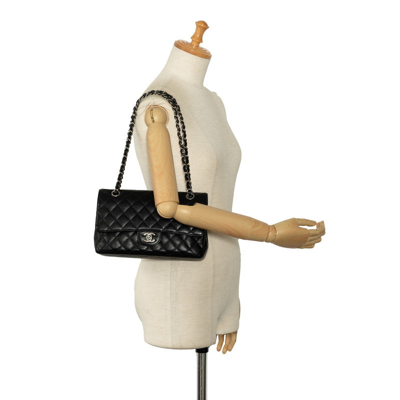 Chanel Medium Caviar Classic Double Flap Bag Leather Shoulder Bag in Good condition