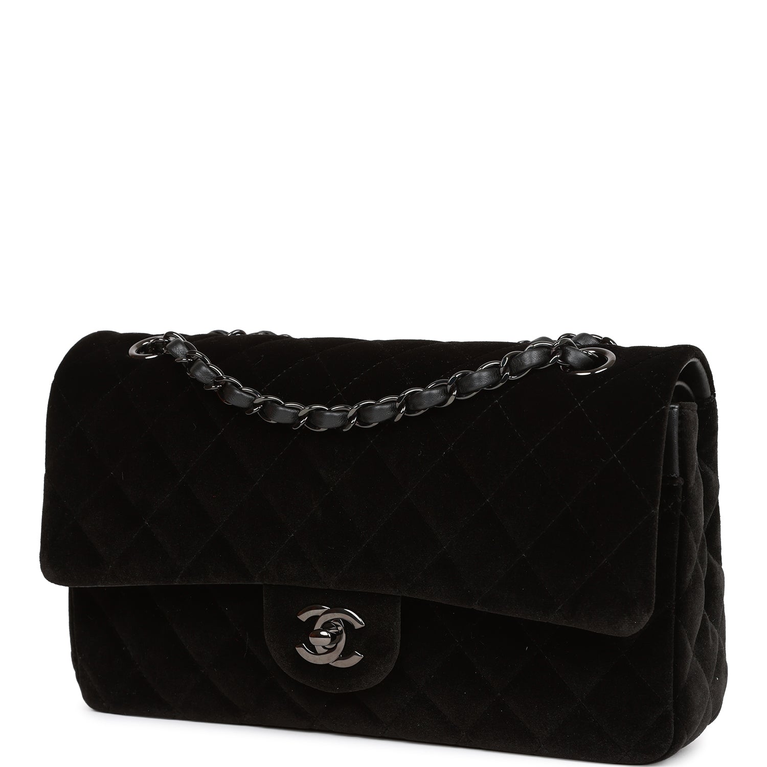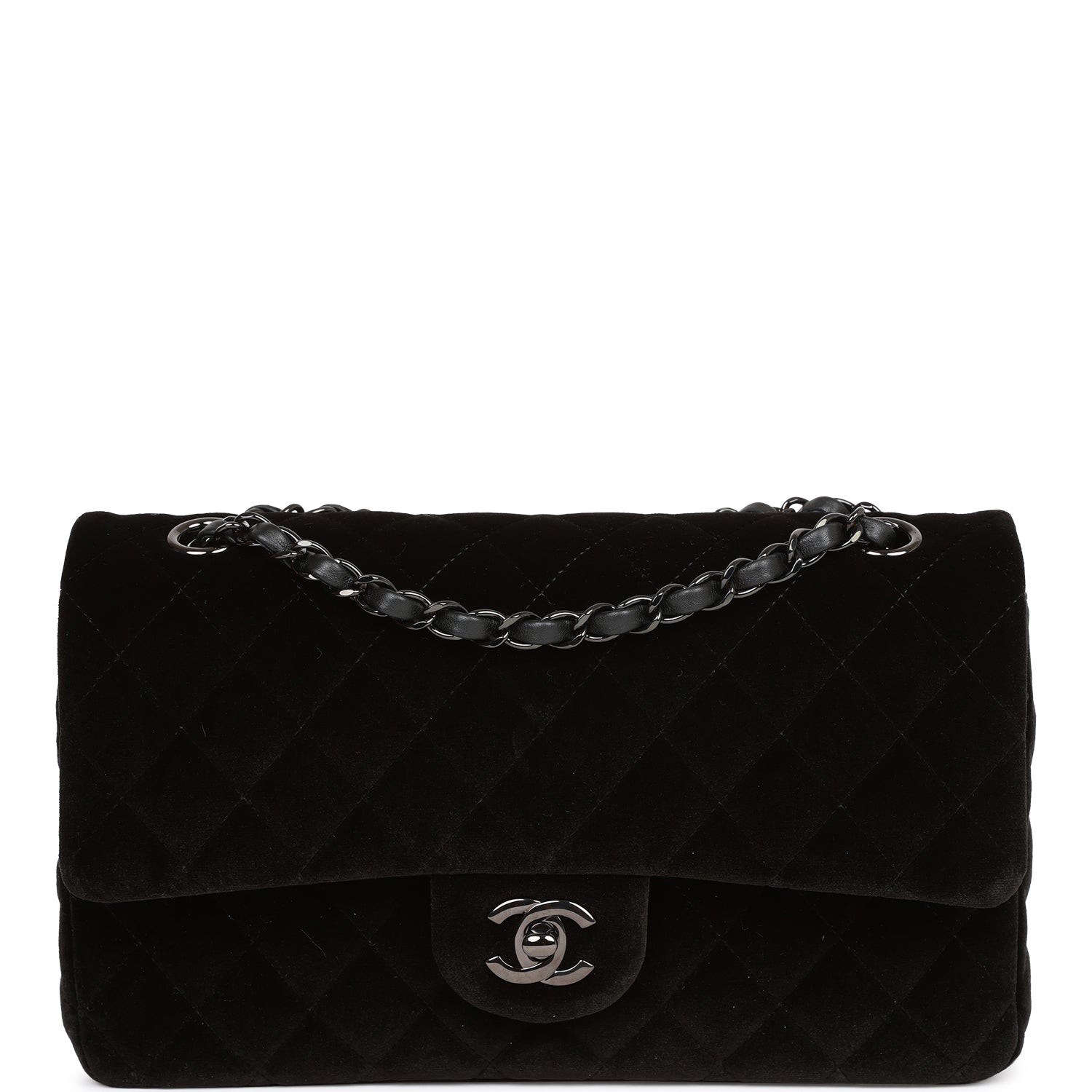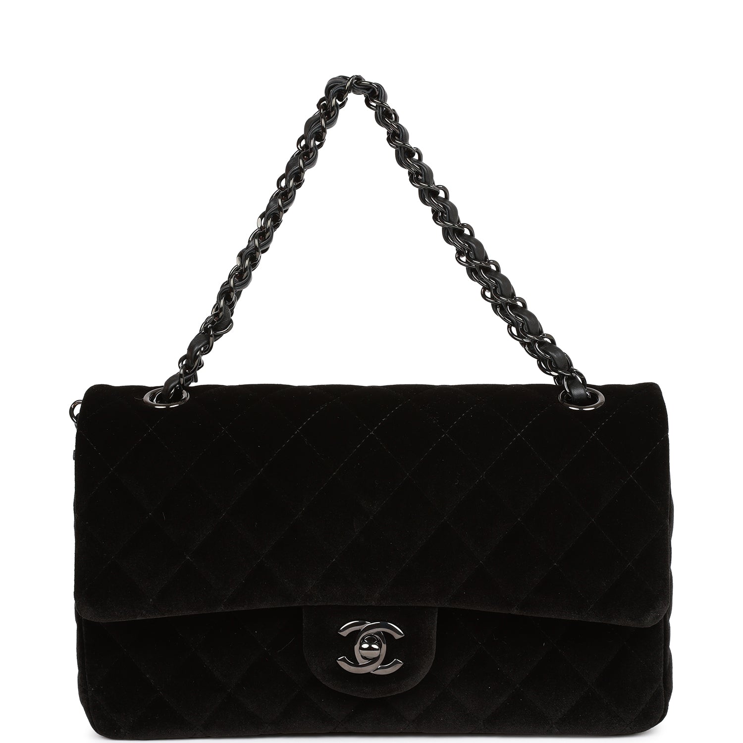 Chanel Medium Classic Double Flap Bag Black Velvet Ruthenium Hardware