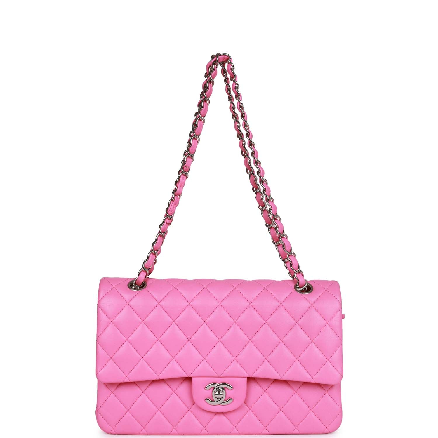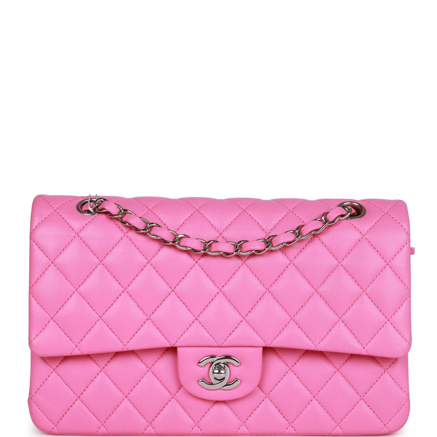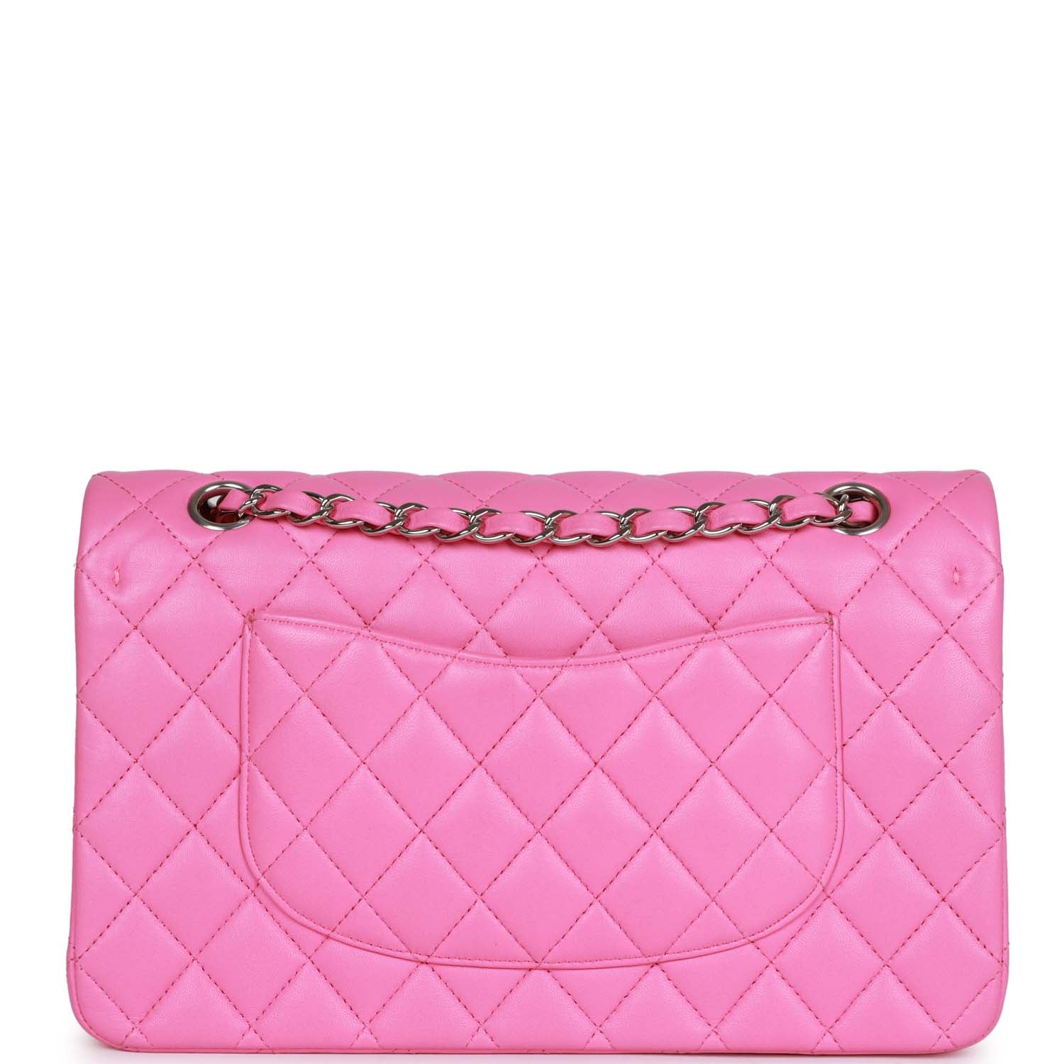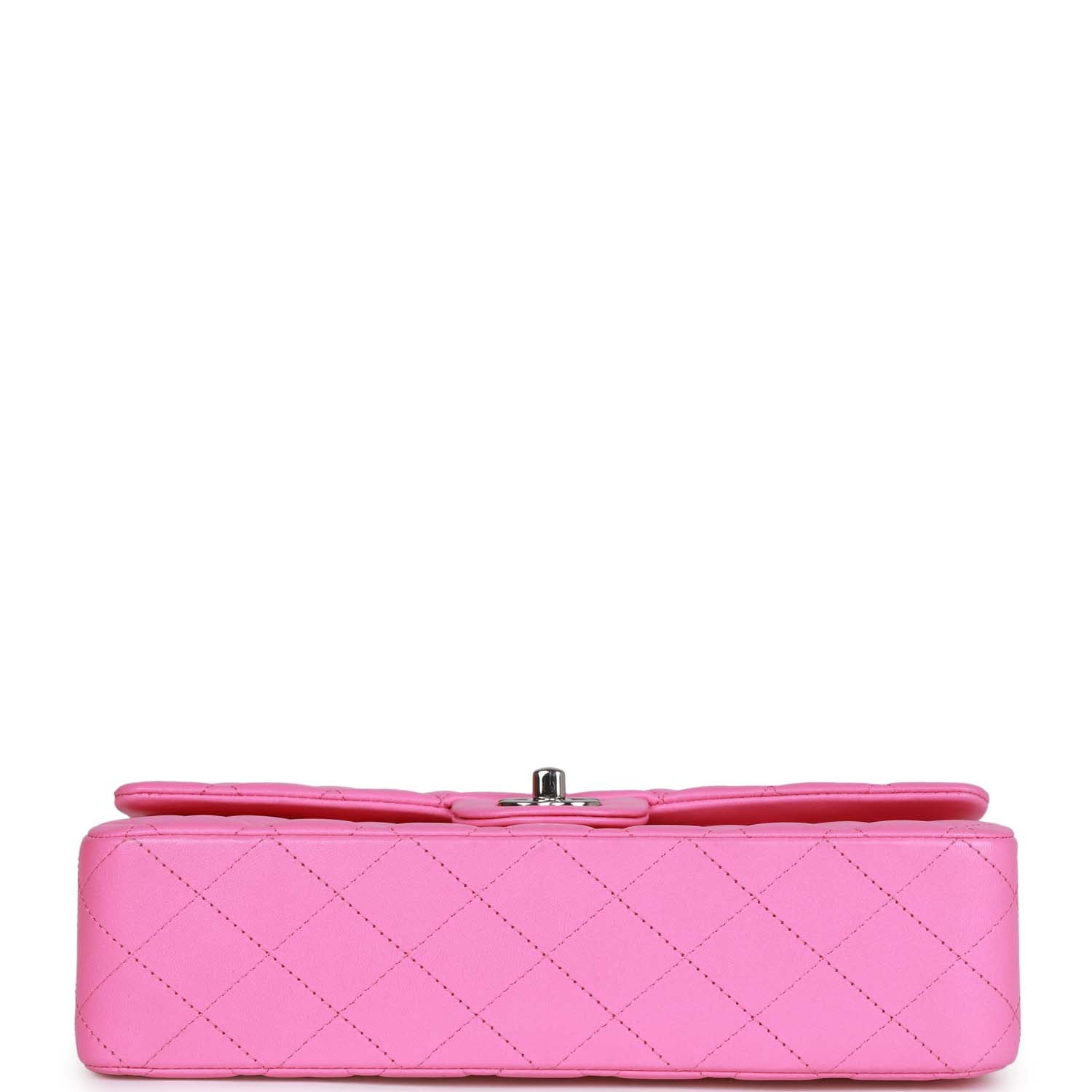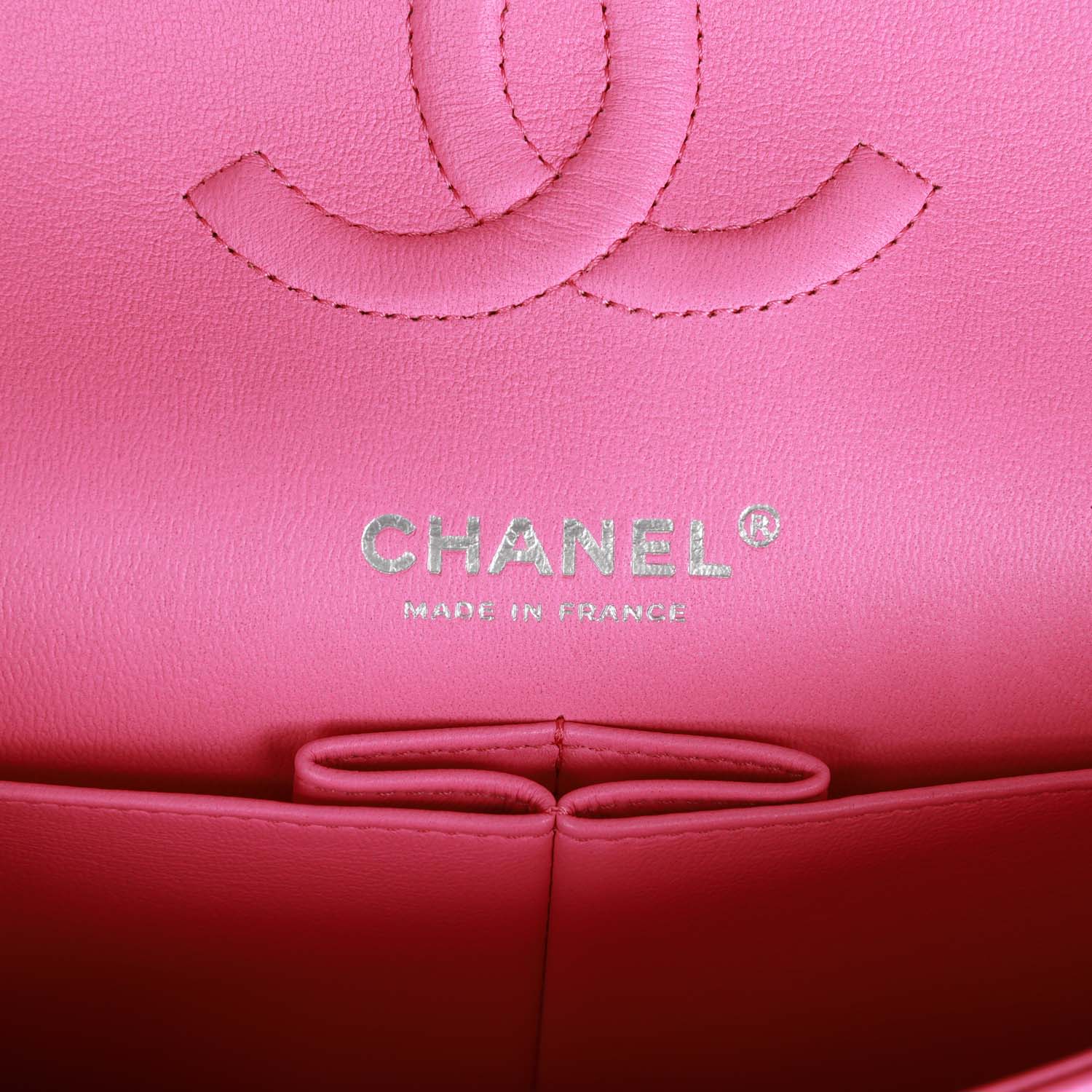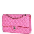 Chanel Medium Classic Double Flap Bag Neon Pink Lambskin Silver Hardware