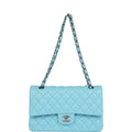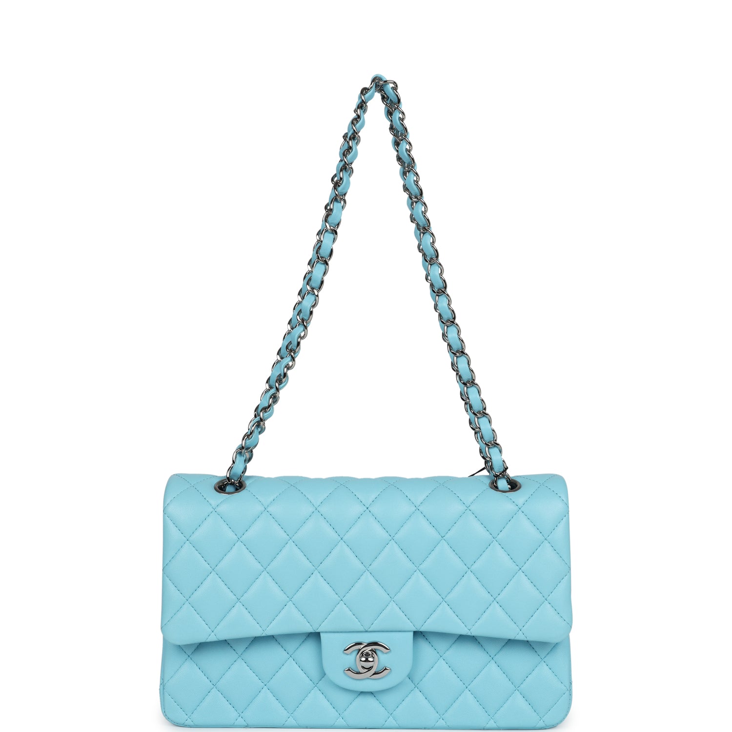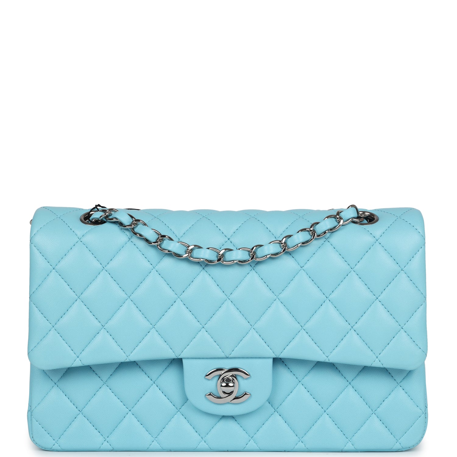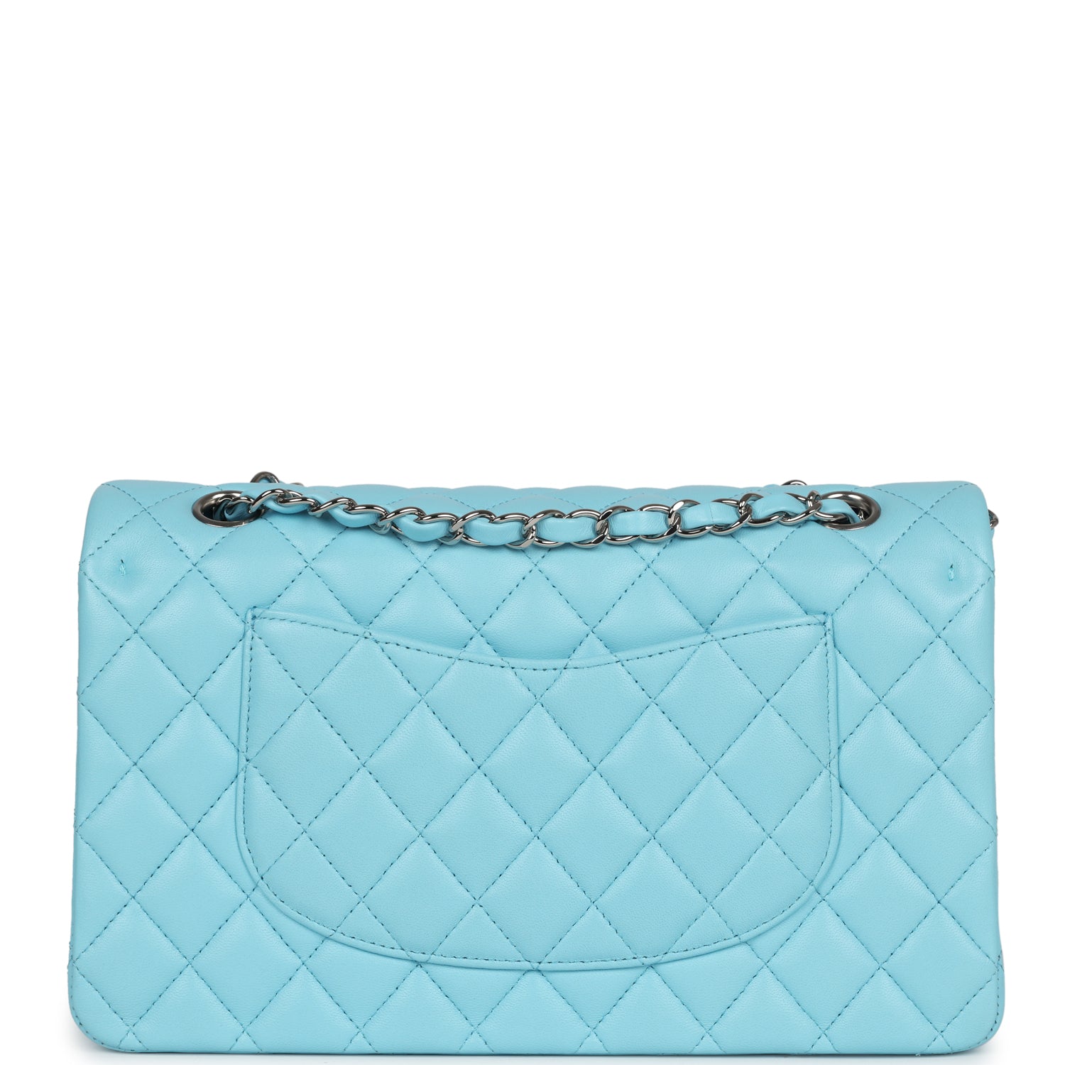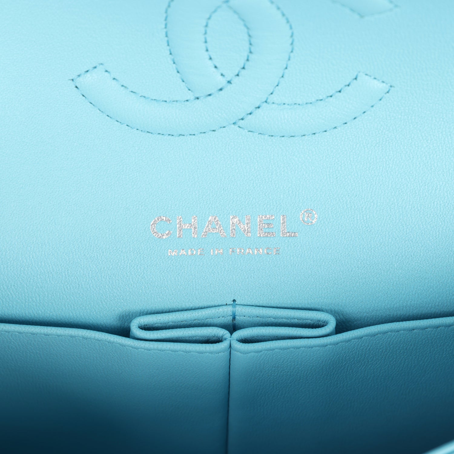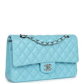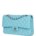 Chanel Medium Classic Double Flap Bag Light Blue Lambskin Silver Hardware