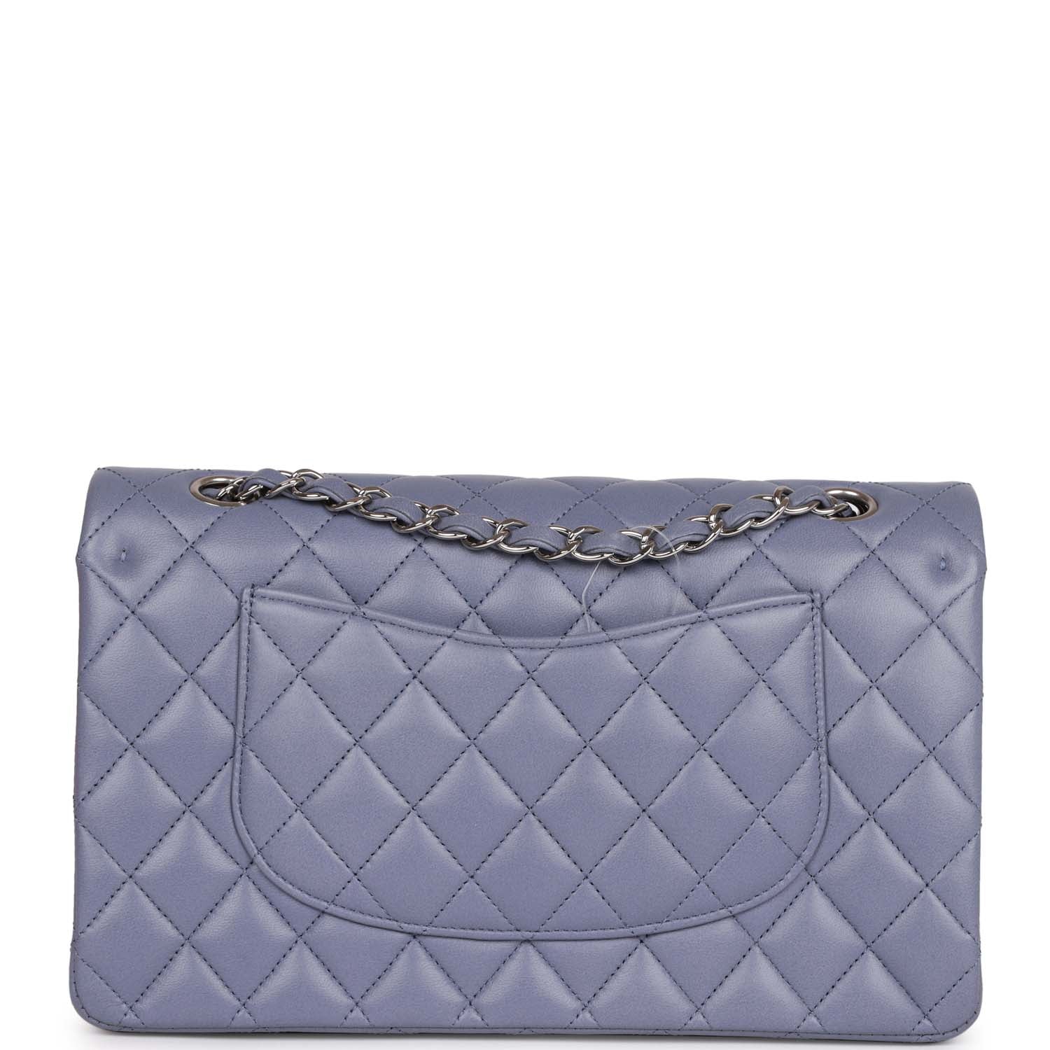 Chanel Medium Classic Double Flap Bag Purple Lambskin Silver Hardware