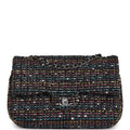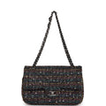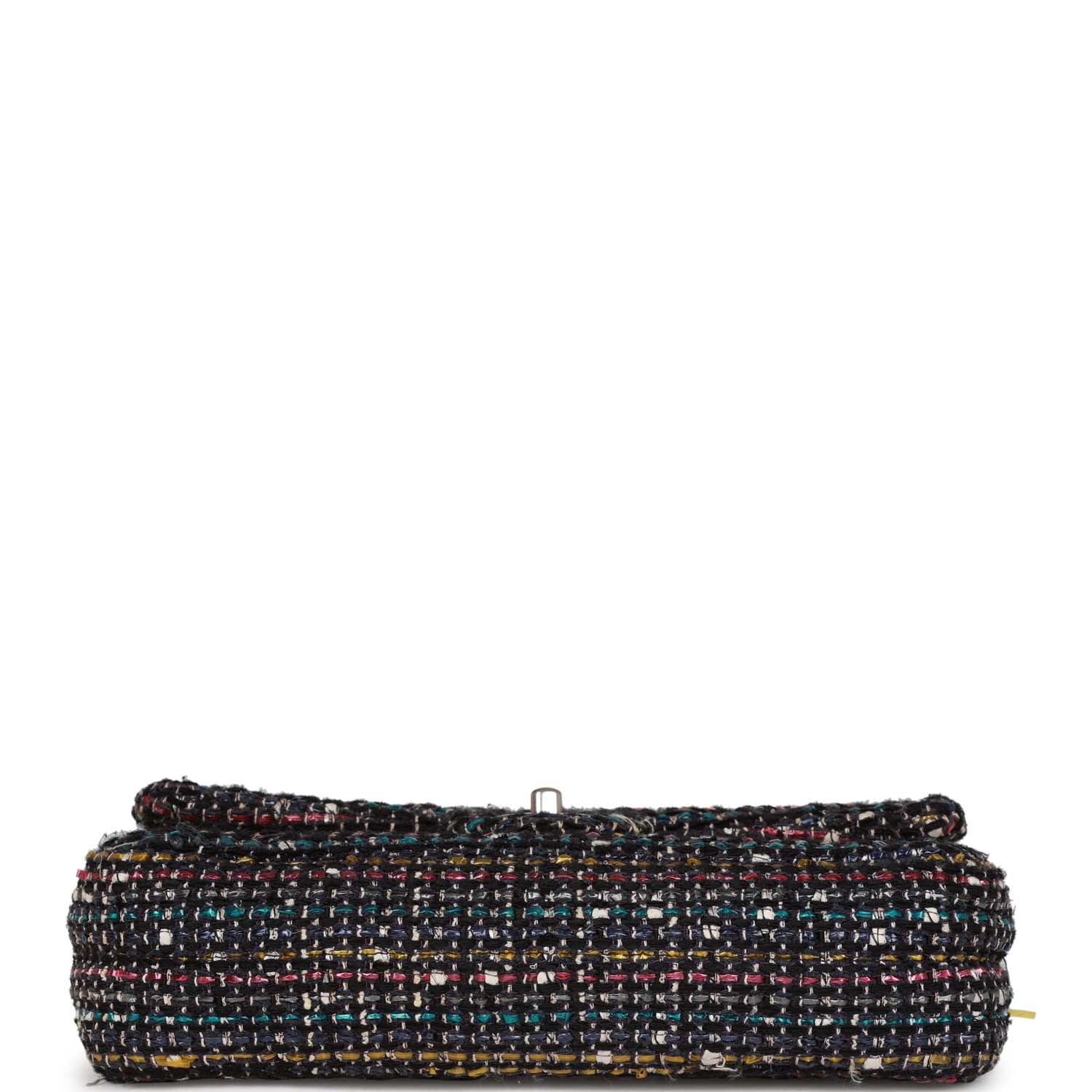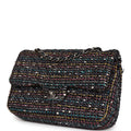 Chanel Medium Classic Double Flap Bag White and Black Tweed Boucle Silver Hardware