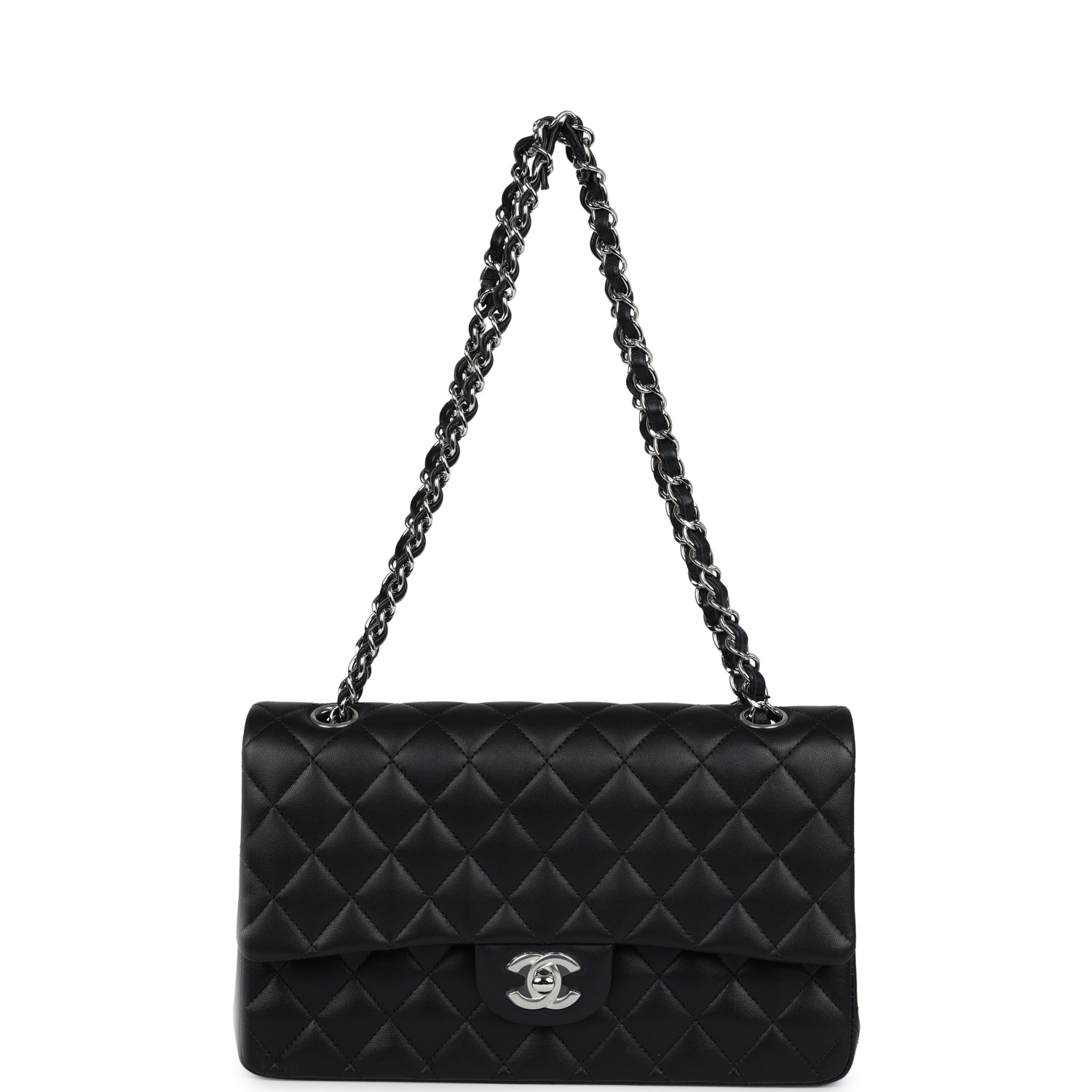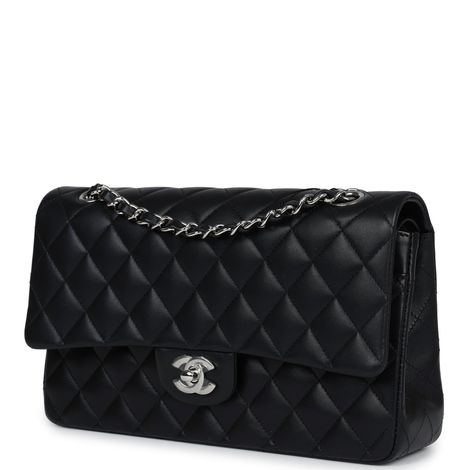 Chanel Medium Classic Double Flap Black Lambskin Silver Hardware