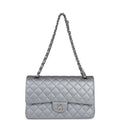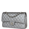 Chanel Medium Classic Double Flap Silver Caviar Silver Hardware