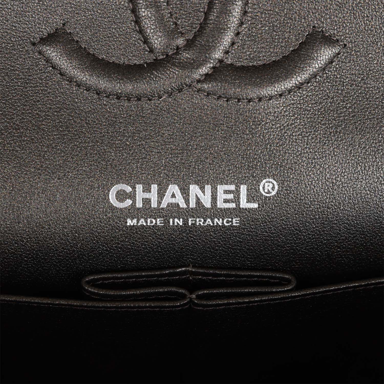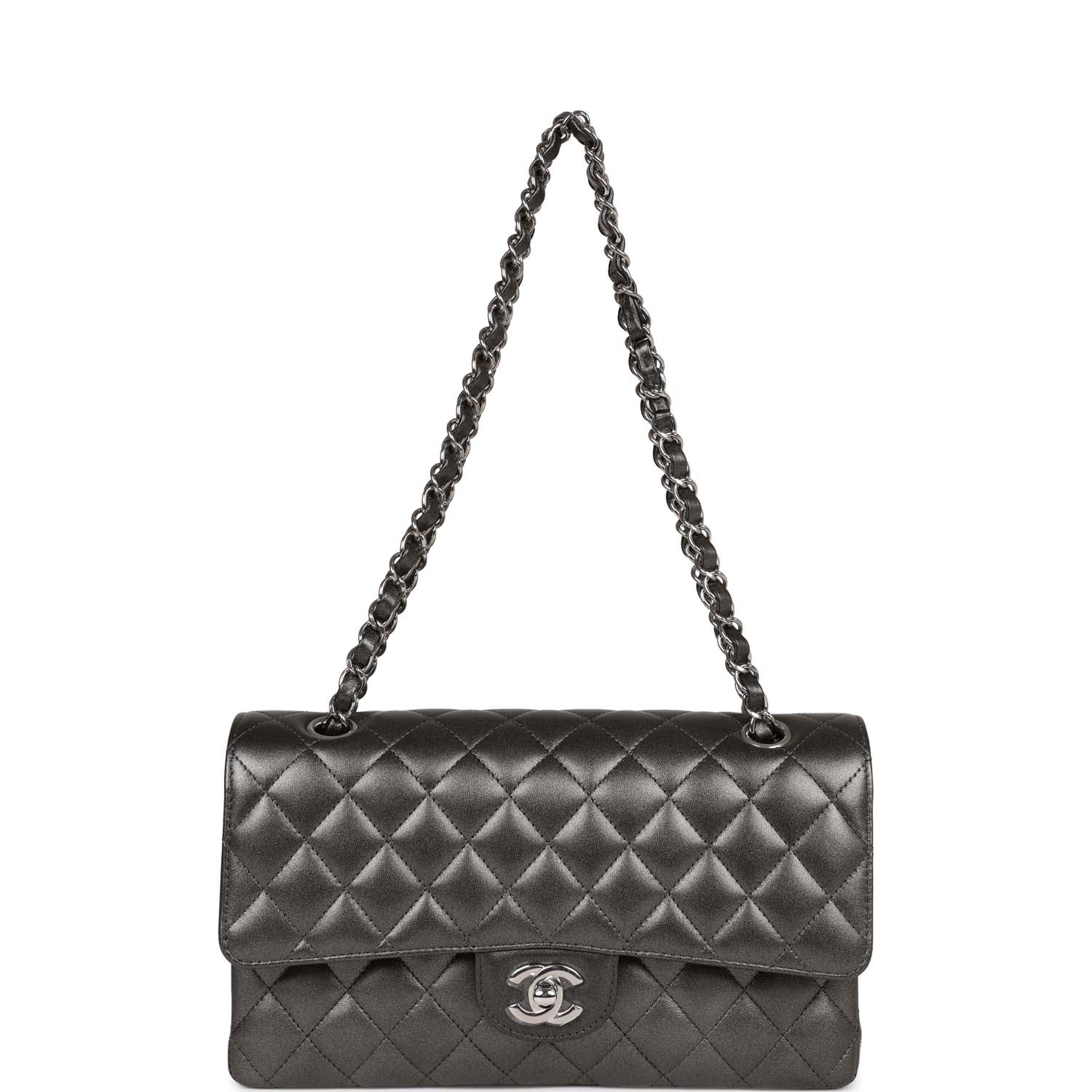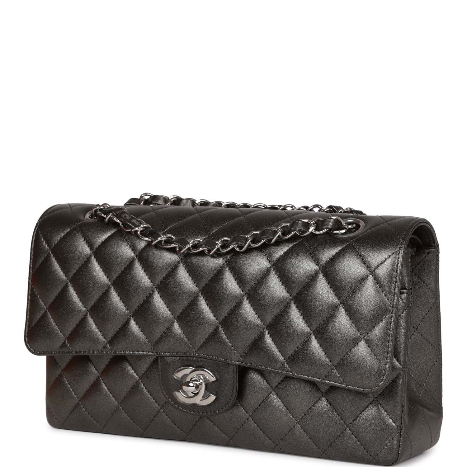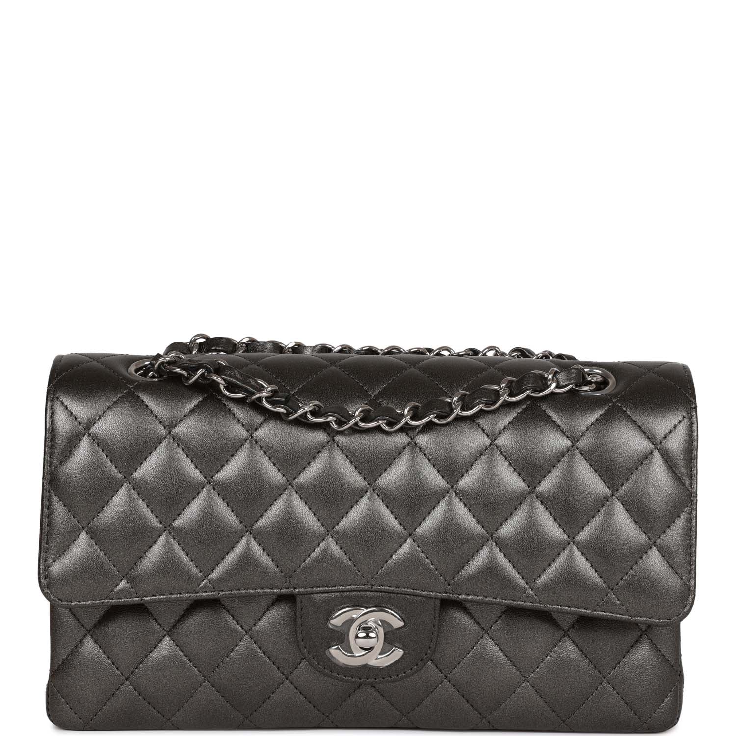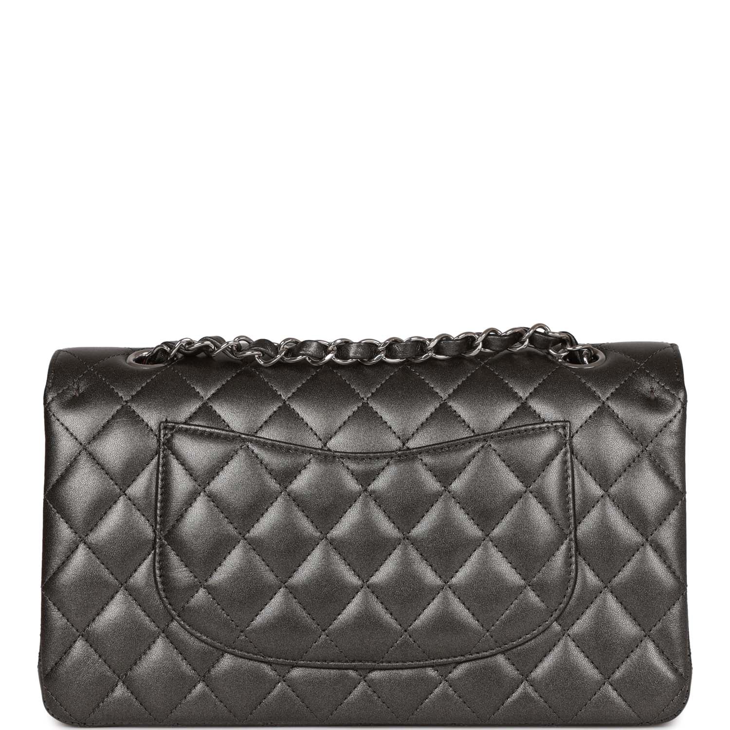 Chanel Medium Classic Double Flap Bag Metallic Grey Lambskin Silver Hardware