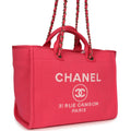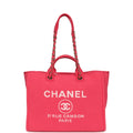 Chanel Medium Deauville Shopping Tote Hot Pink Canvas Light Gold Hardware