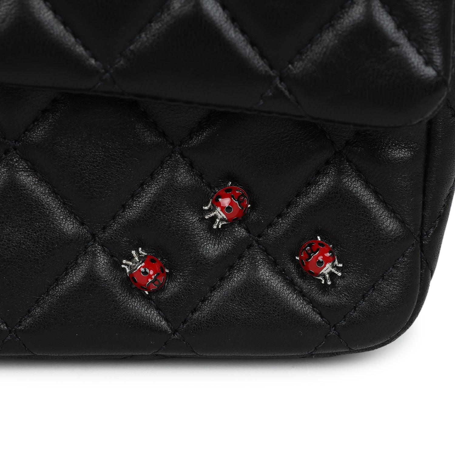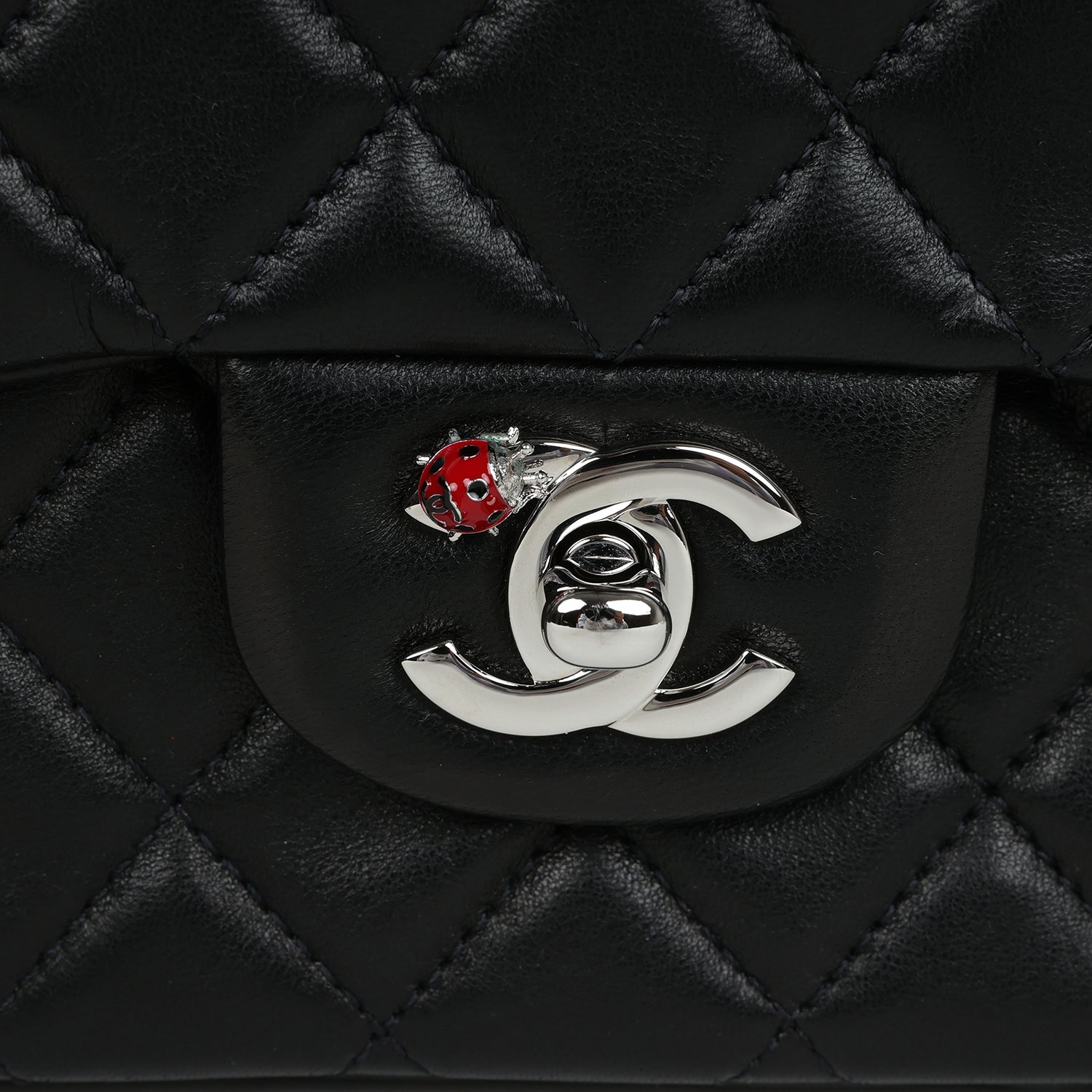 Chanel Medium Lady Bug Single Flap Bag Black Lambskin Silver Hardware