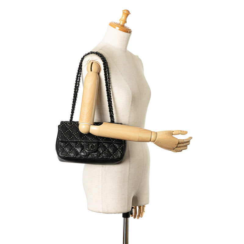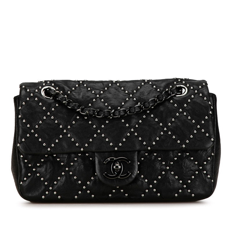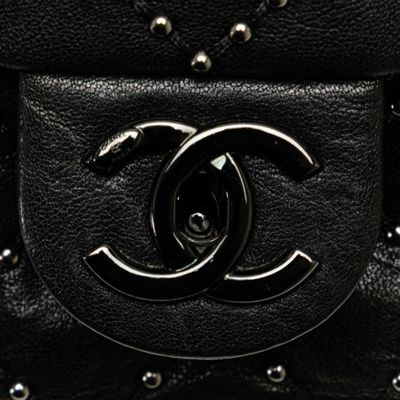 Chanel Medium Quilted Leather Studded Flap Bag Leather Shoulder Bag in Good condition
