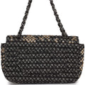Chanel Medium Single Flap Black and White Tweed With Crystals Silver Hardware