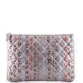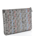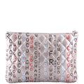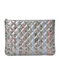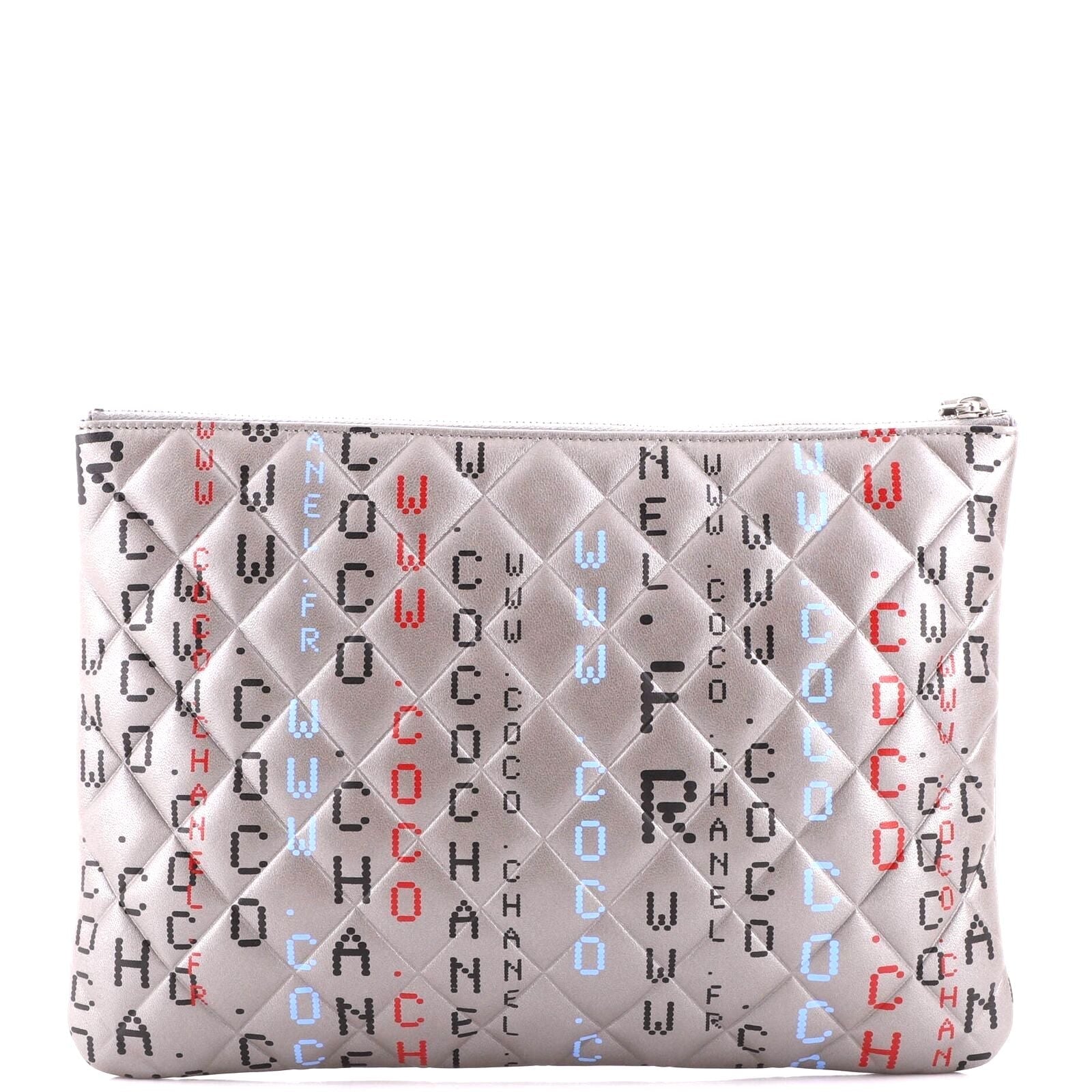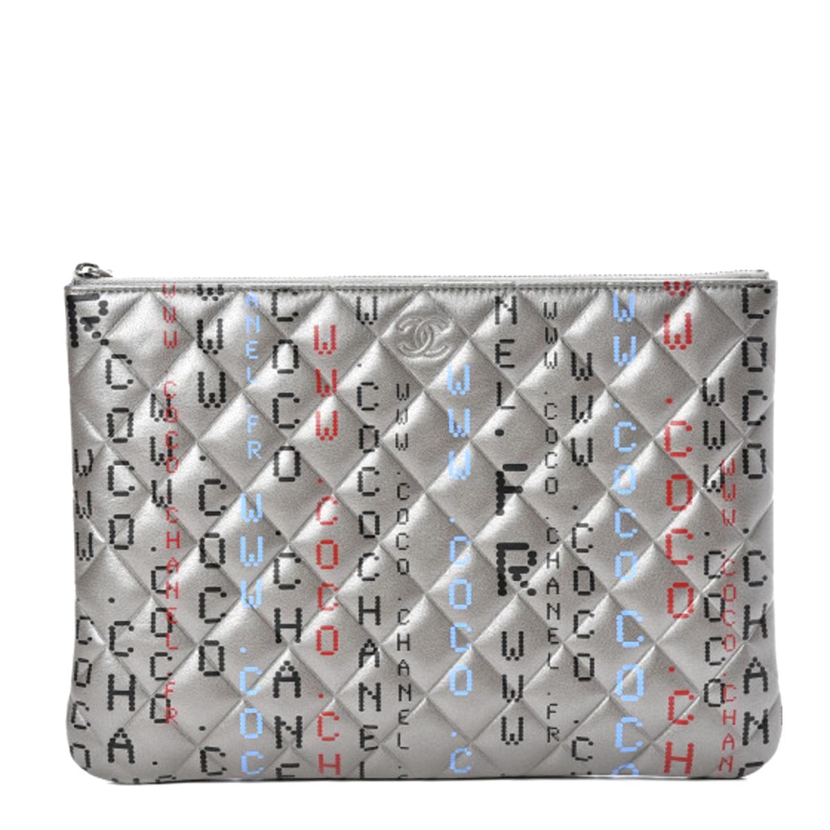 CHANEL METALLIC SILVER QUILTED LAMBSKIN PRINTED DATA CENTER O CLUTCH