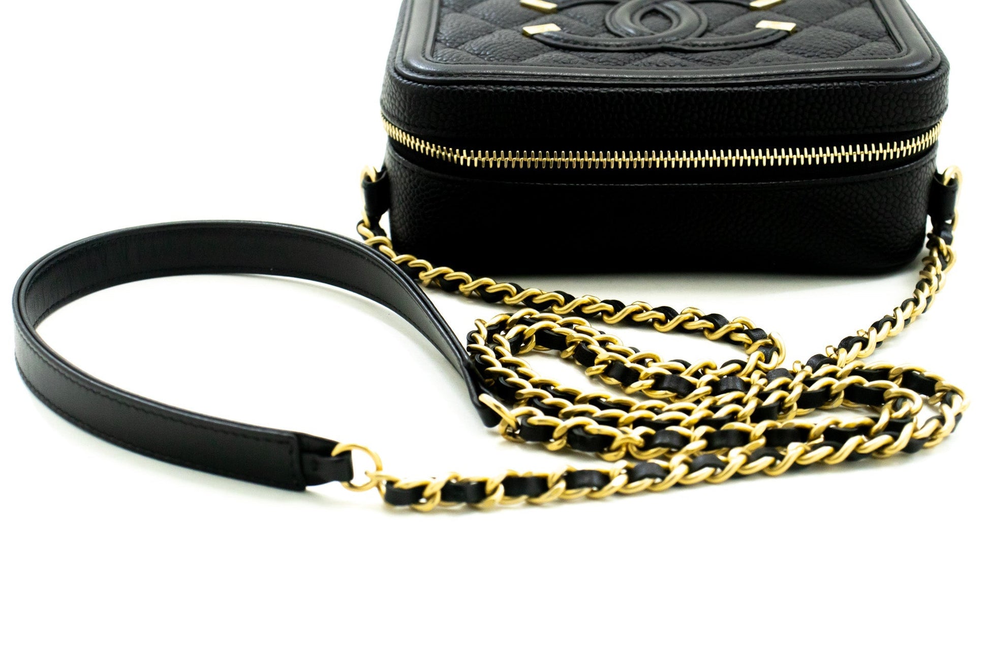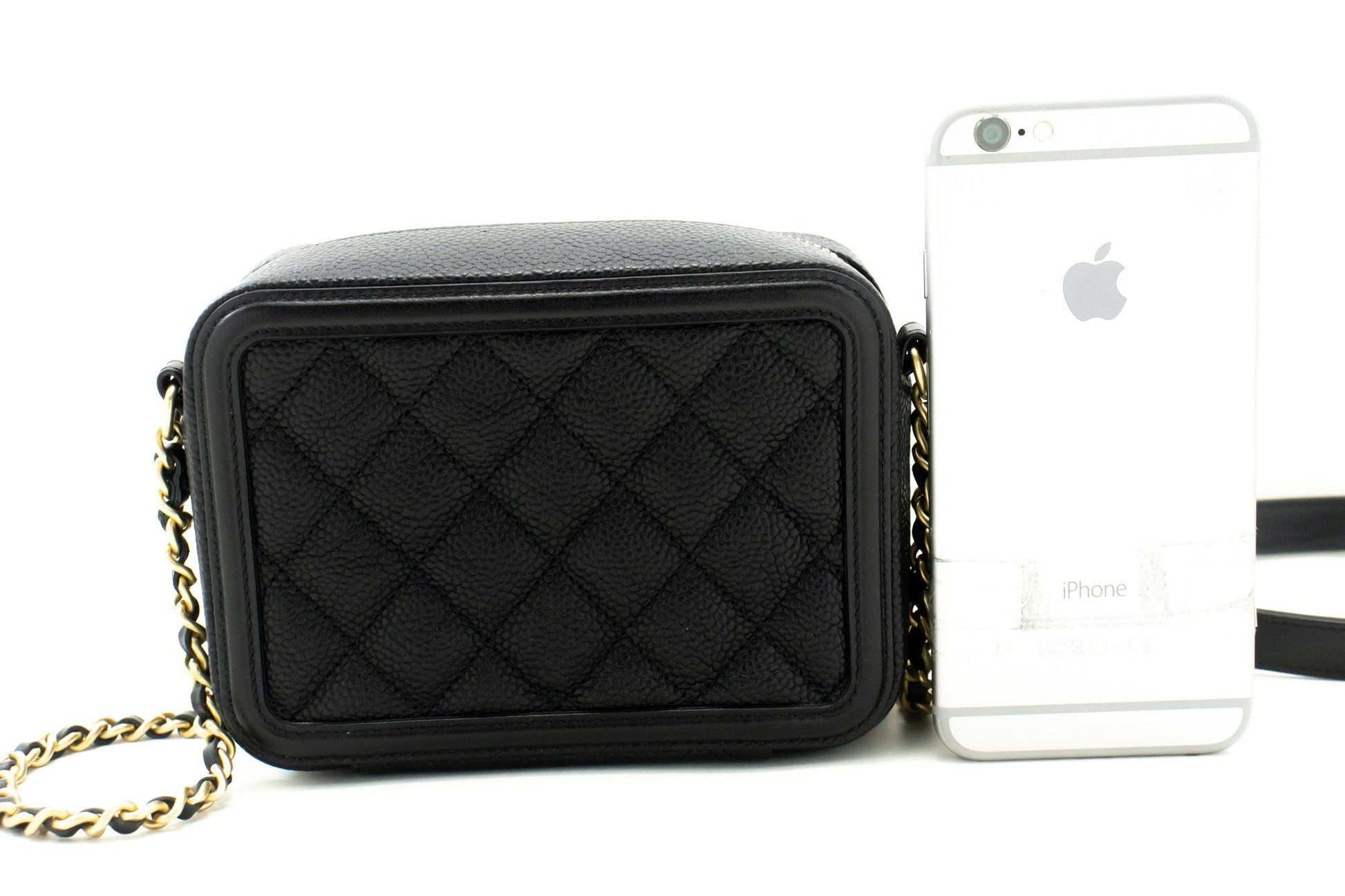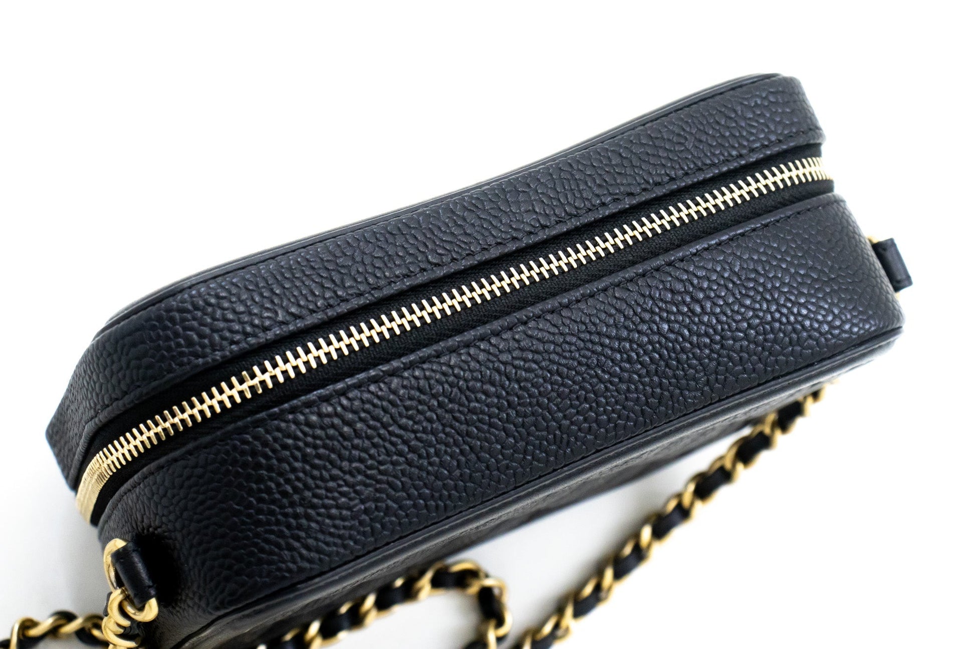 An CHANEL Micro Caviar Grained Calfskin Chain Shoulder Bag Black Zip.
