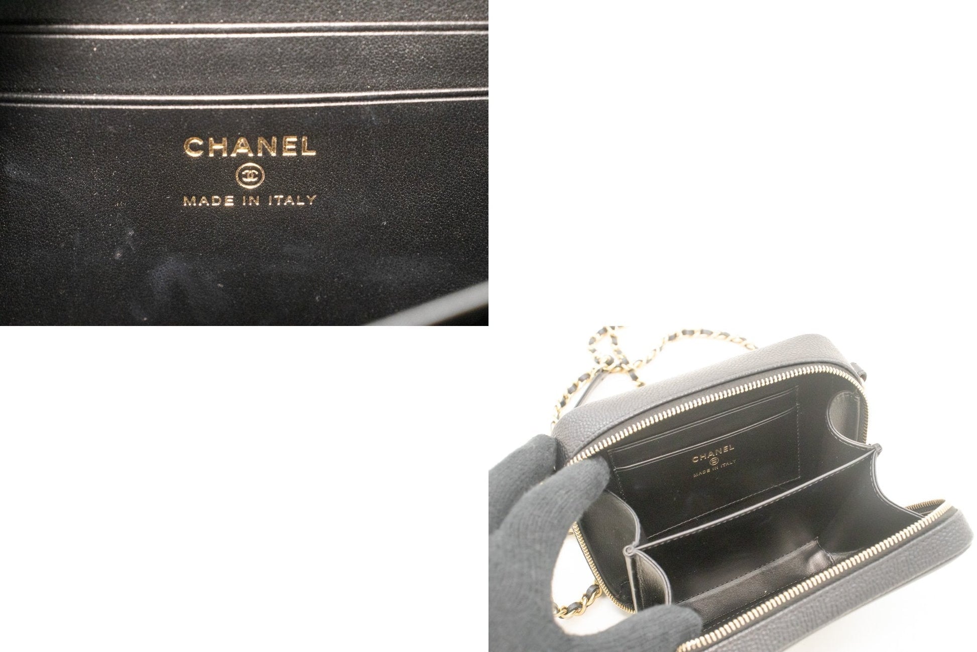 CHANEL Micro Caviar Grained Calfskin Chain Shoulder Bag Black Zip