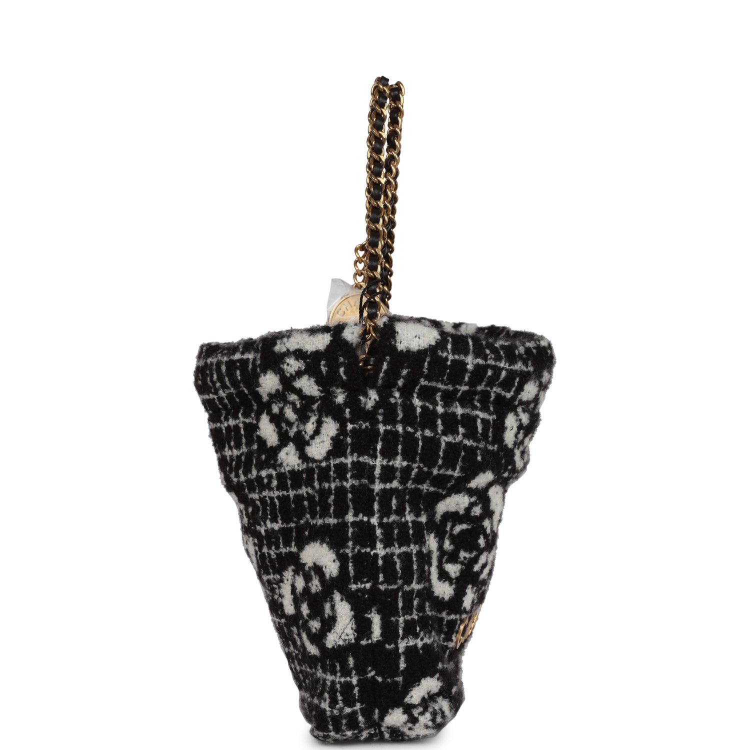 Chanel Mini 22 Bag Black and White Floral Tweed Gold Hardware