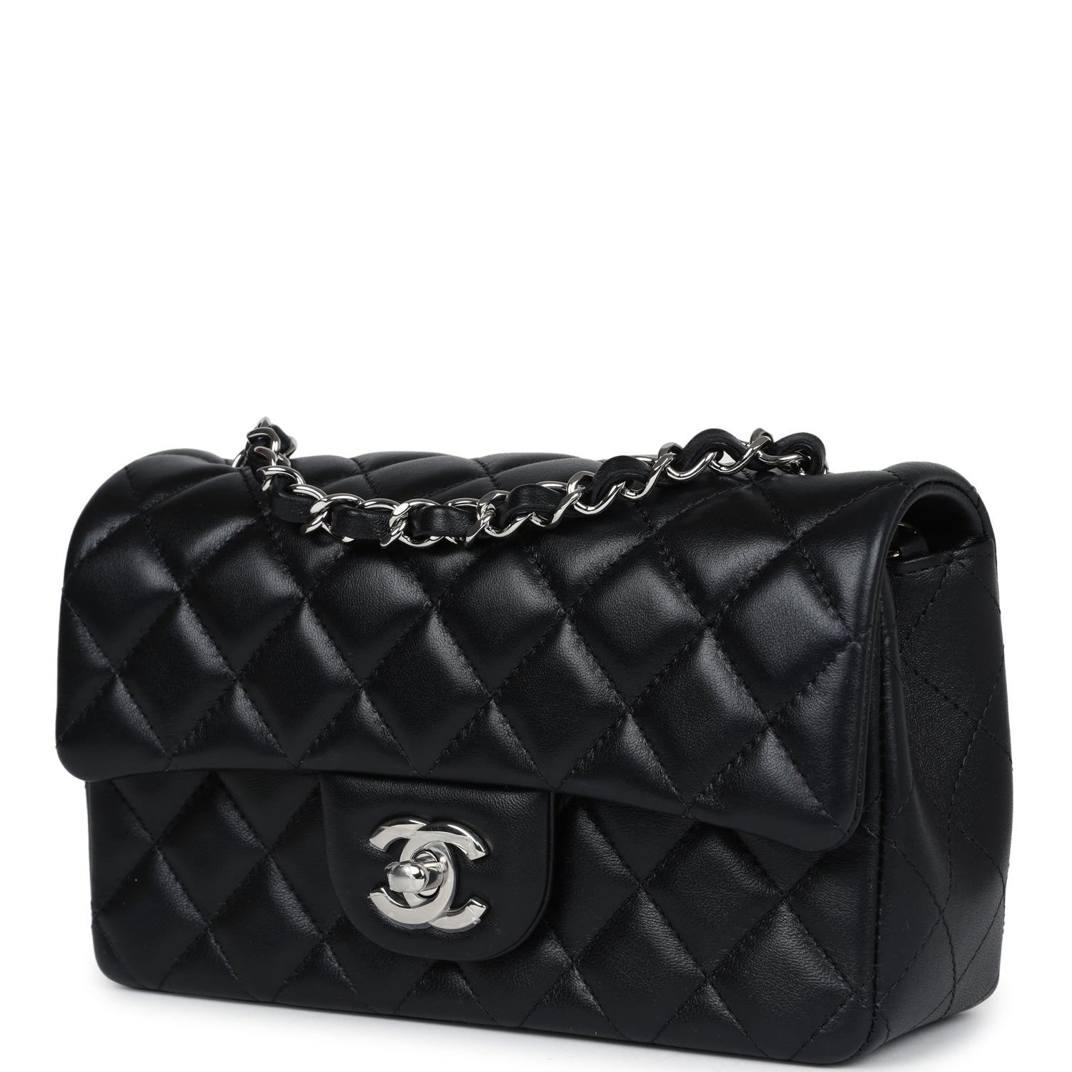 Chanel Mini Rectangular Flap Black Lambskin Silver Hardware