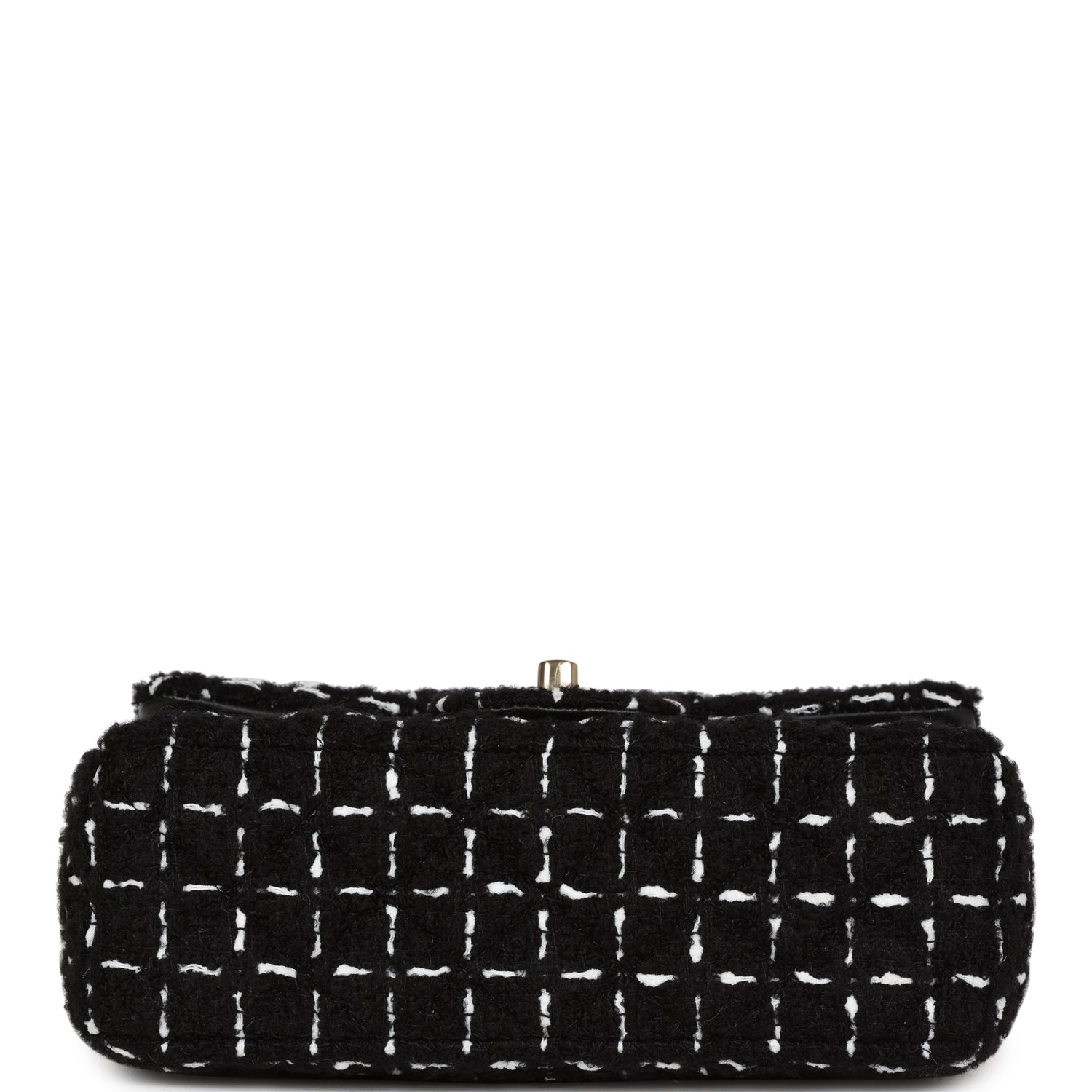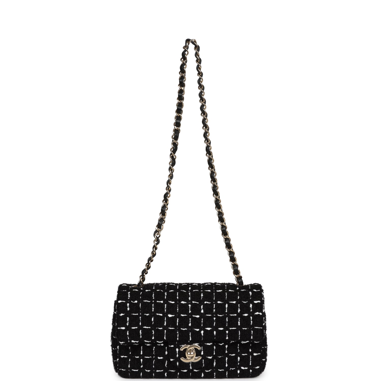 Chanel Mini Classic Rectangular Flap Black and White Tweed Gold Hardware