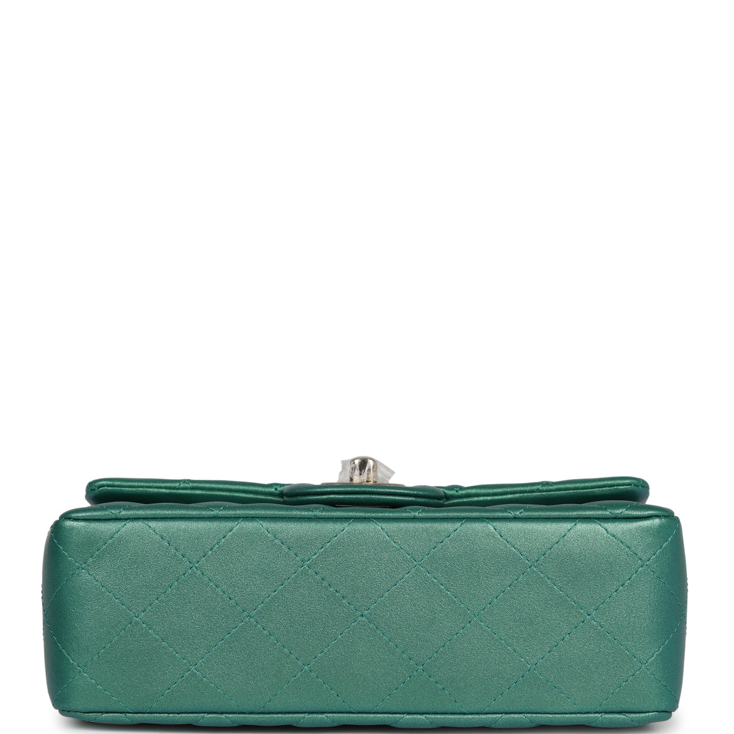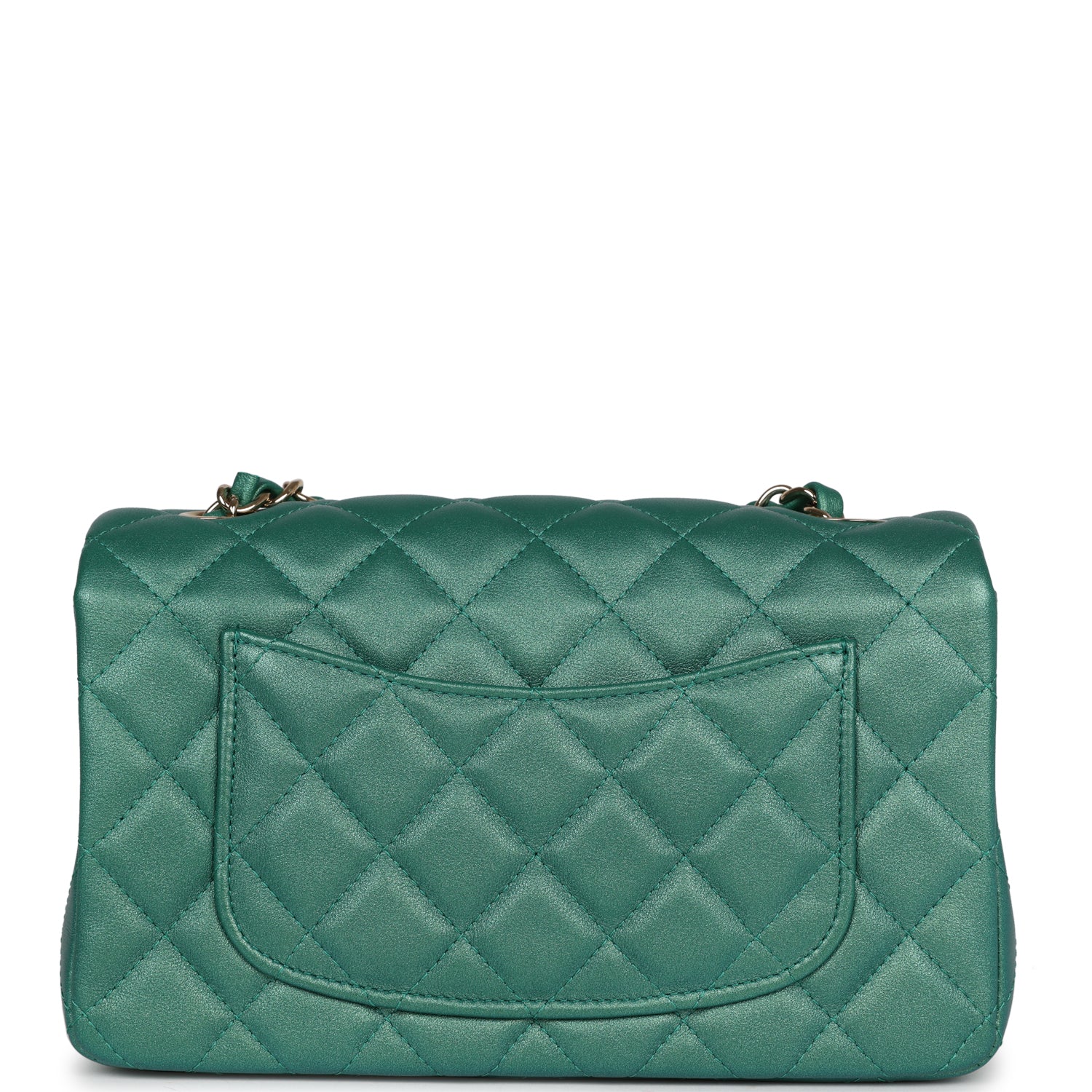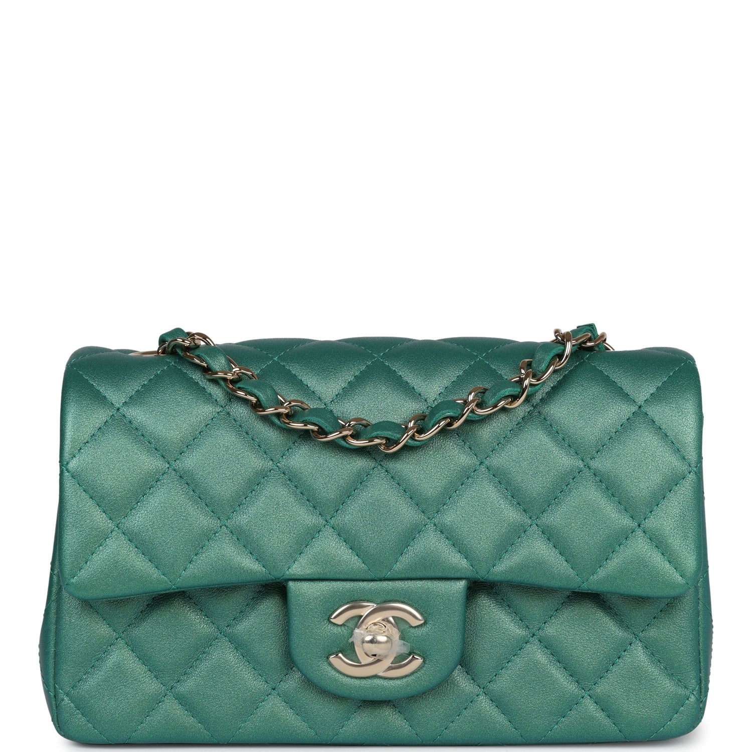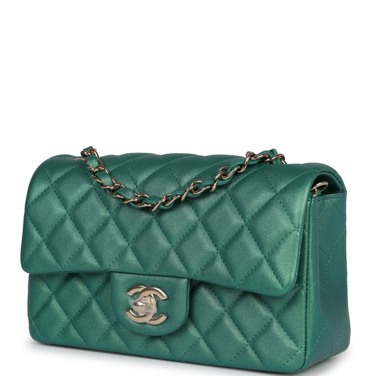 Chanel Mini Classic Rectangular Flap Iridescent Green Lambskin Light Gold Hardware