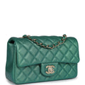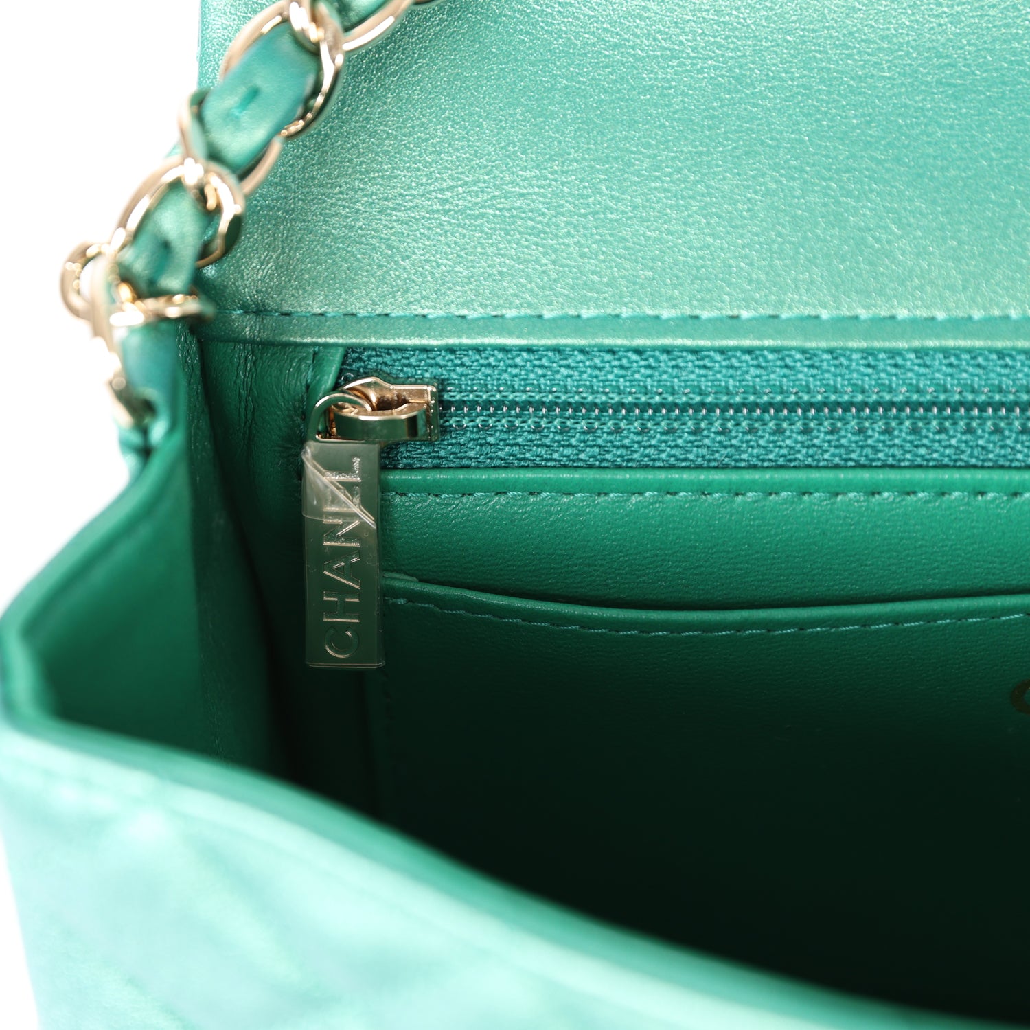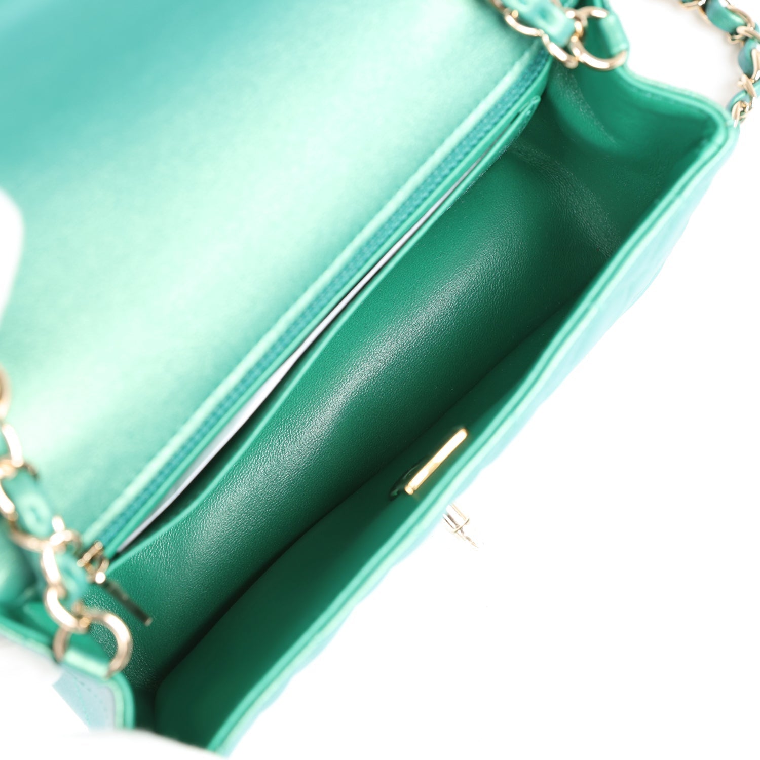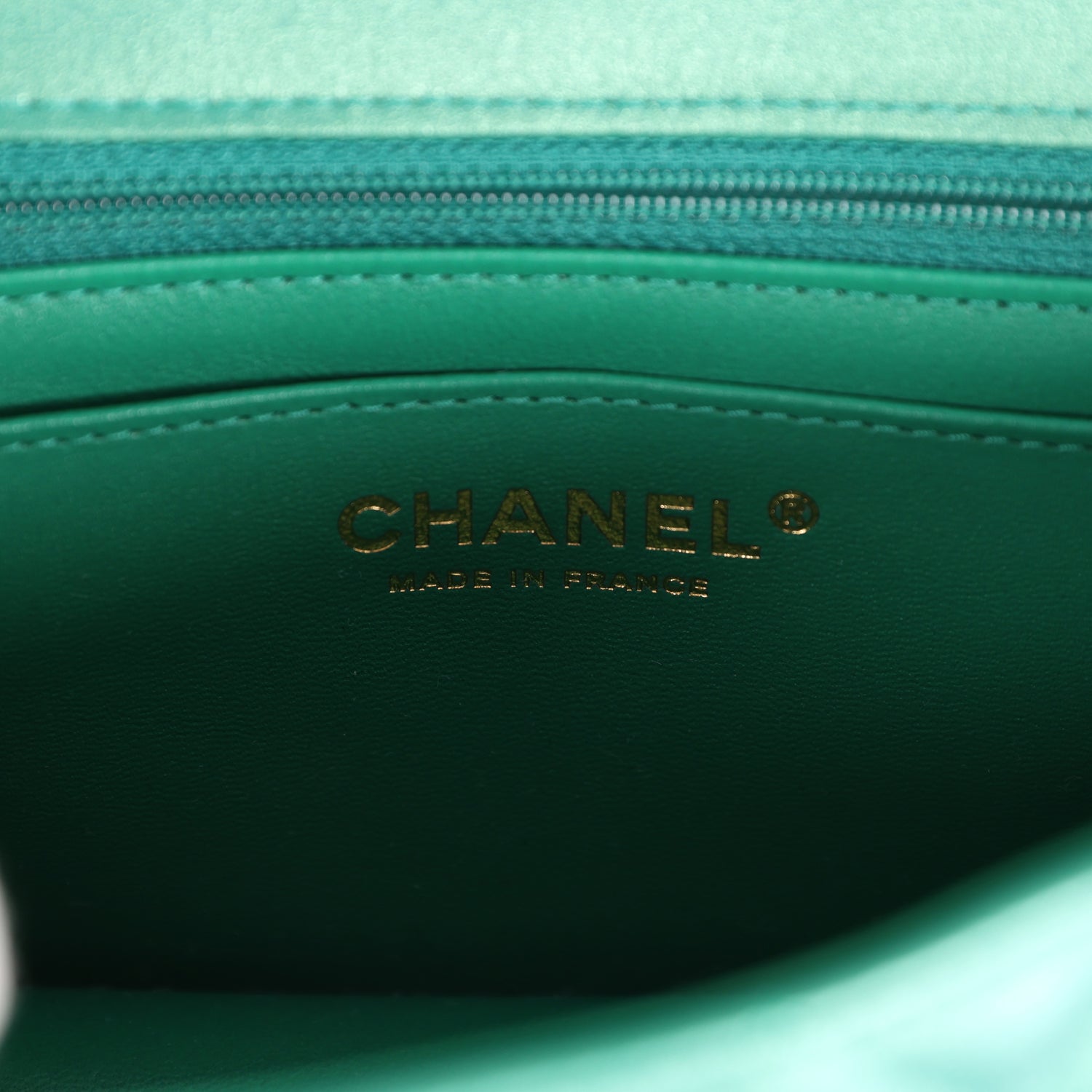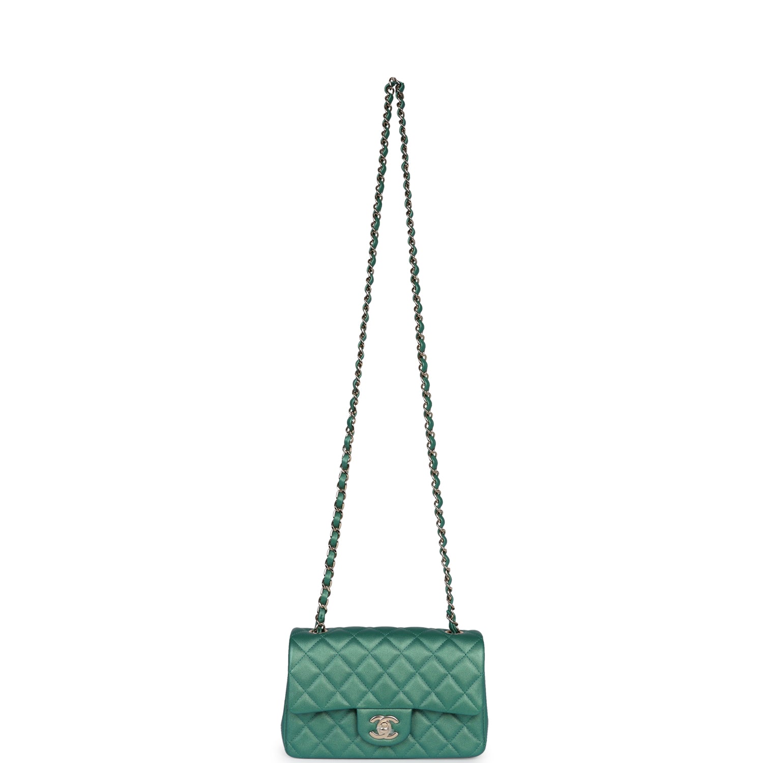 Chanel Mini Classic Rectangular Flap Iridescent Green Lambskin Light Gold Hardware